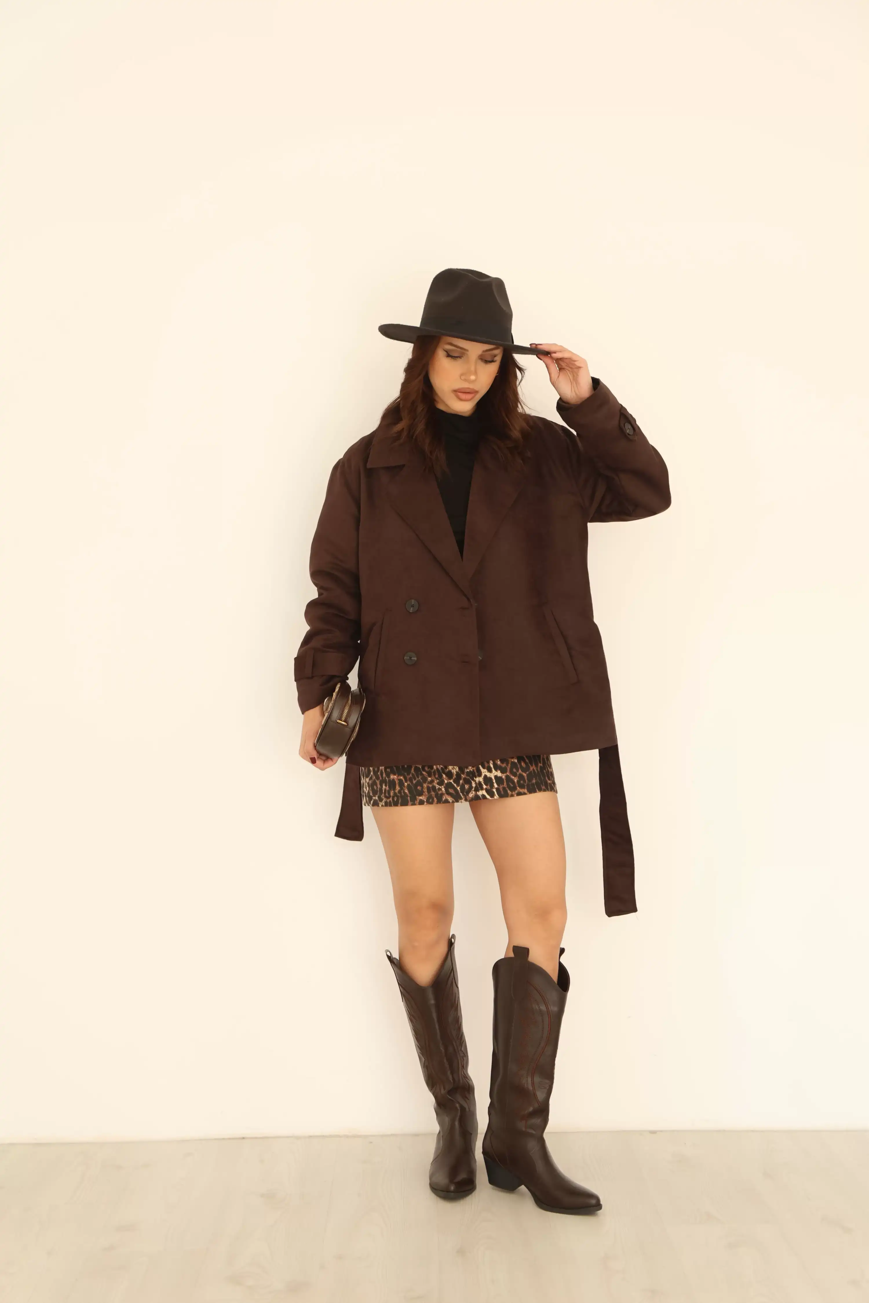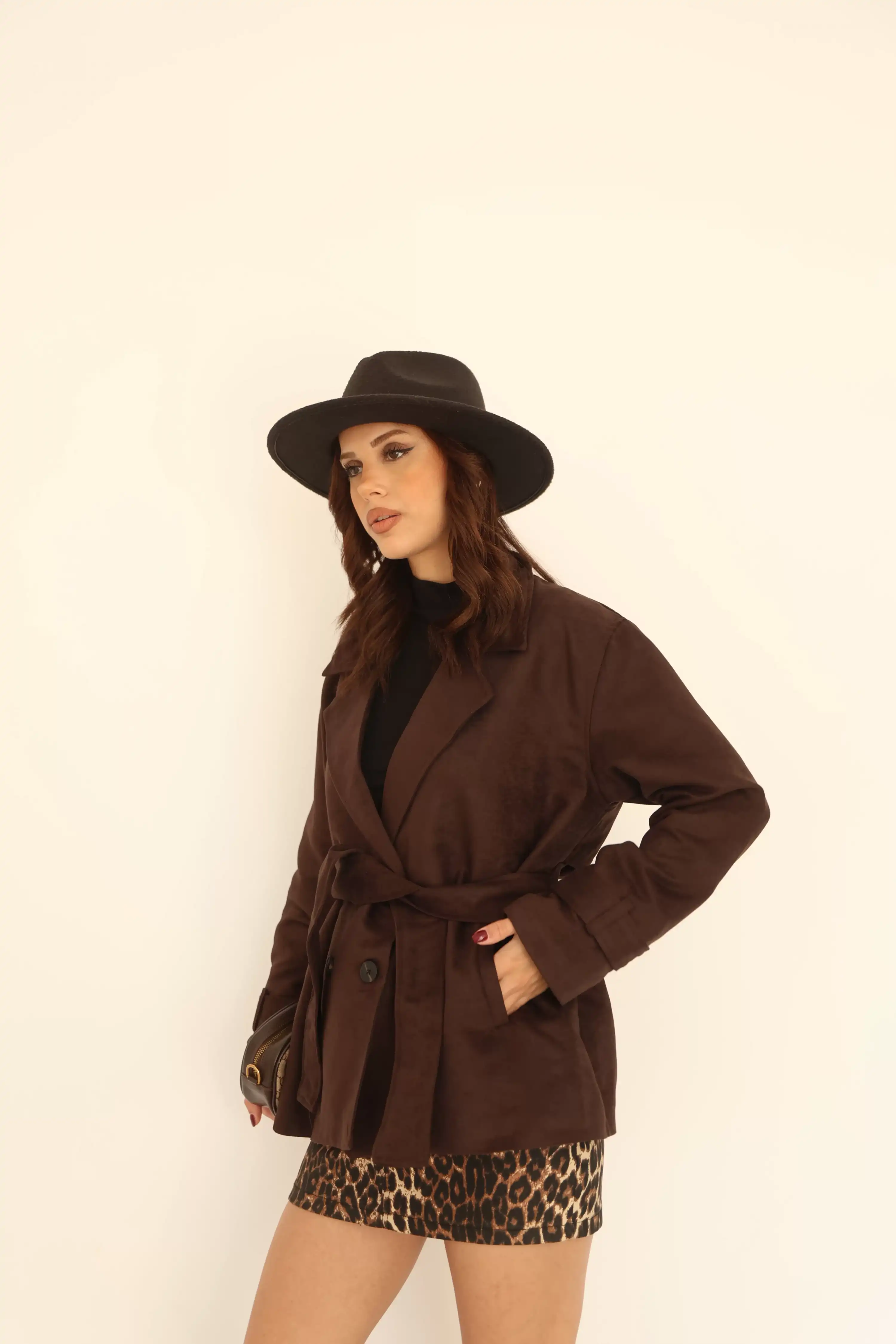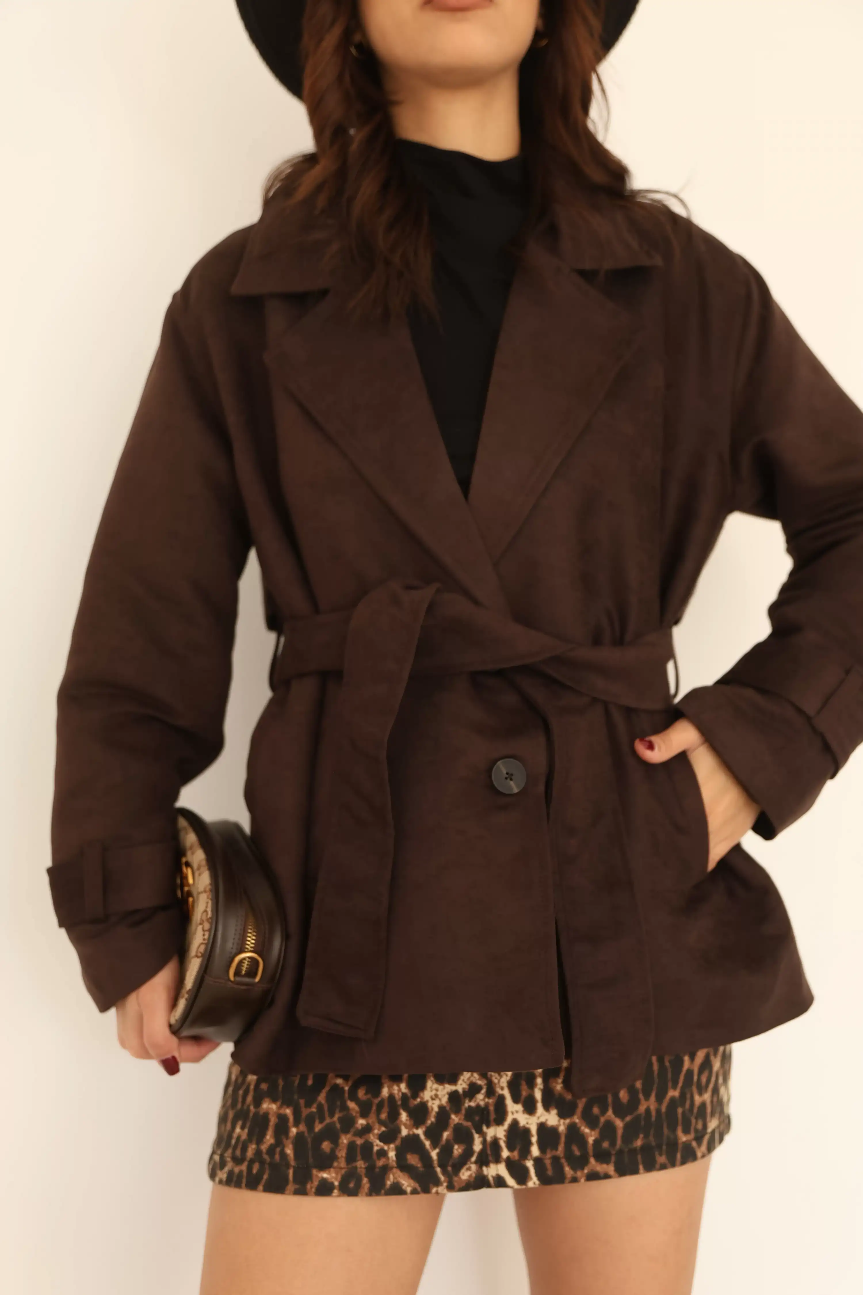 KEMERLİ SÜET CEKET-ACI KAHVE