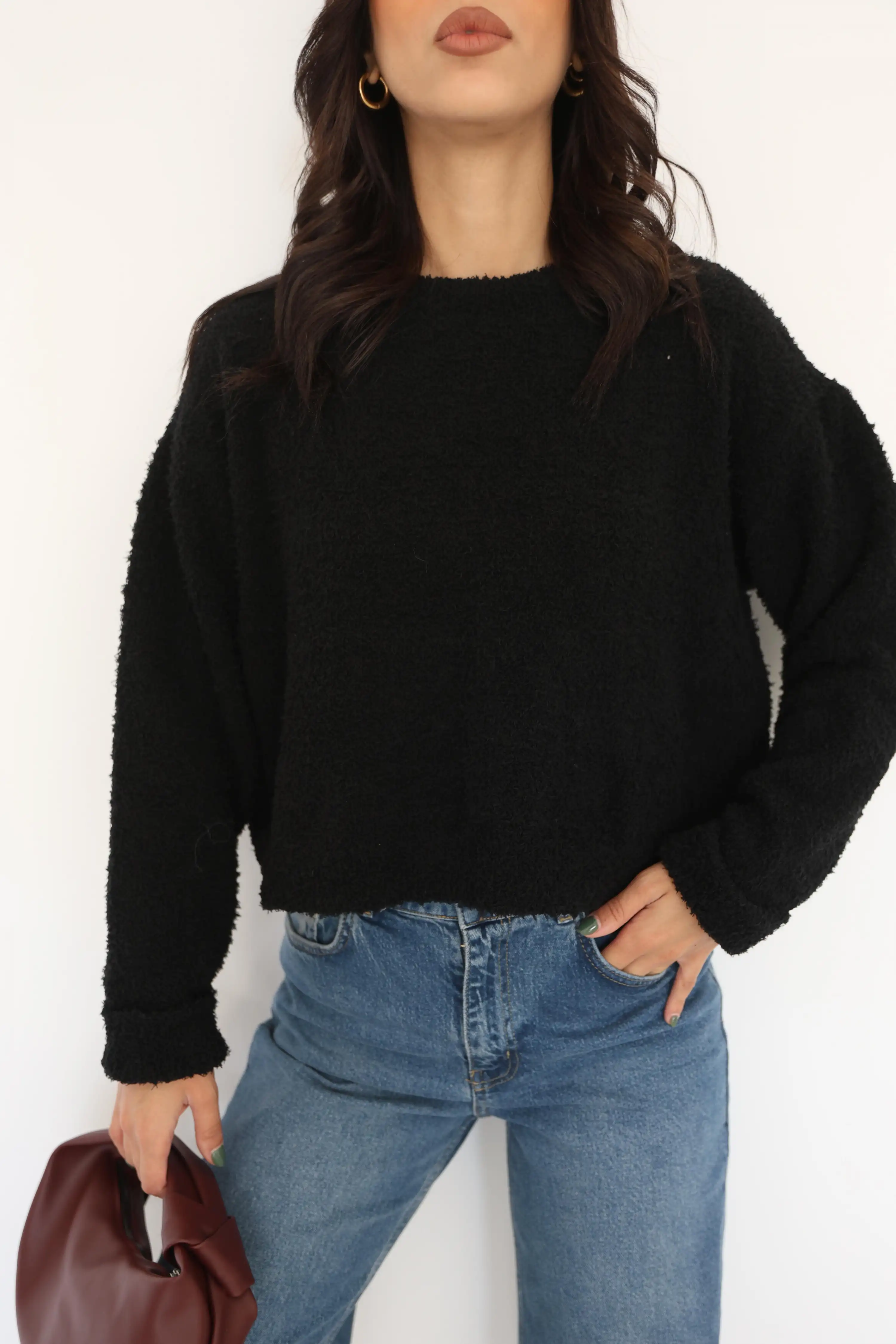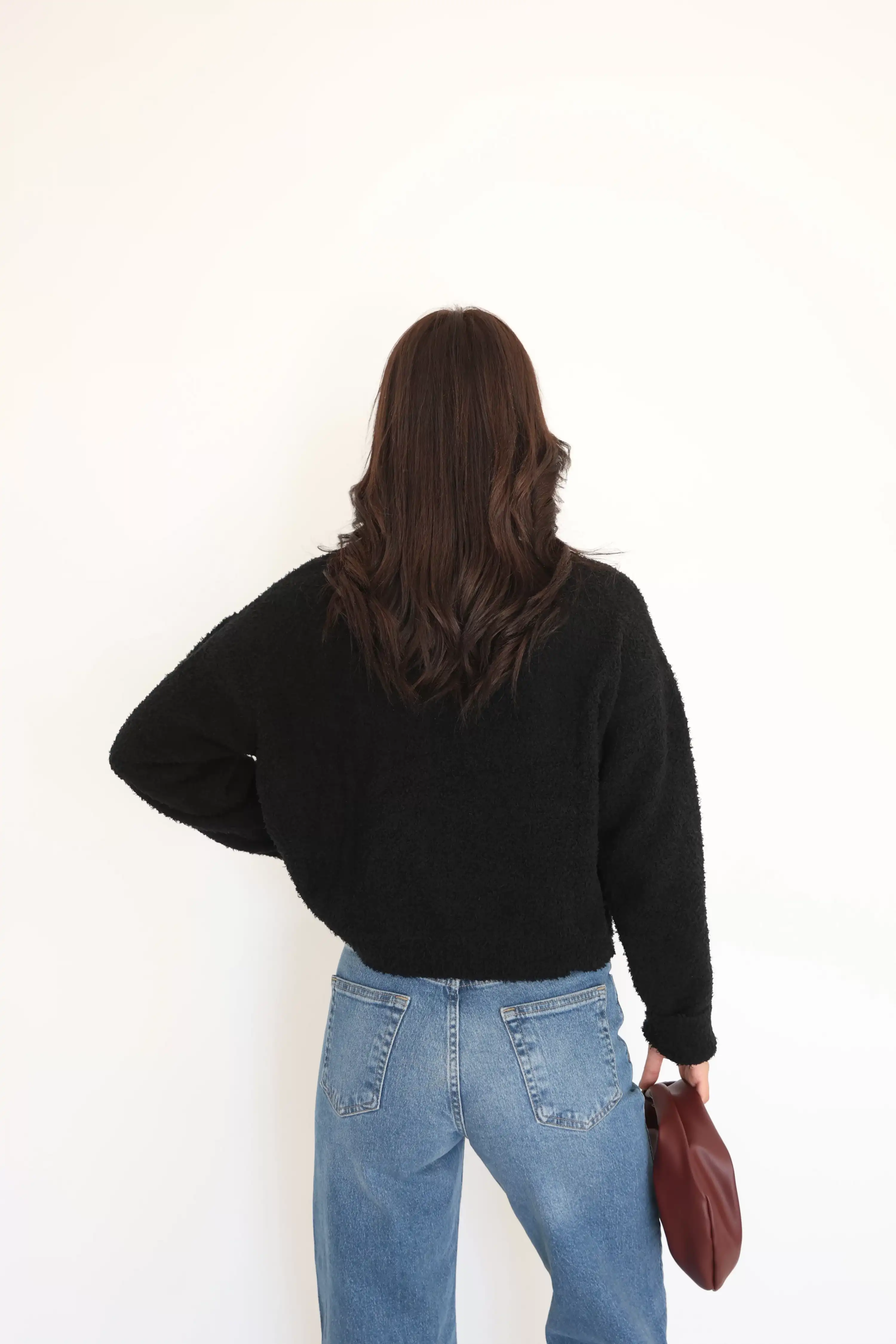 KOL KATLAMALI PELUŞ KAZAK-SİYAH