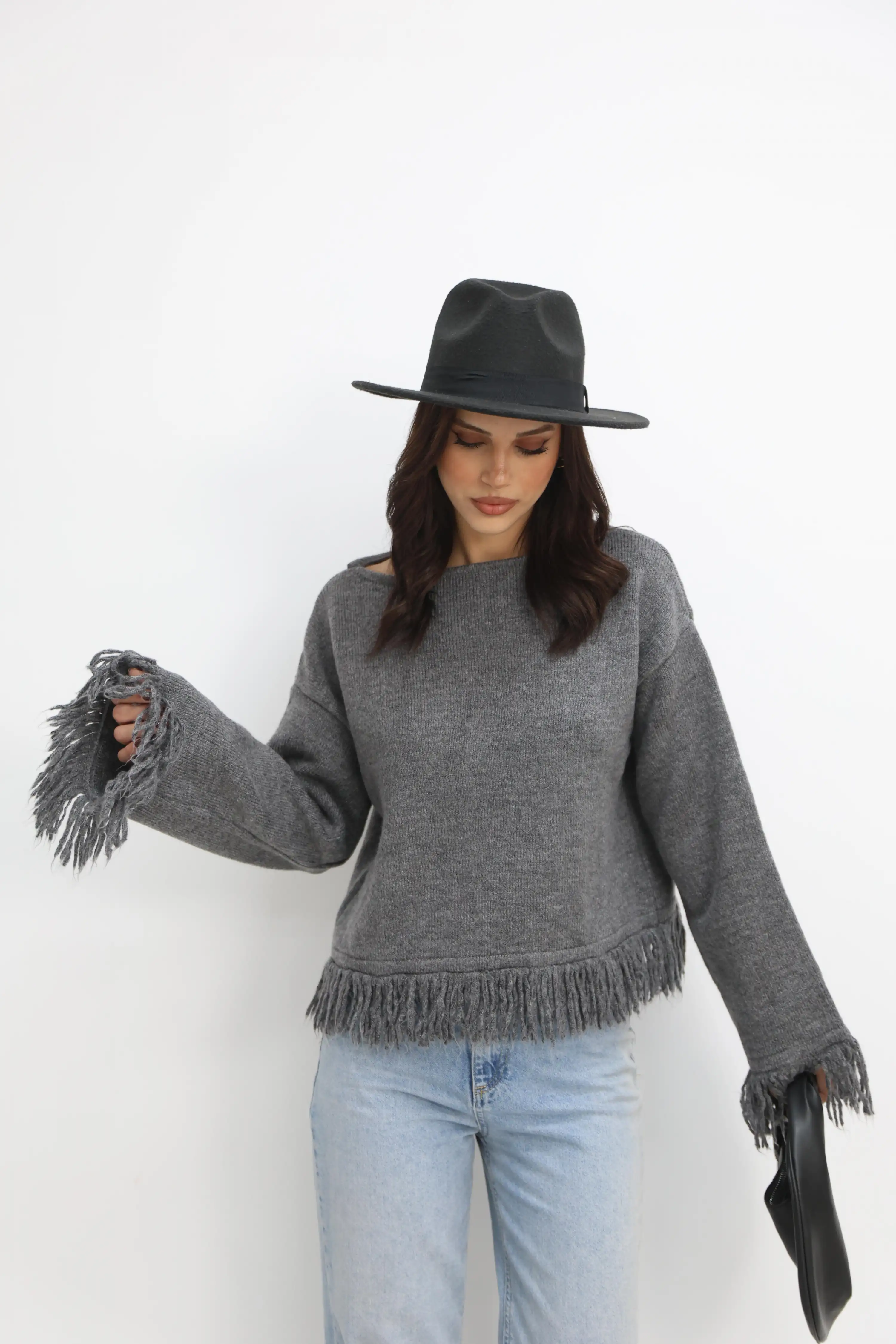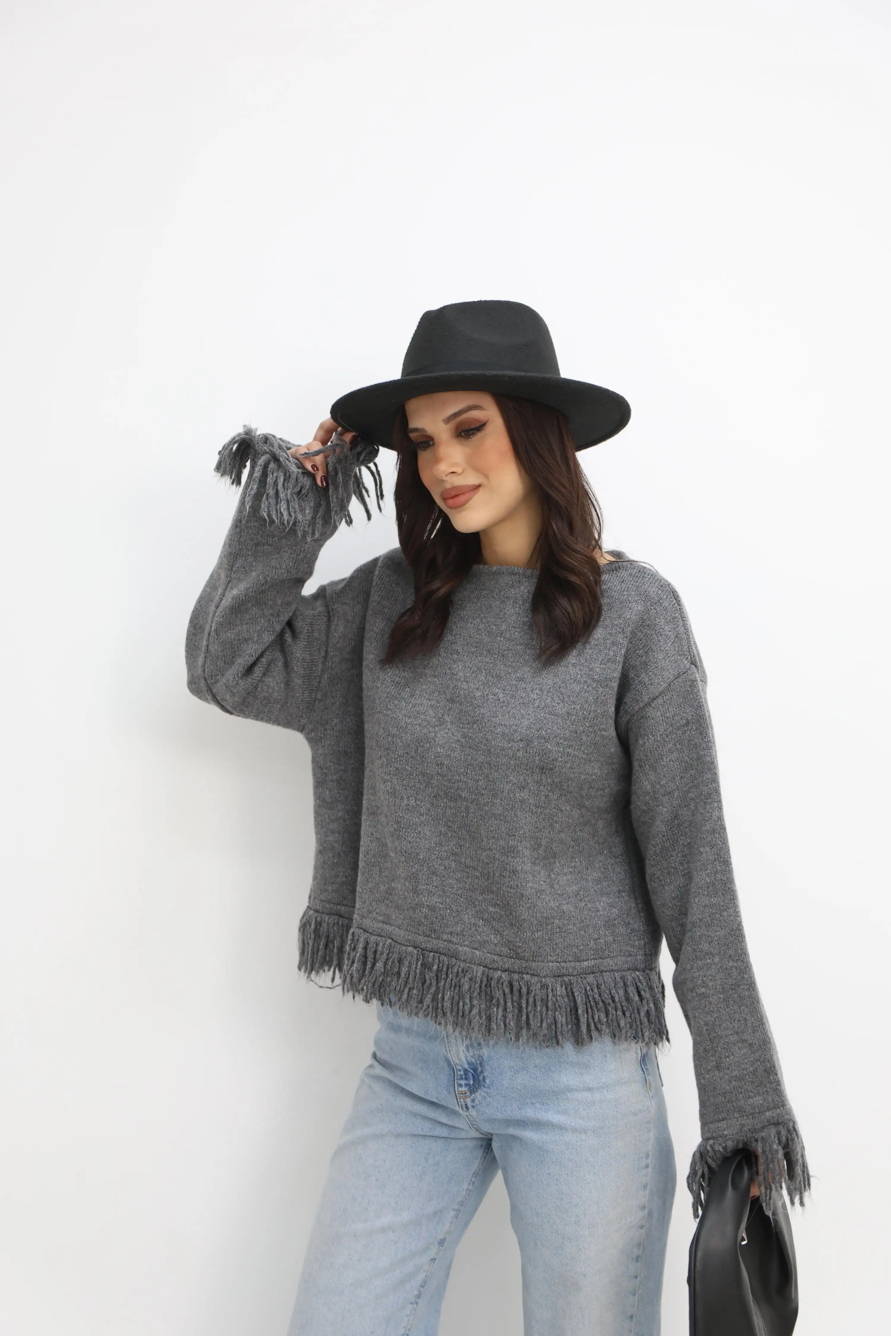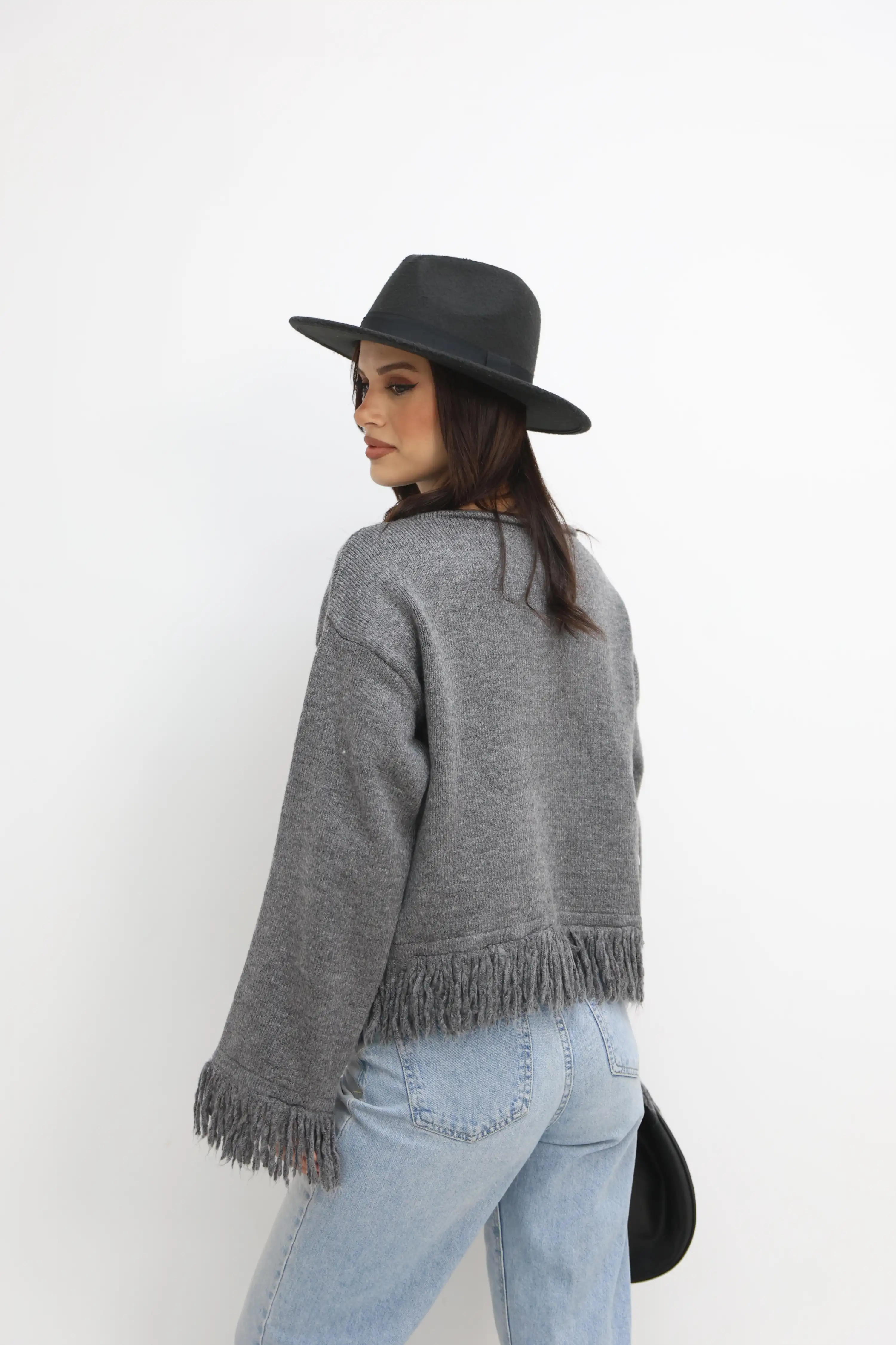 KOL VE ETEĞİ SAÇAKLI KAZAK-GRİ