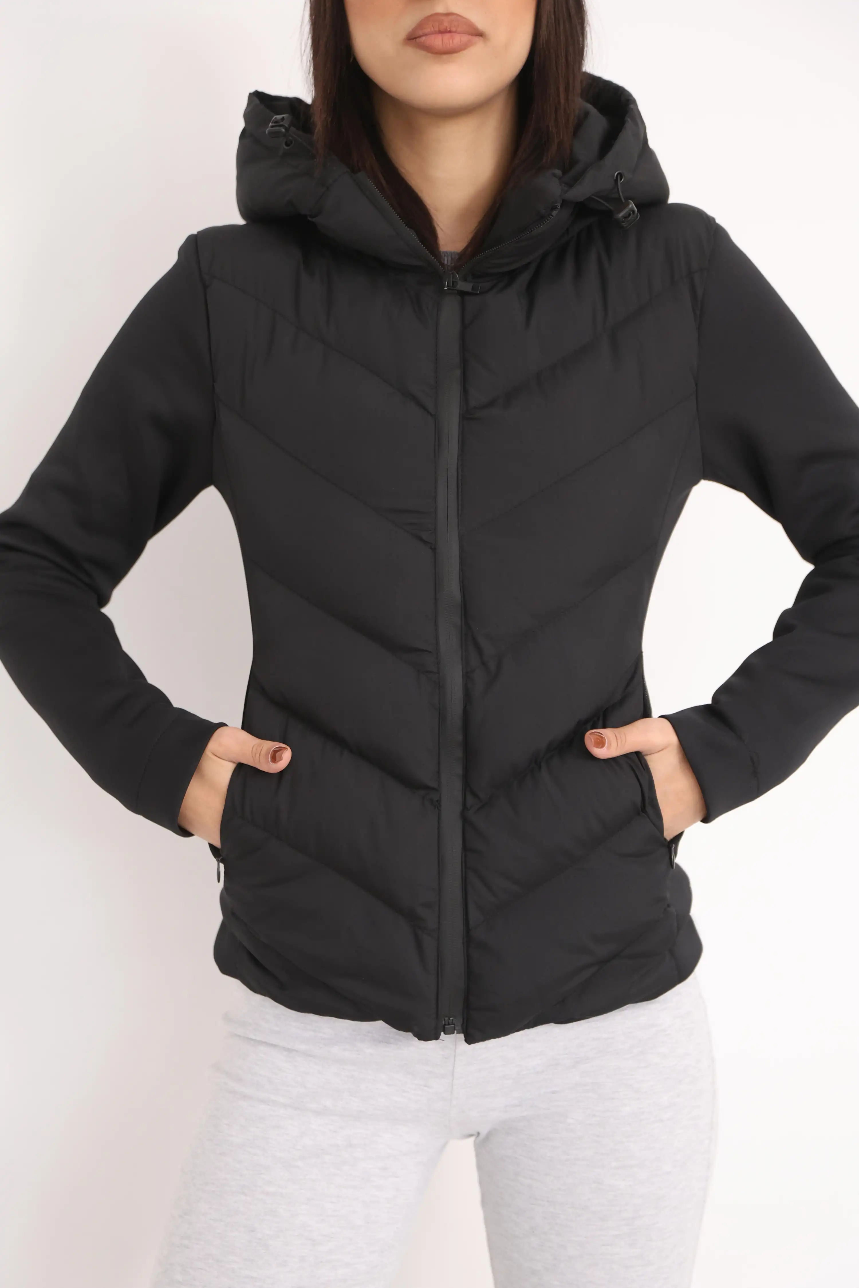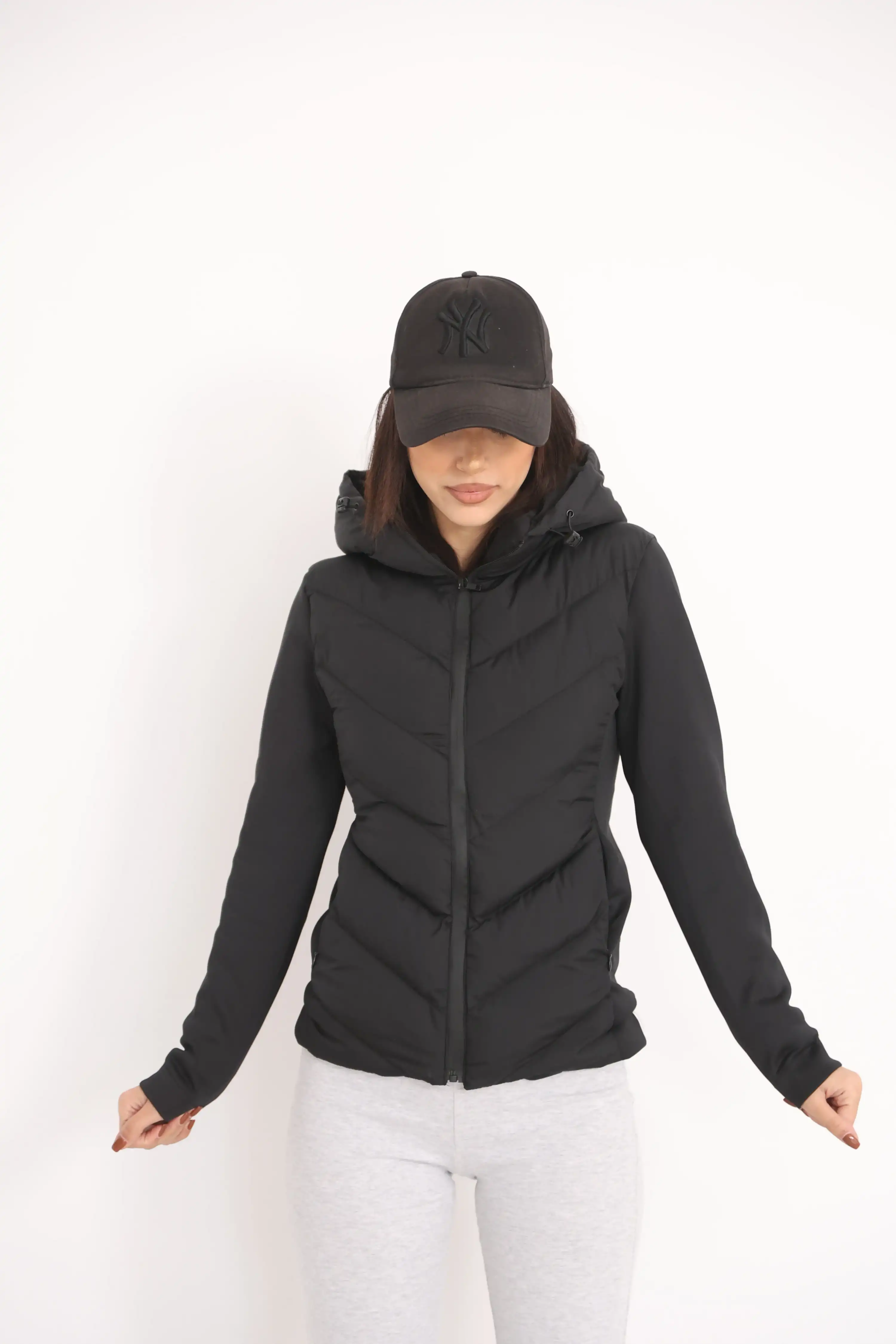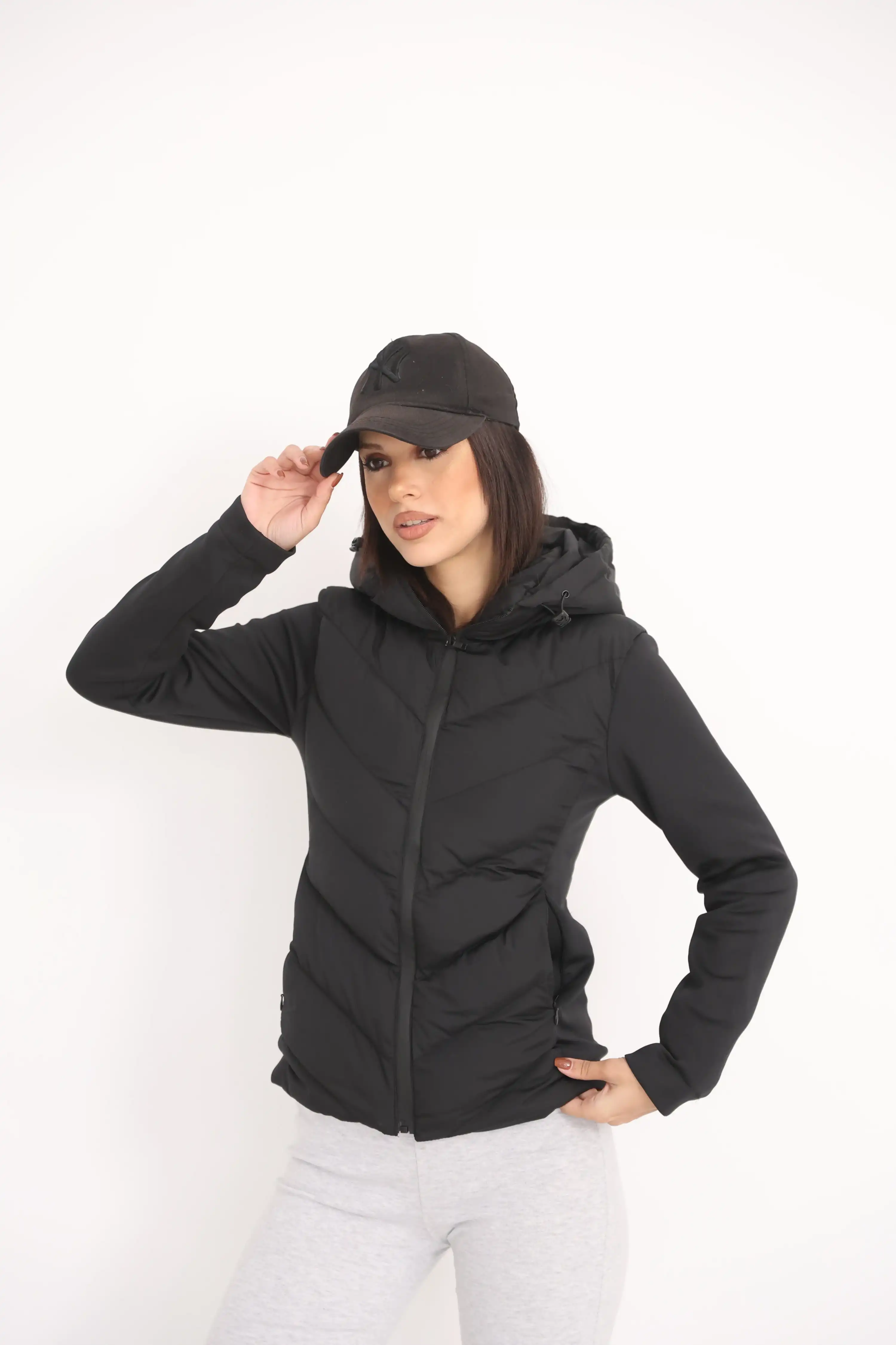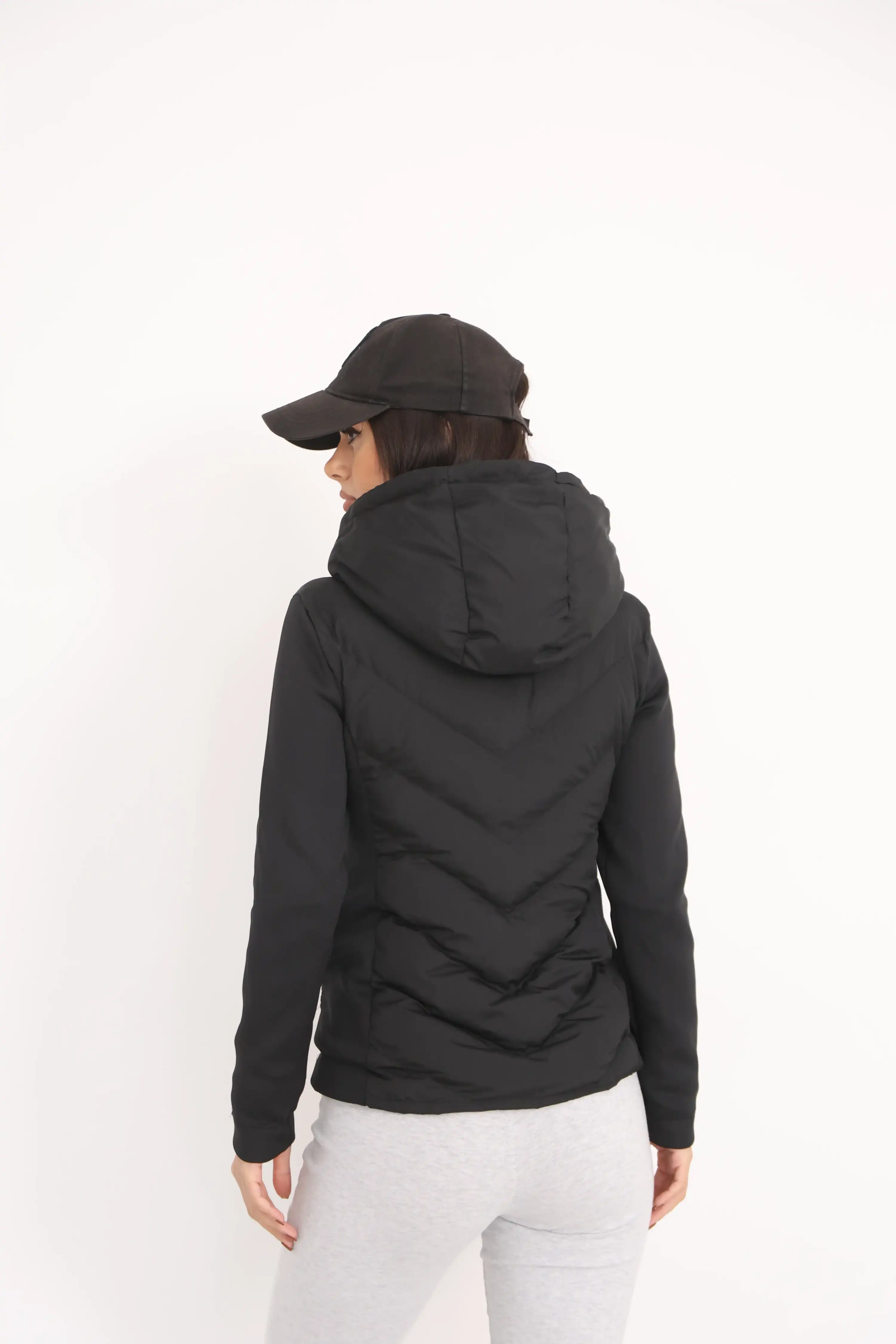 KOLLU KAPÜŞONLU ŞİŞME MONT-SİYAH