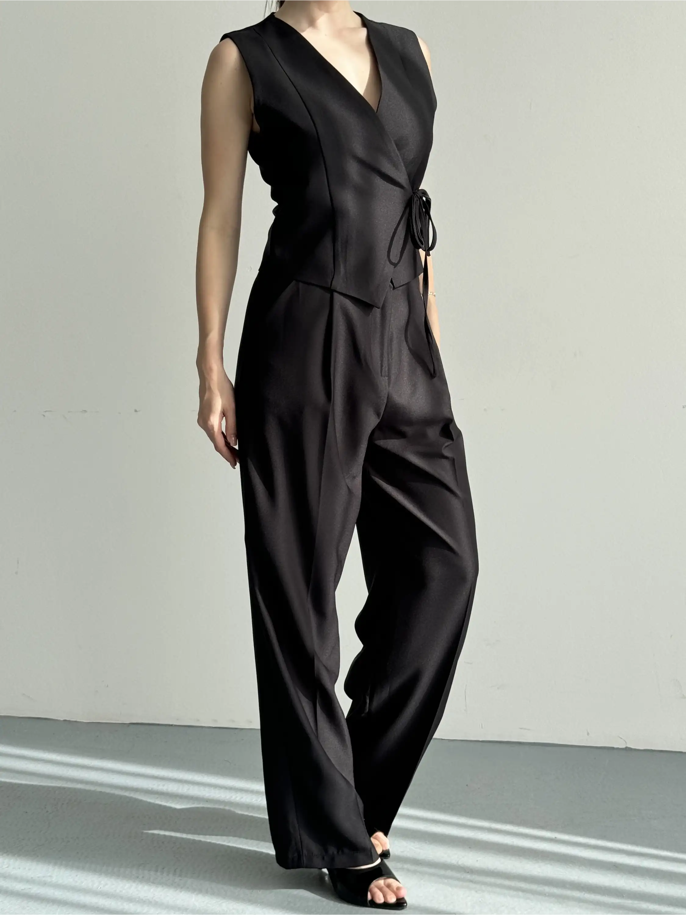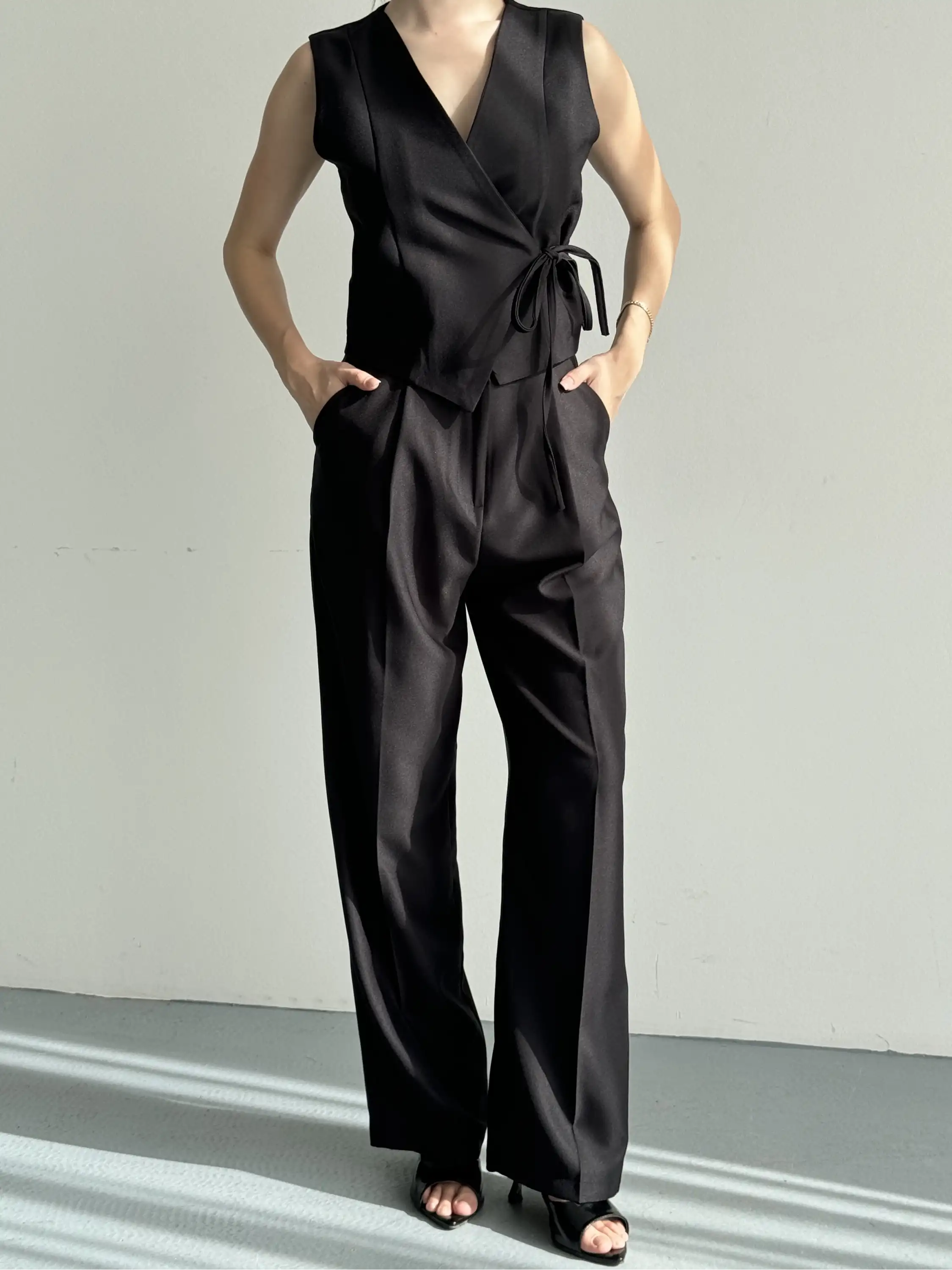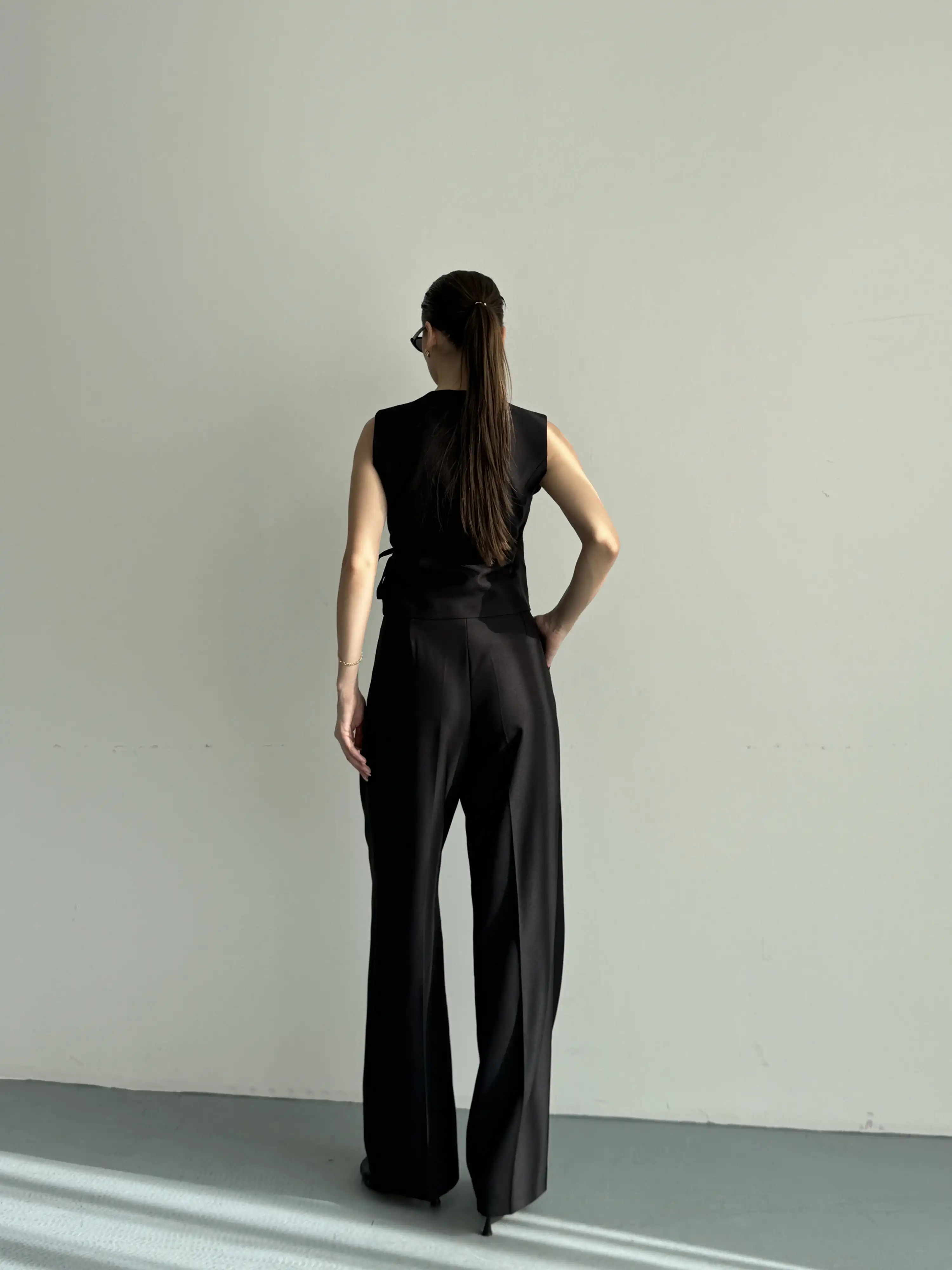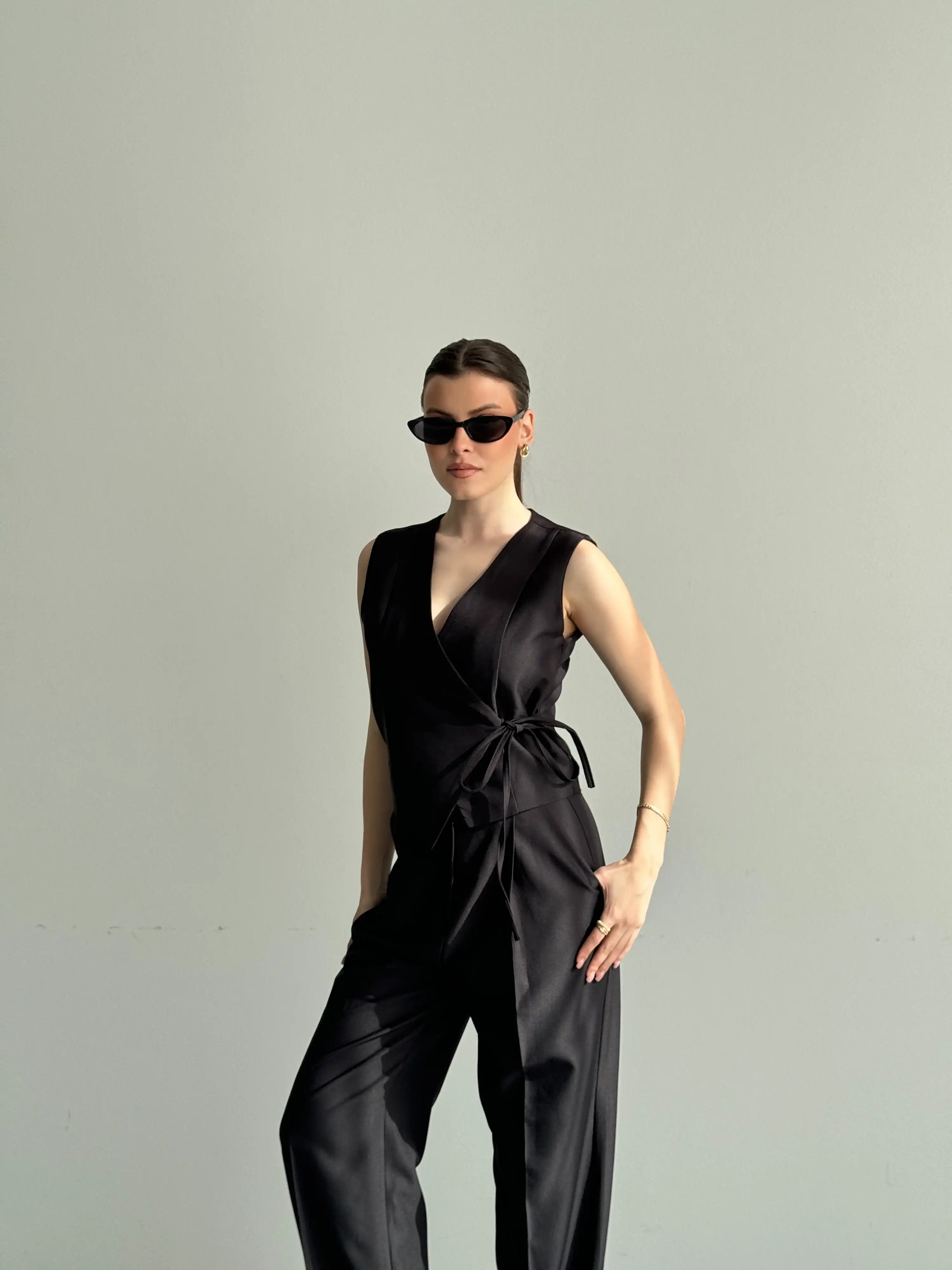 KRUVAZE YAKA DETAYLI YELEKLİ TAKIM-SİYAH