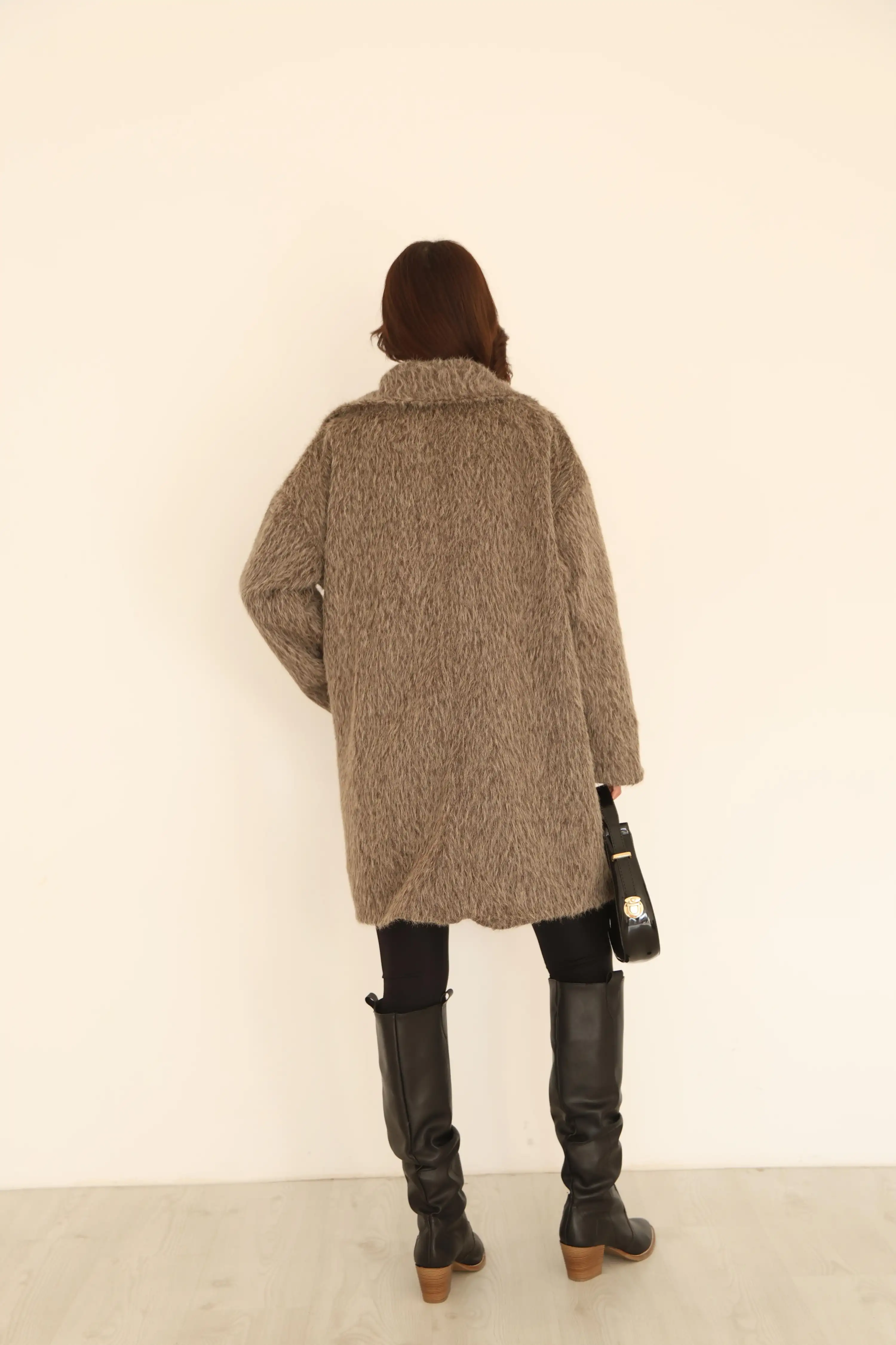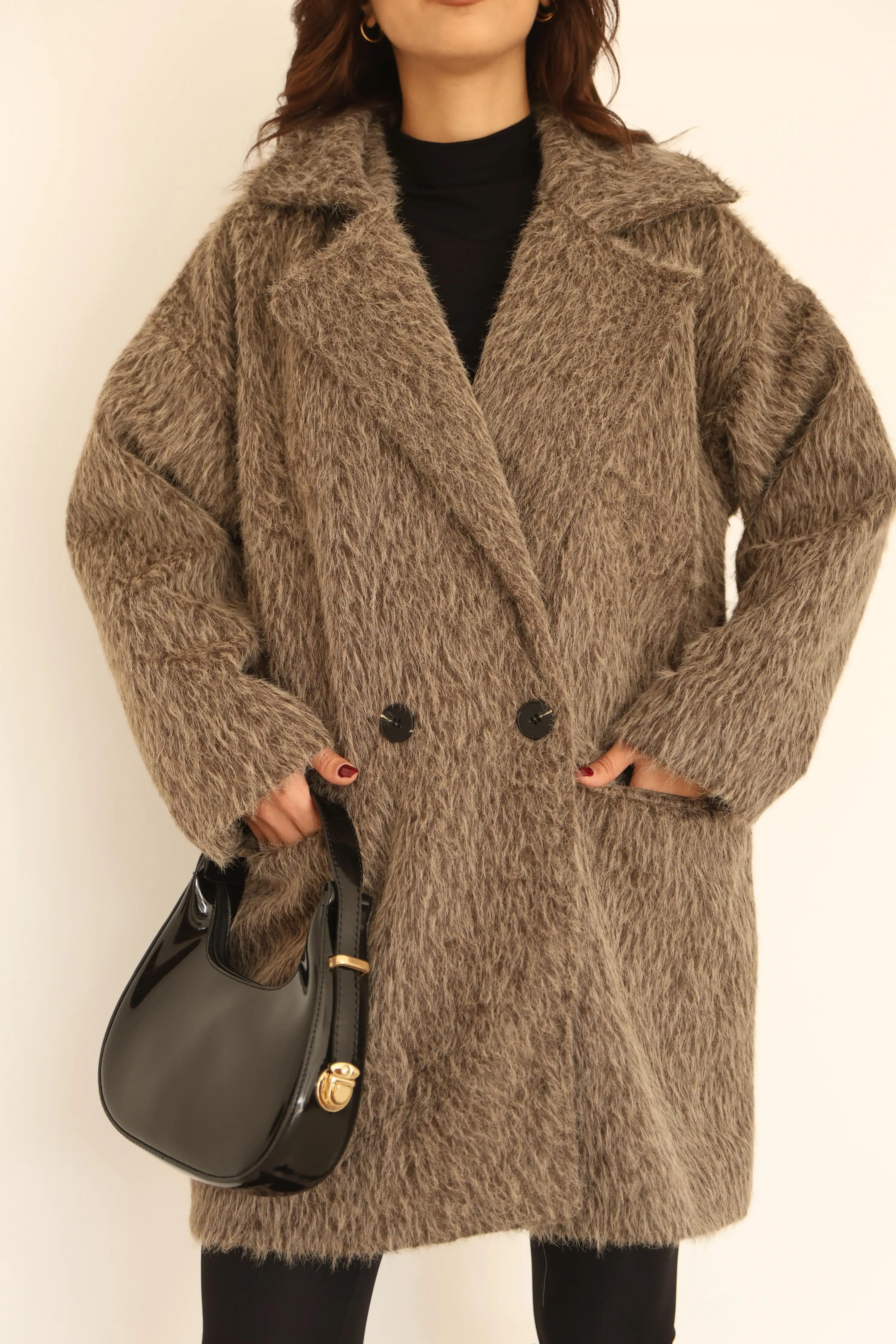 KRUVAZE YAKA YUMUŞAK TÜYLÜ DÜĞMELİ MONT-KAHVE