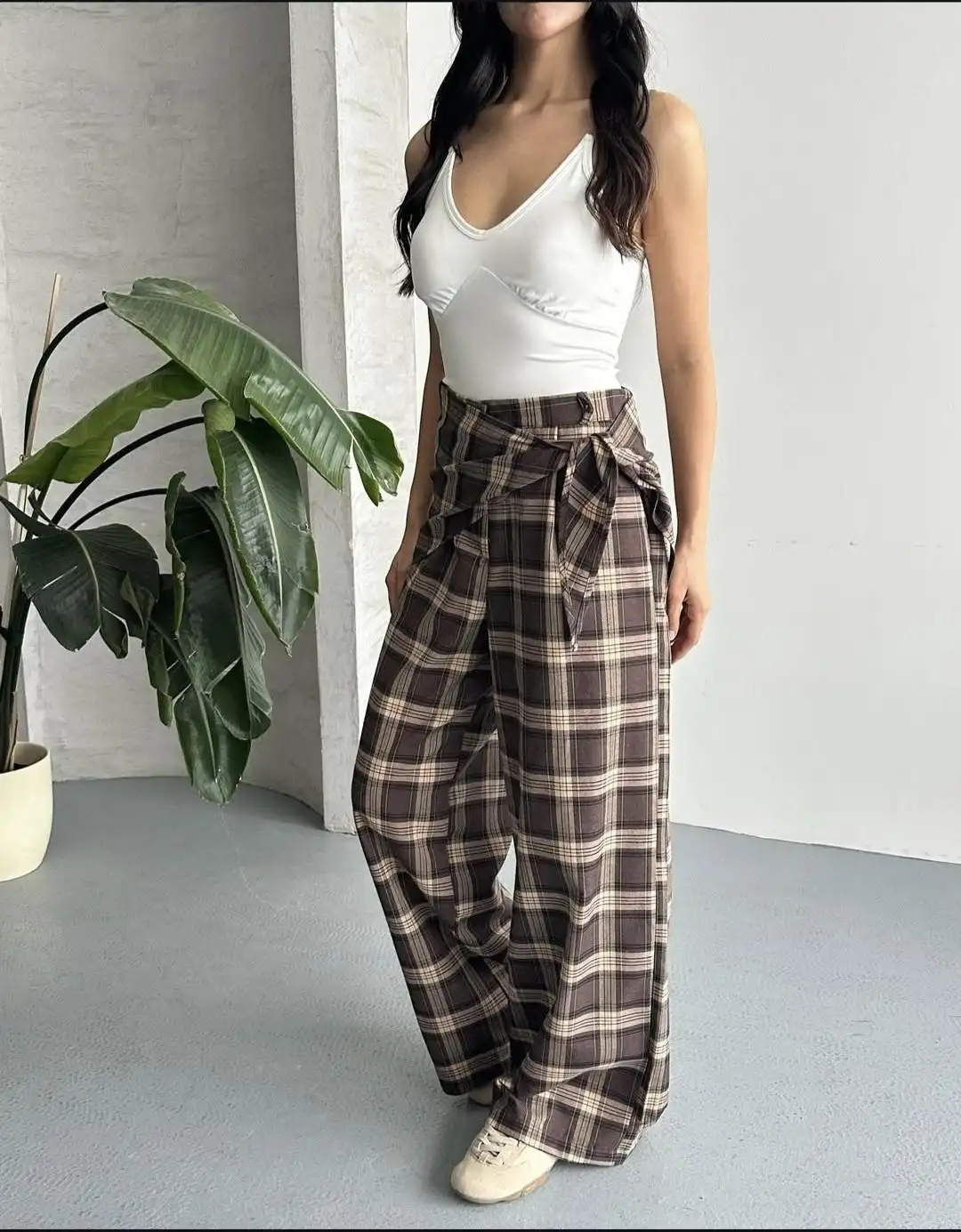 YÜKSEK BEL KETEN PALAZZO PANTOLON-KAHVE