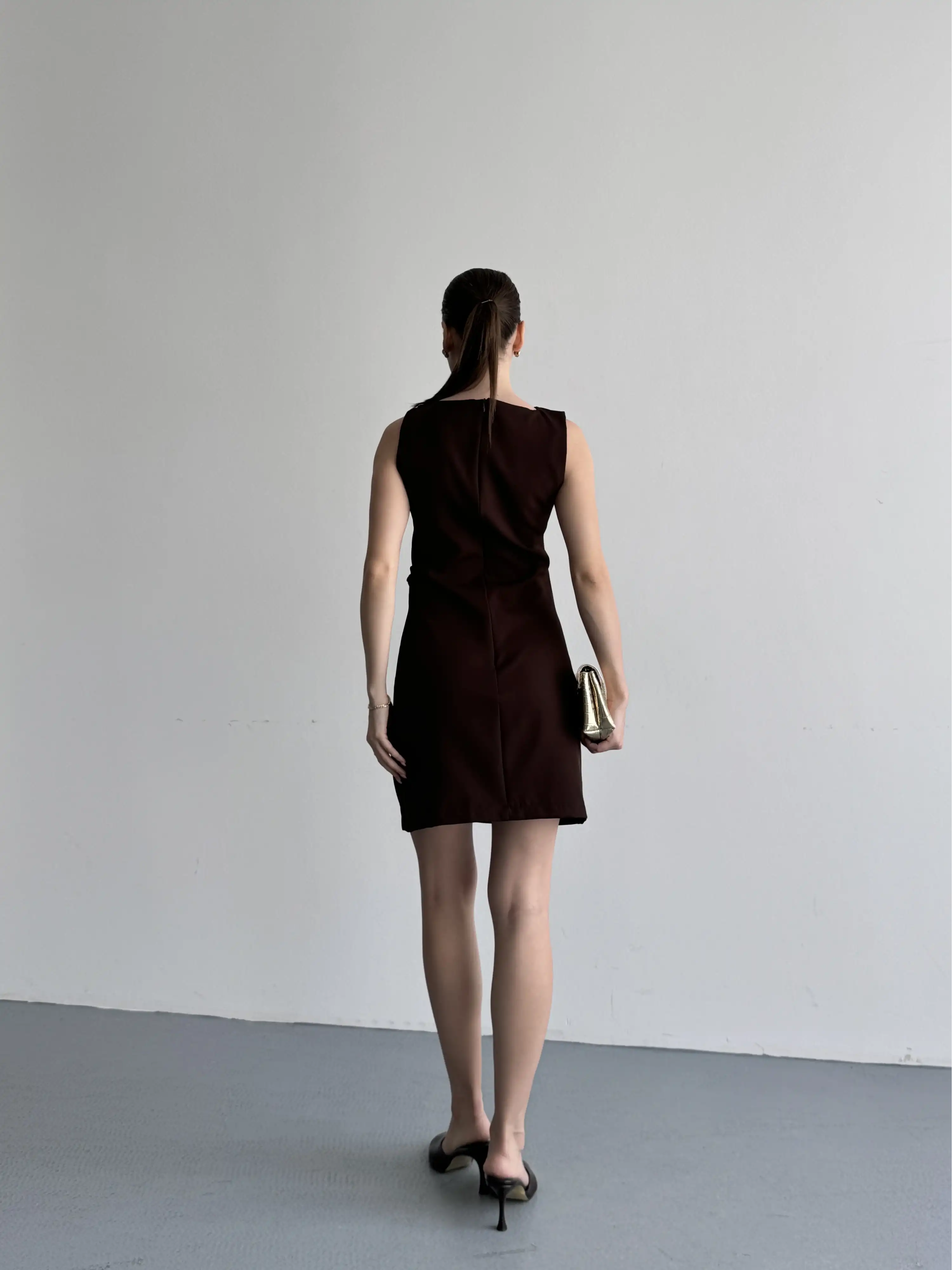ASKILI MİNİ PUANTİYELİ ELBİSE-KAHVE