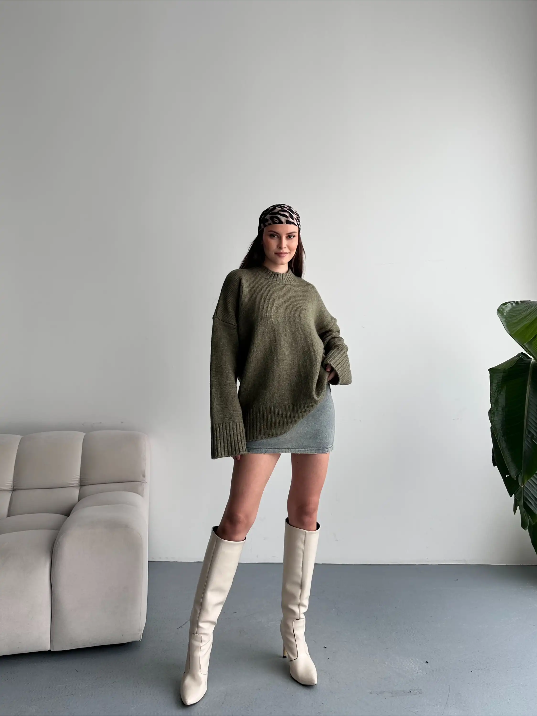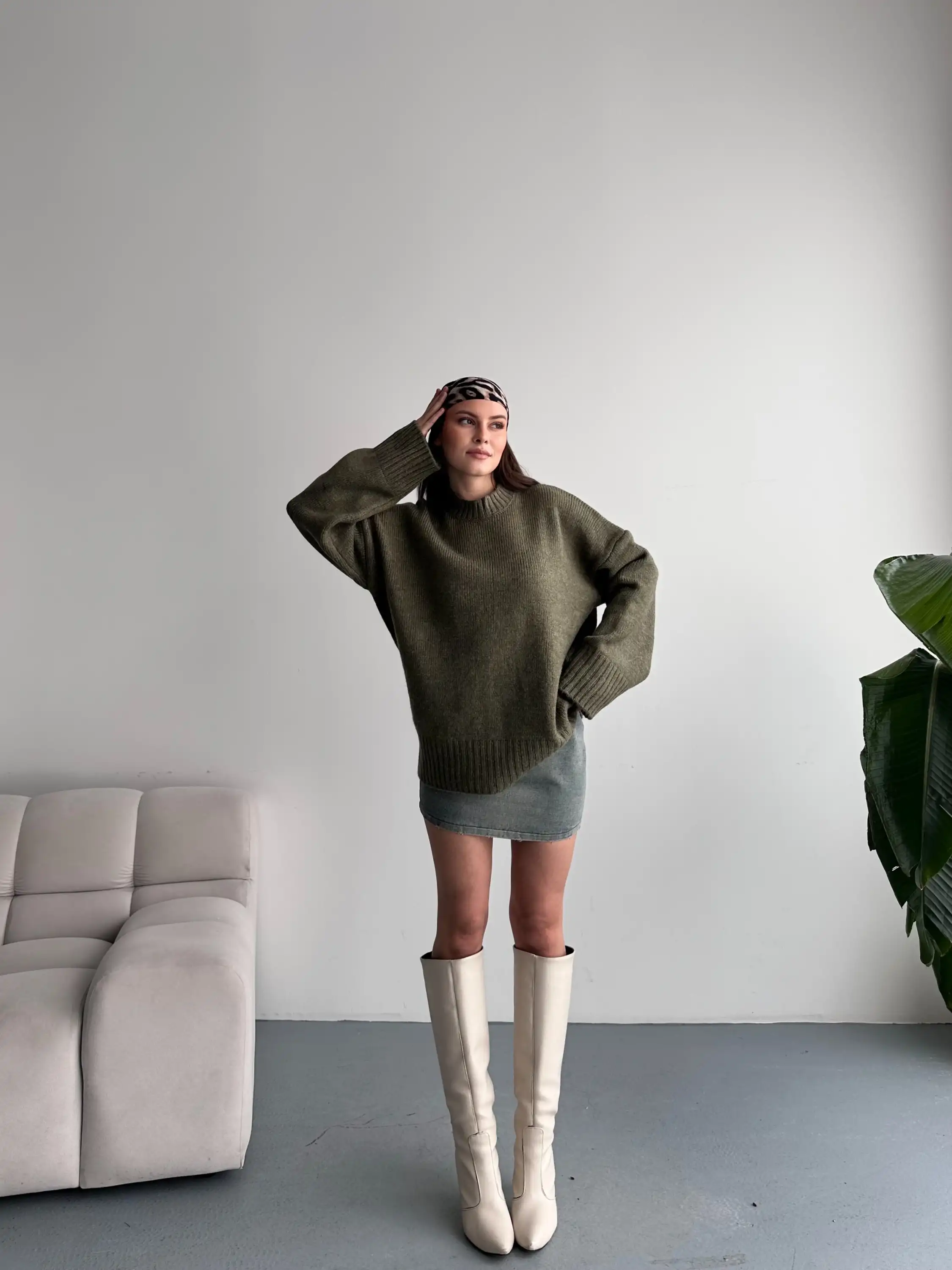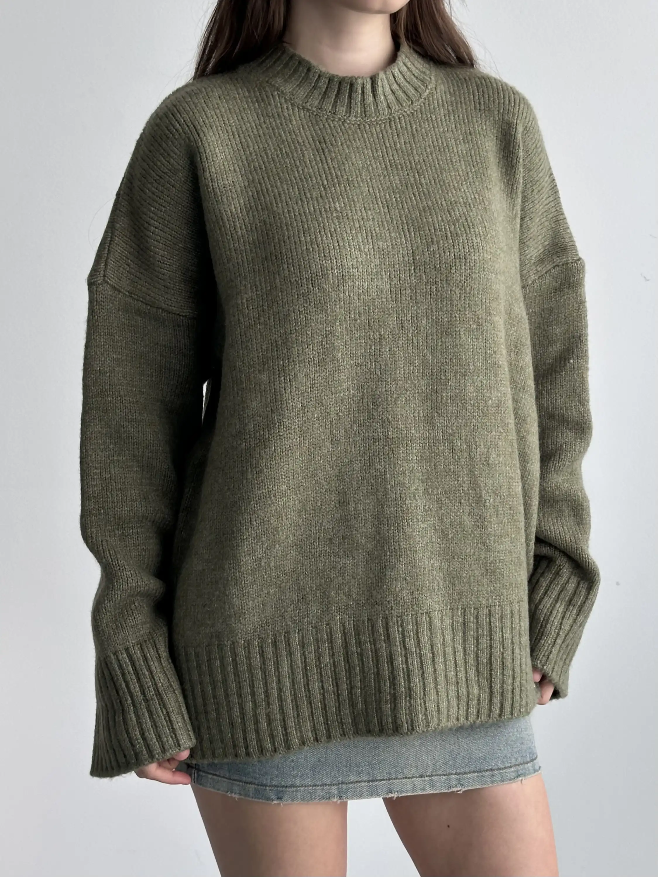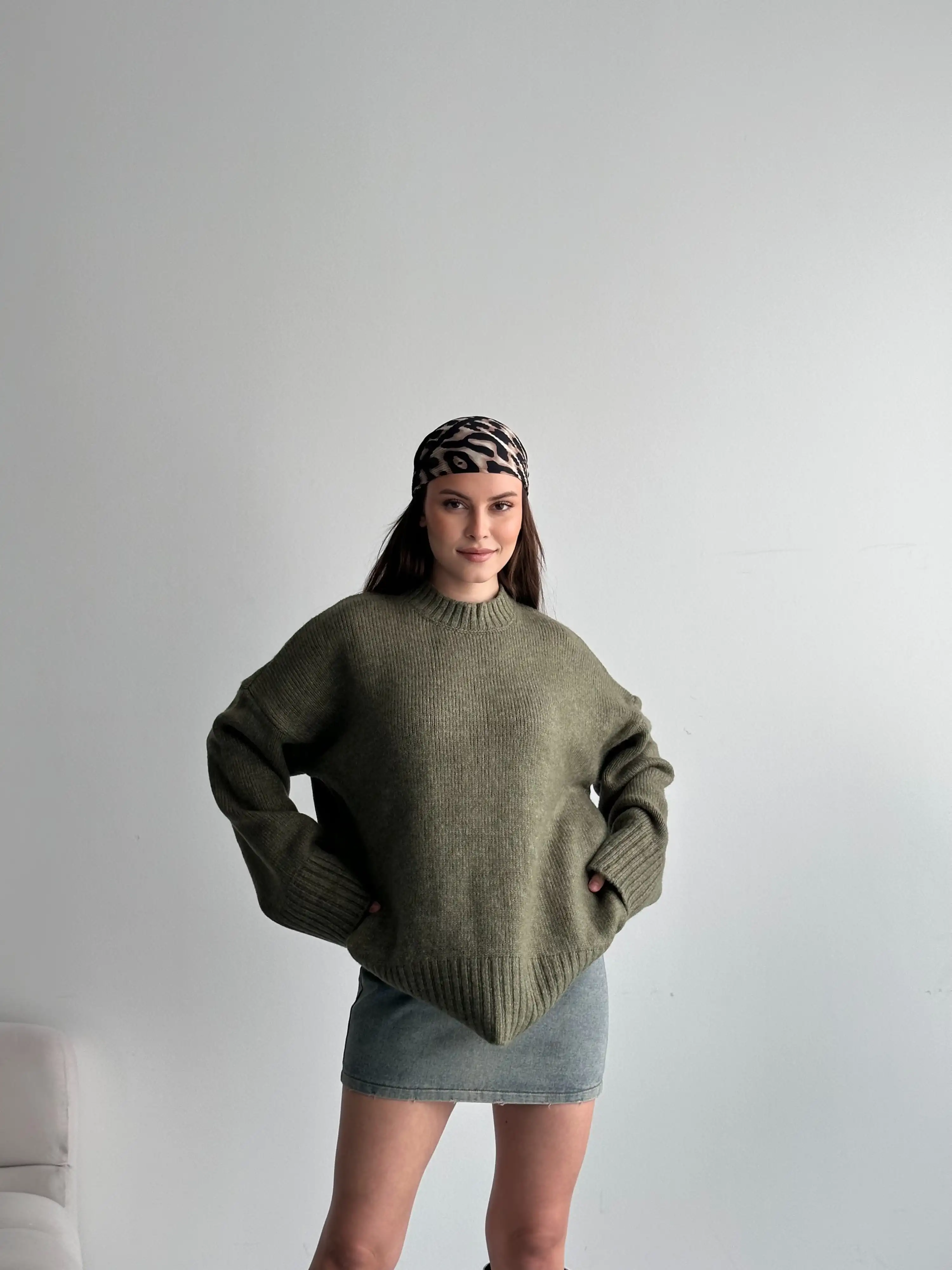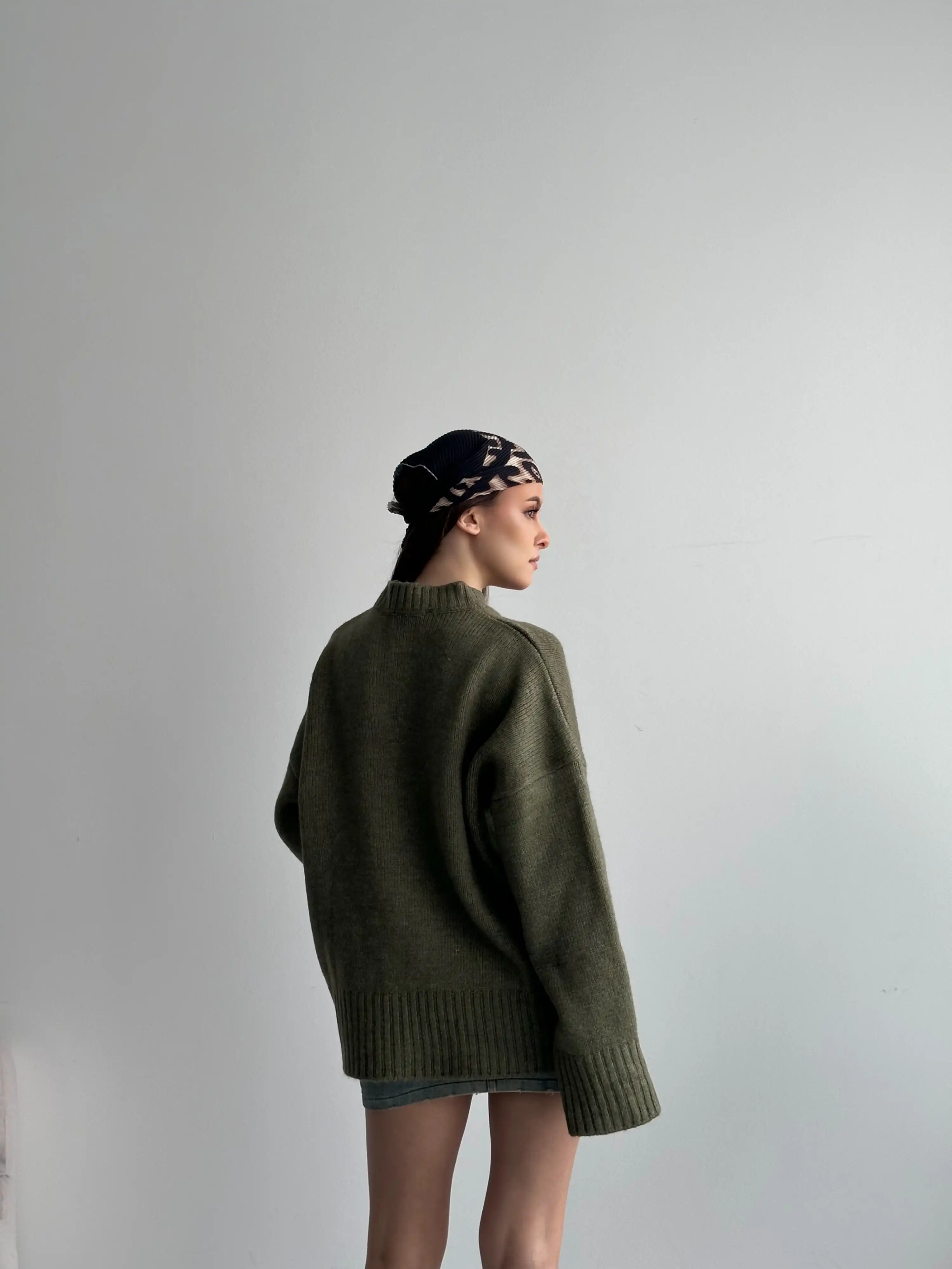 OVERSİZE BİSİKLET YAKA KAZAK-YEŞİL