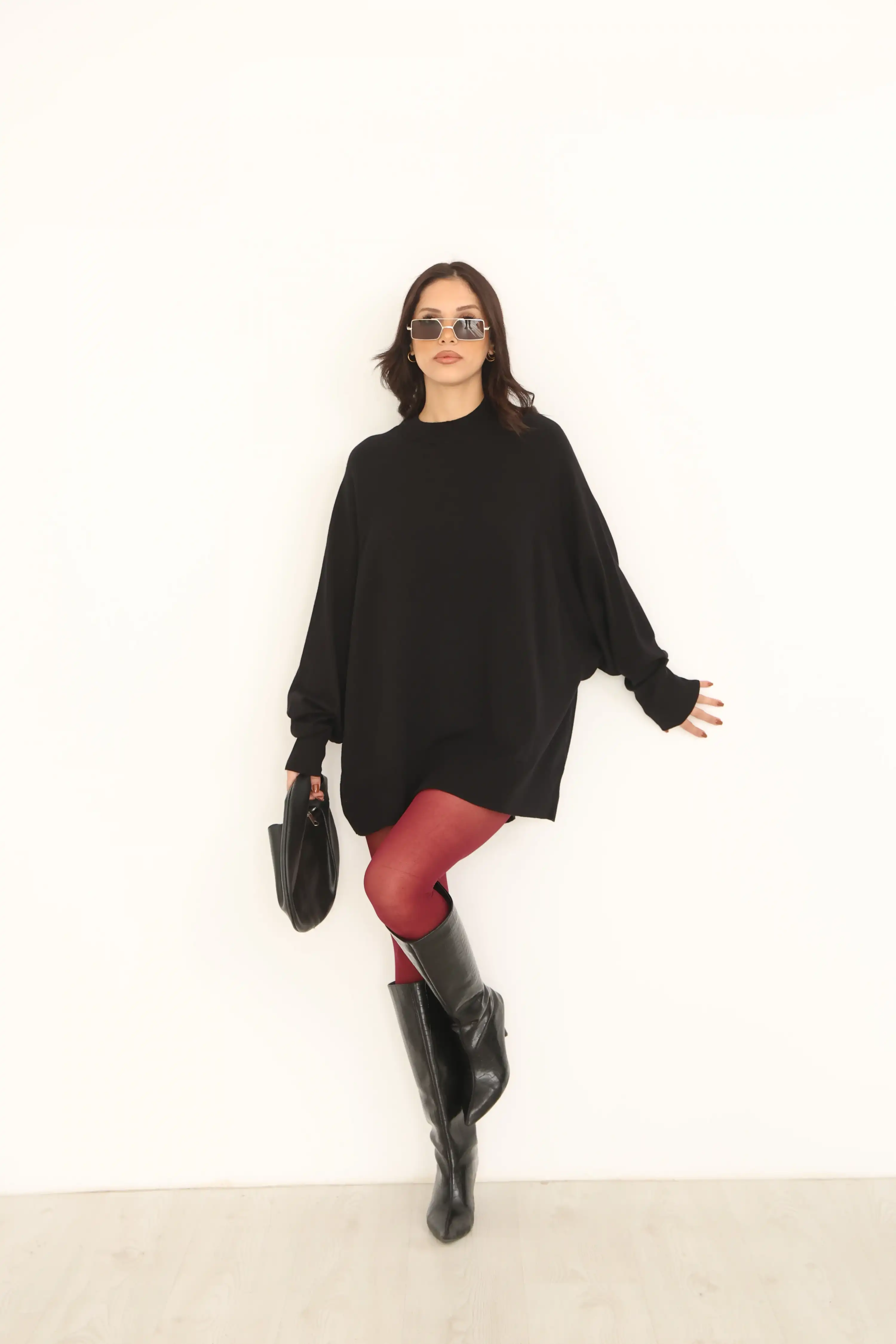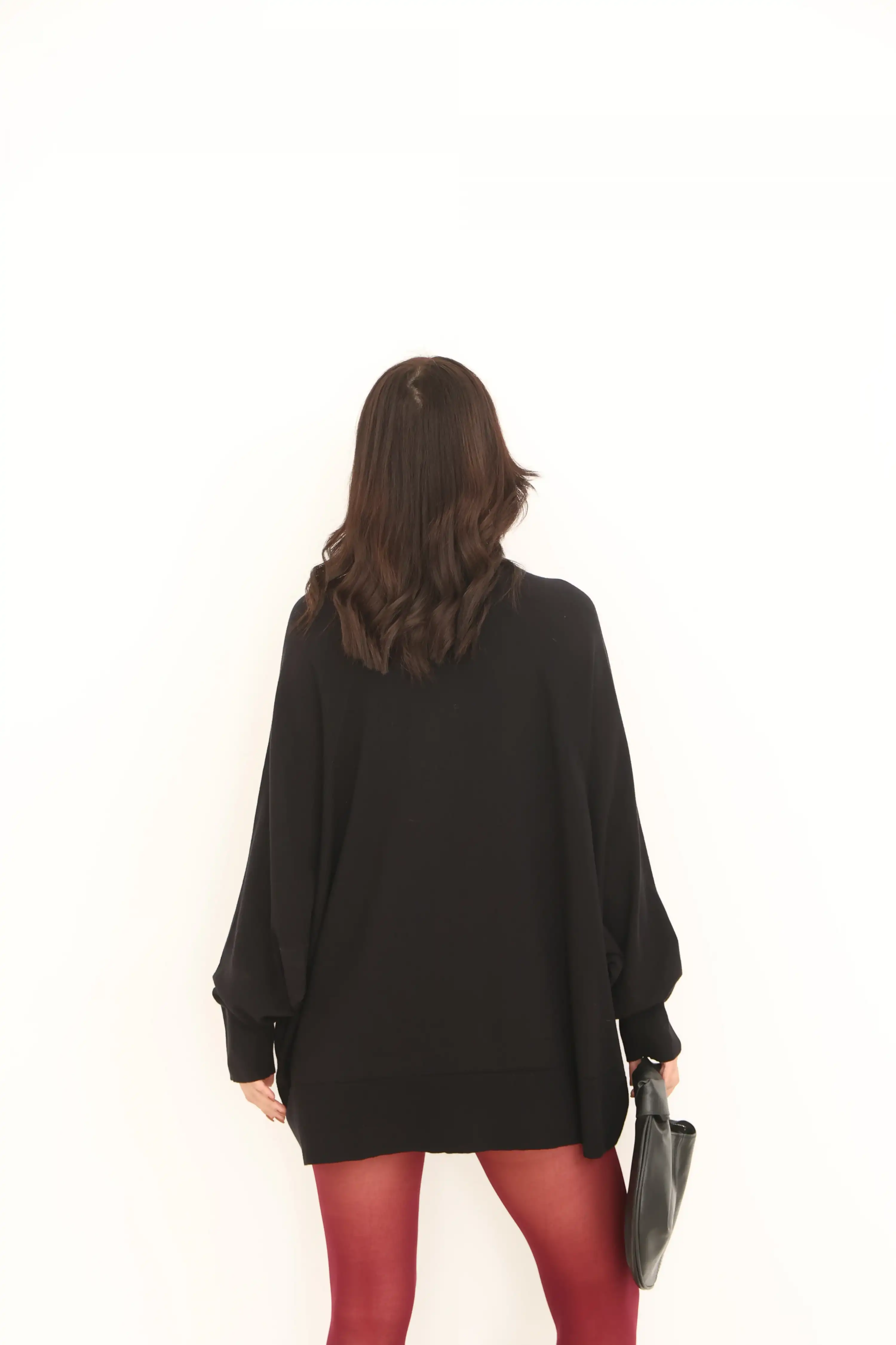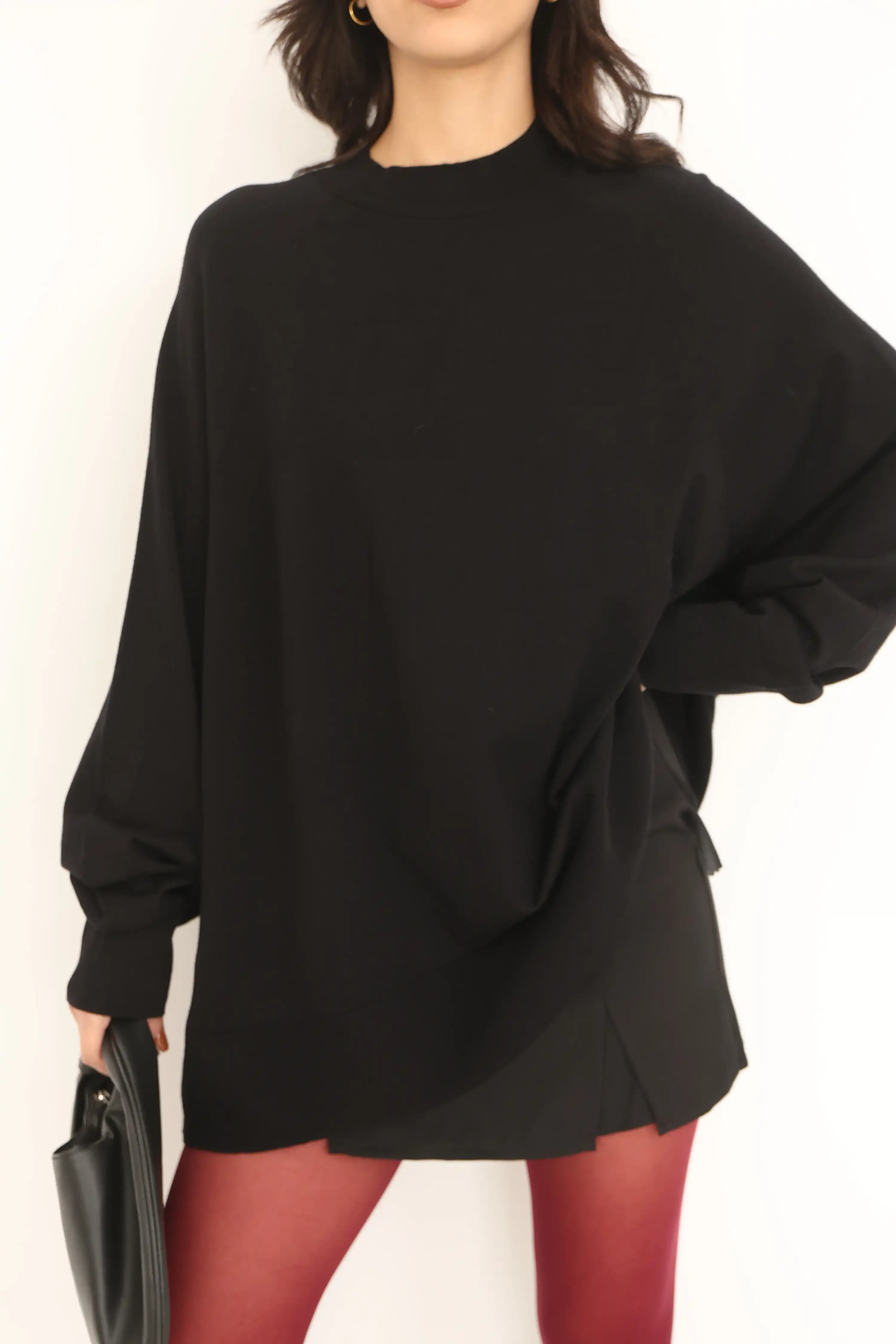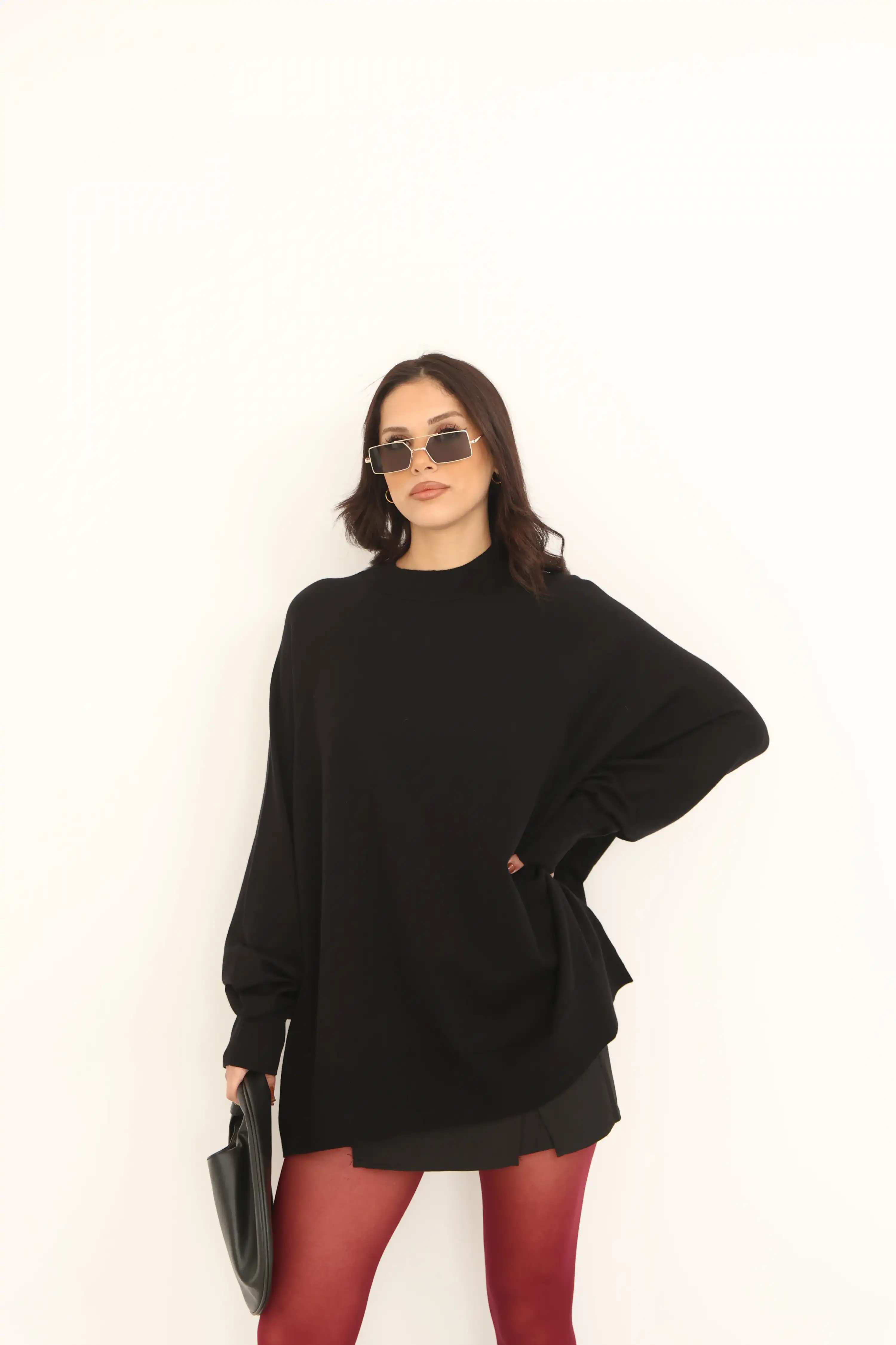 OVERSİZE DİK YAKA KAZAK-SİYAH