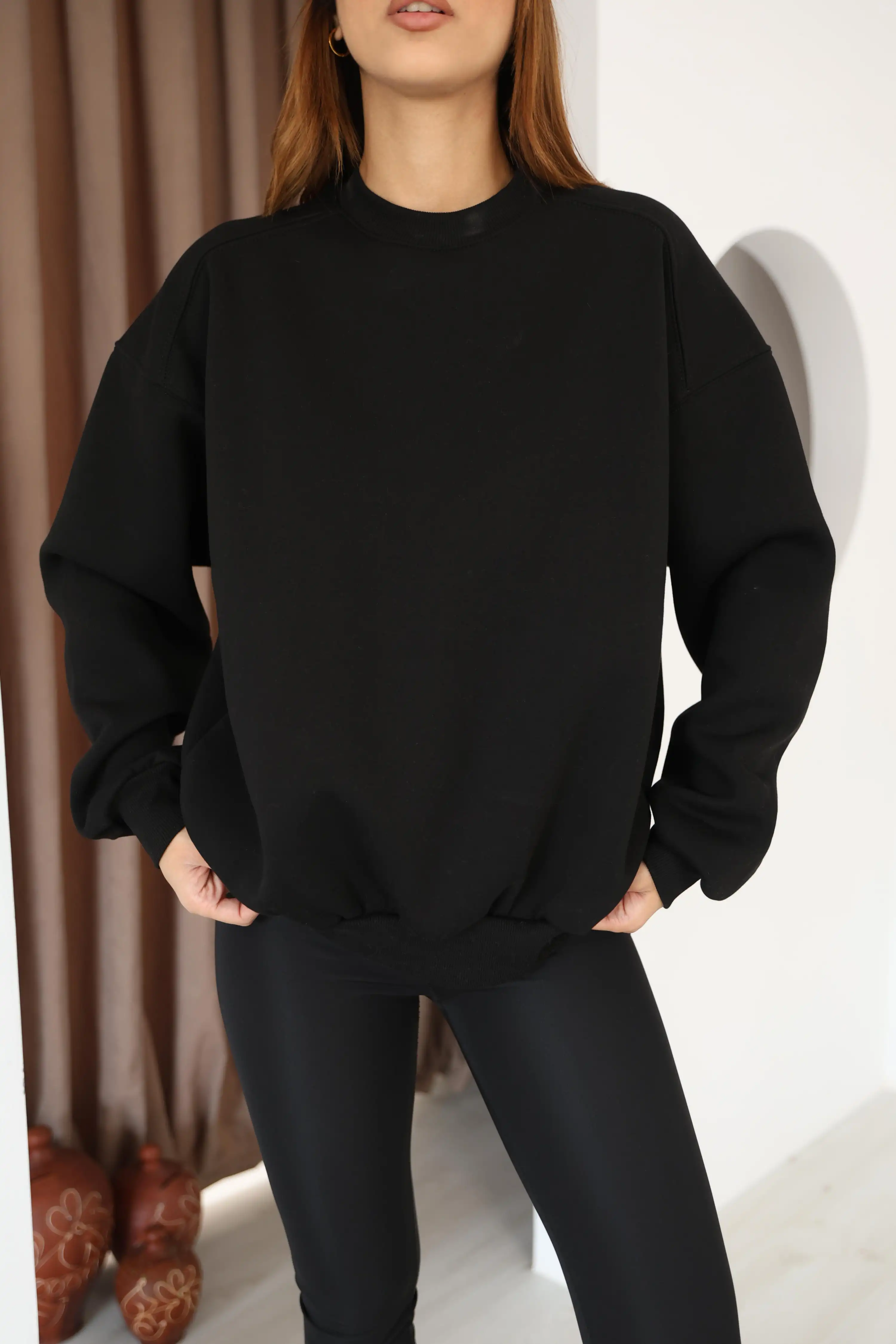 OVERSİZE ŞARDONLU SWEAT-SİYAH
