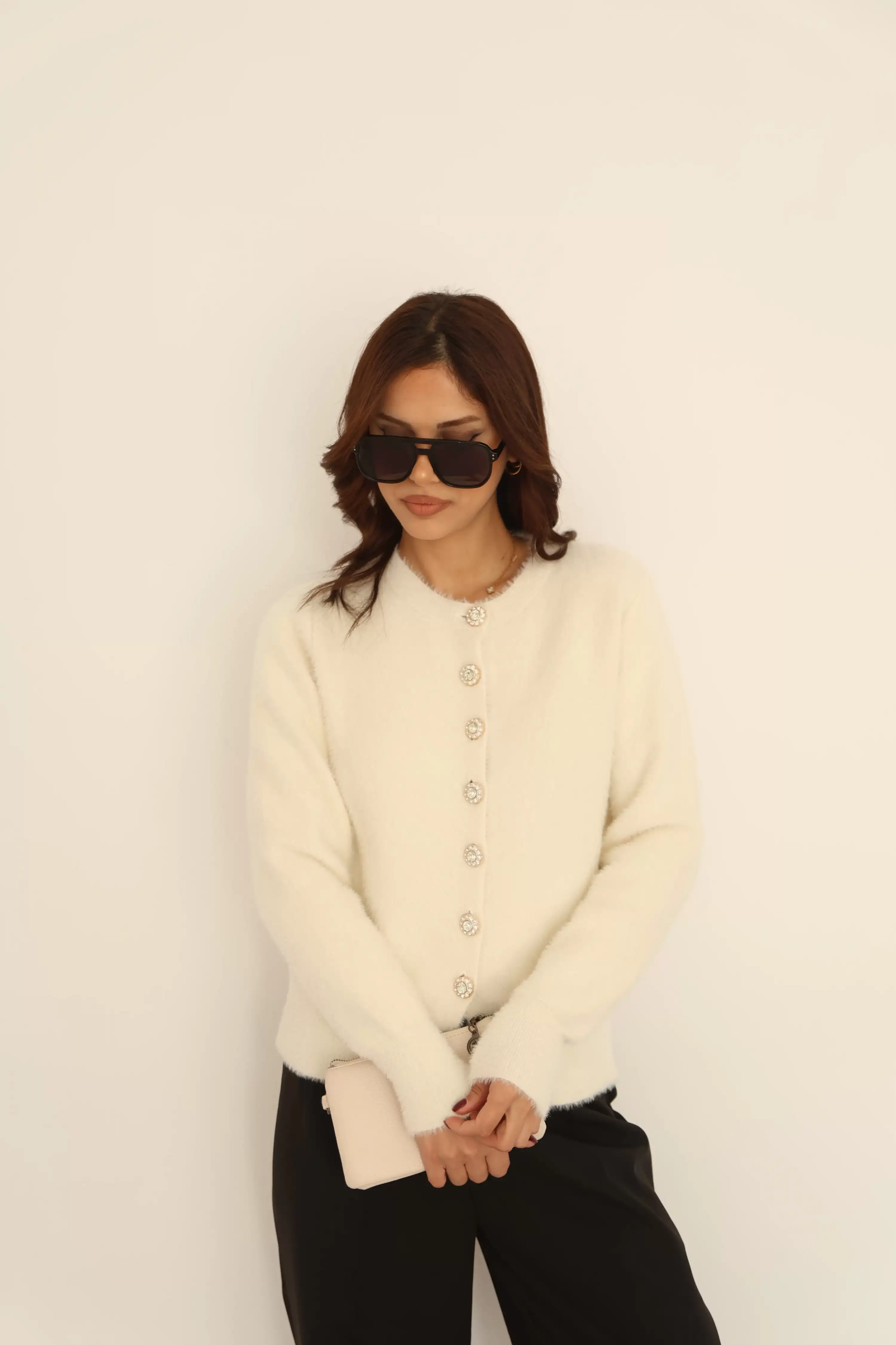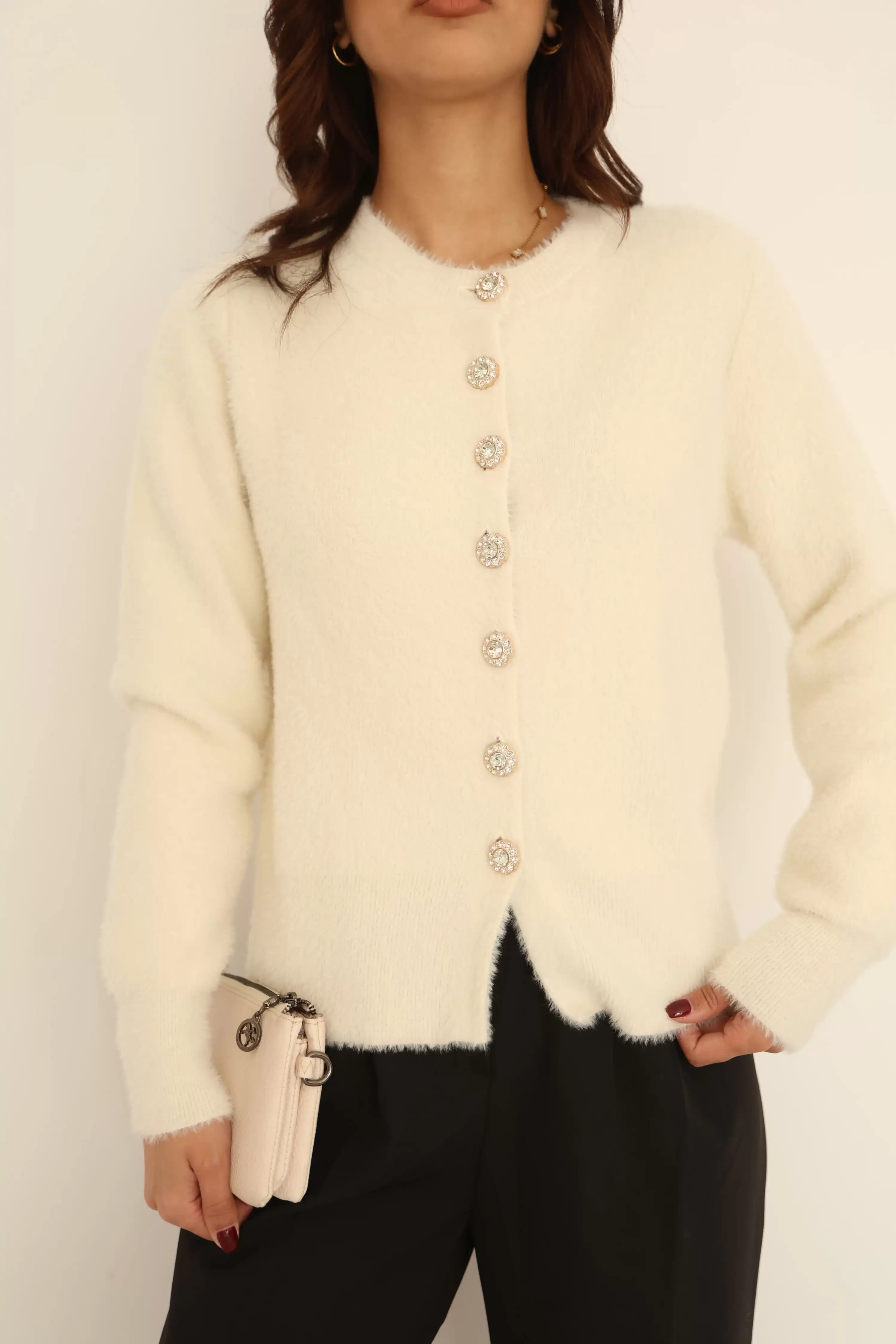 PARLAK DÜĞME DETAYLI SAKALLI HIRKA-BEYAZ