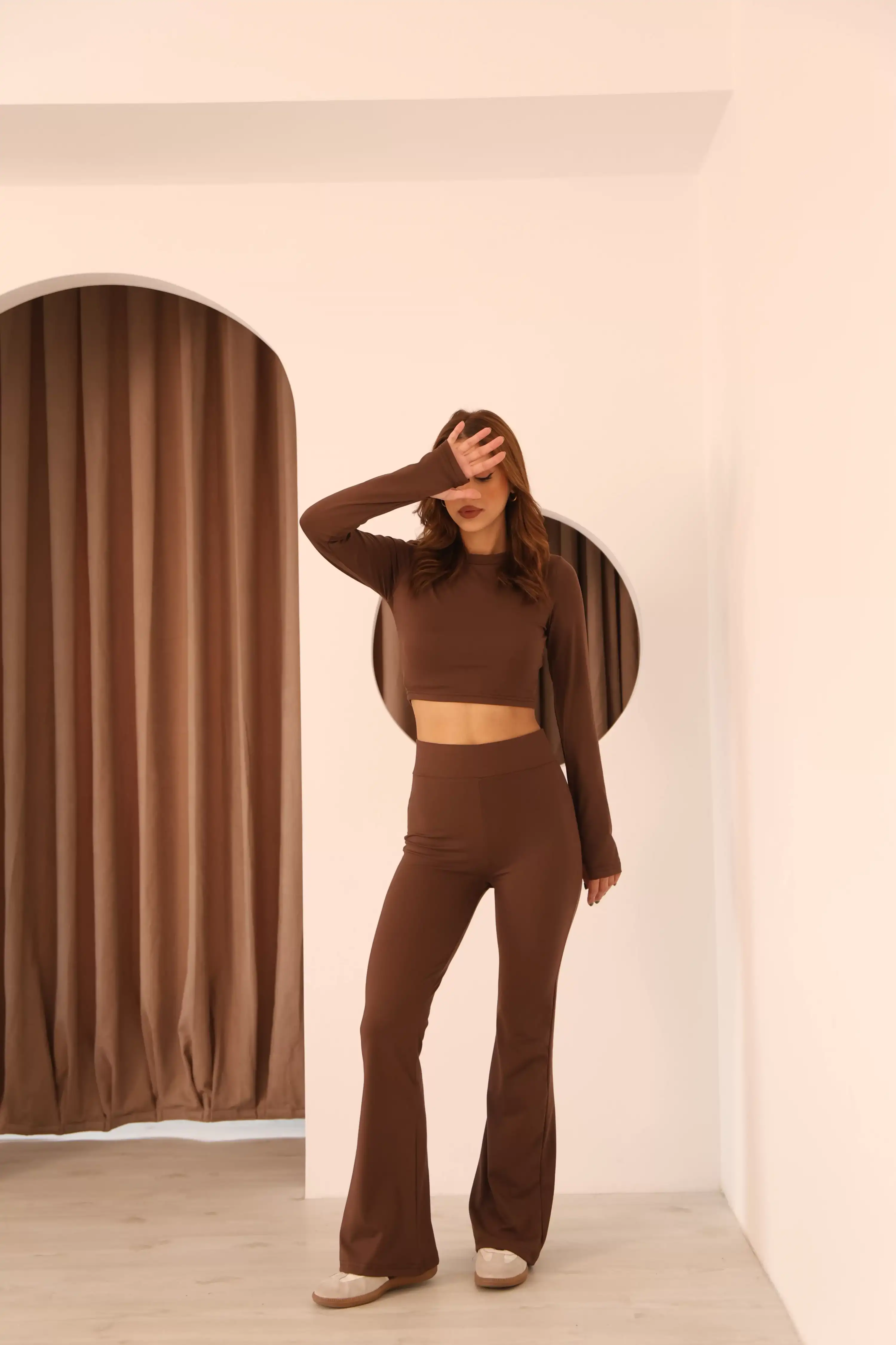 PARMAK GEÇİRMELİ MODAL TAKIM-KAHVE