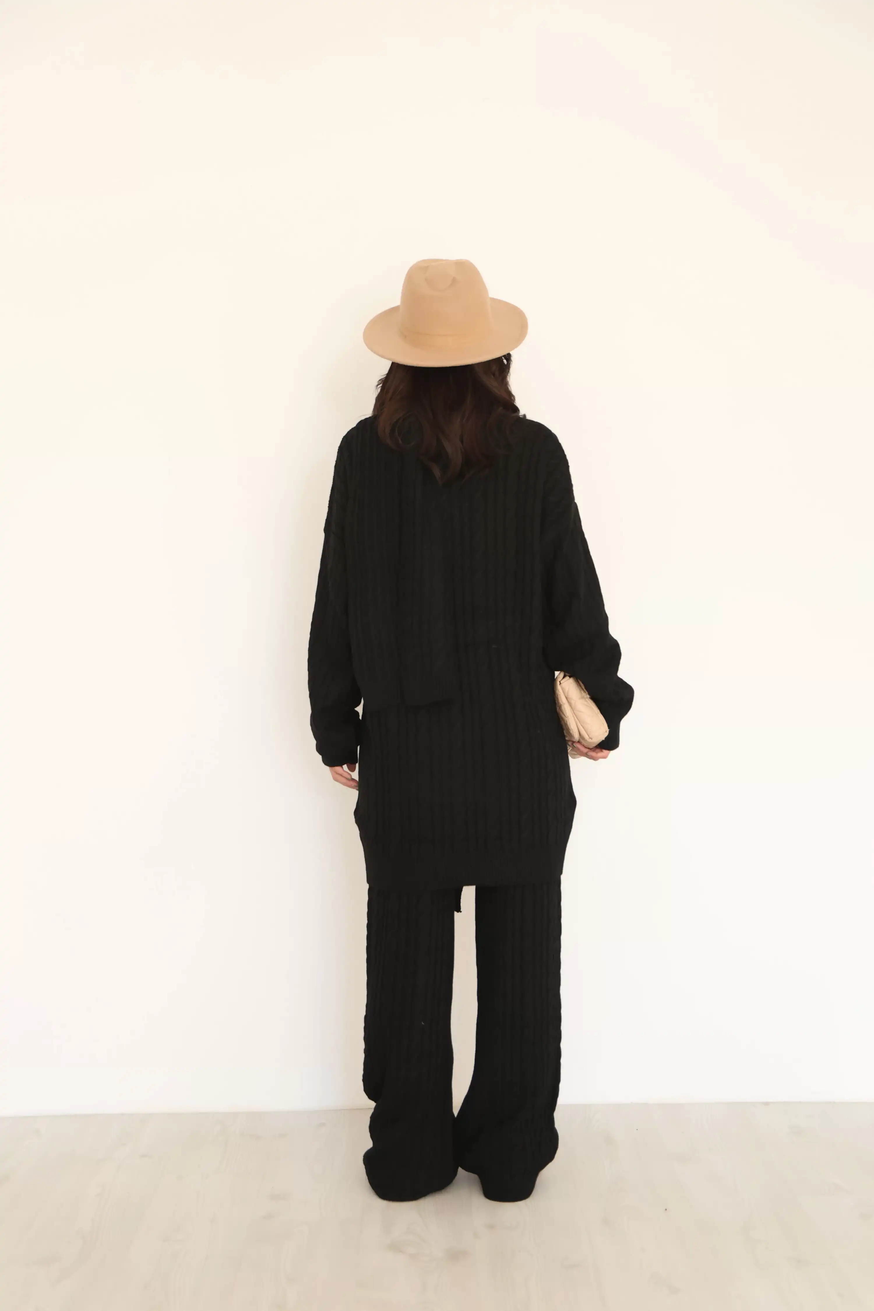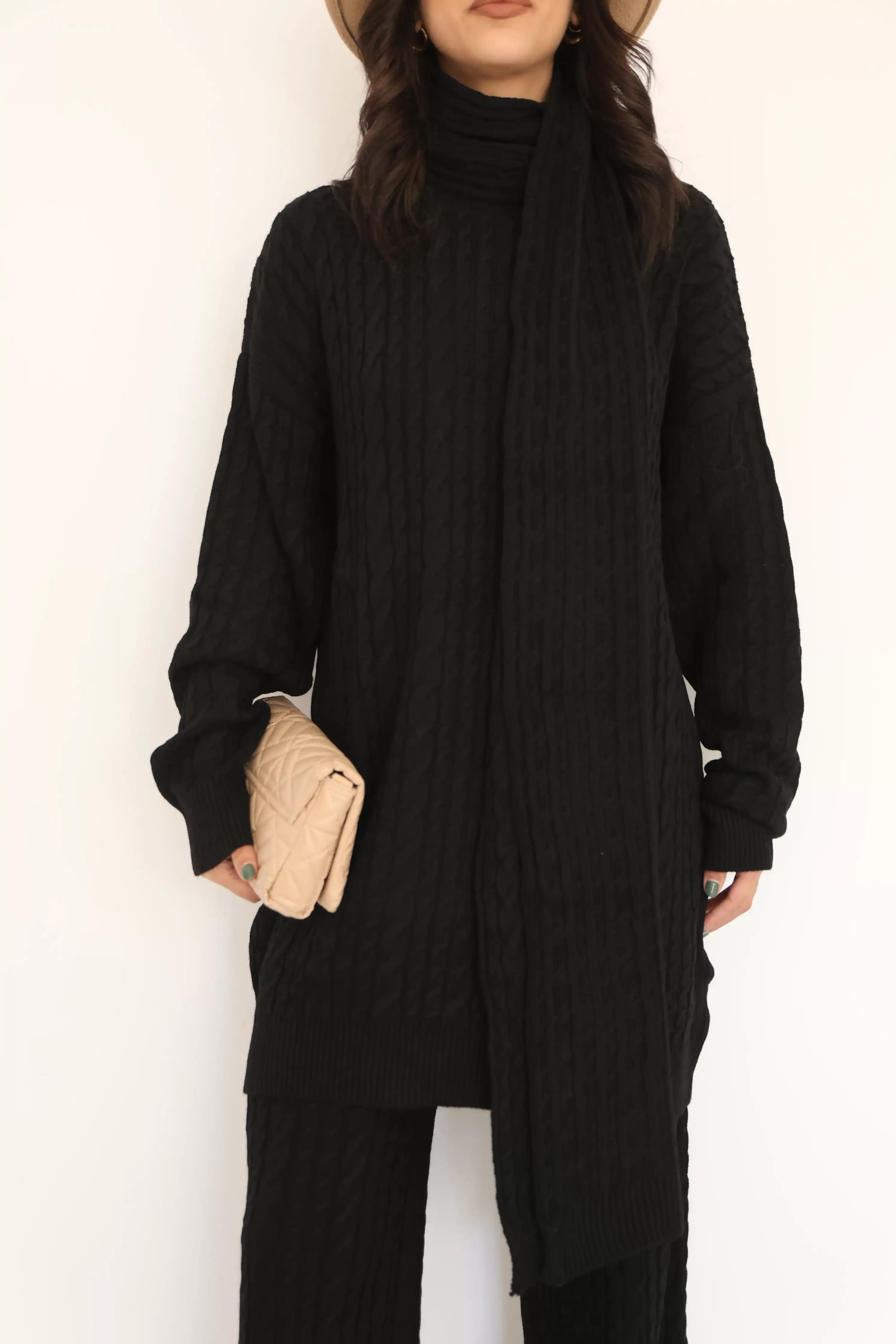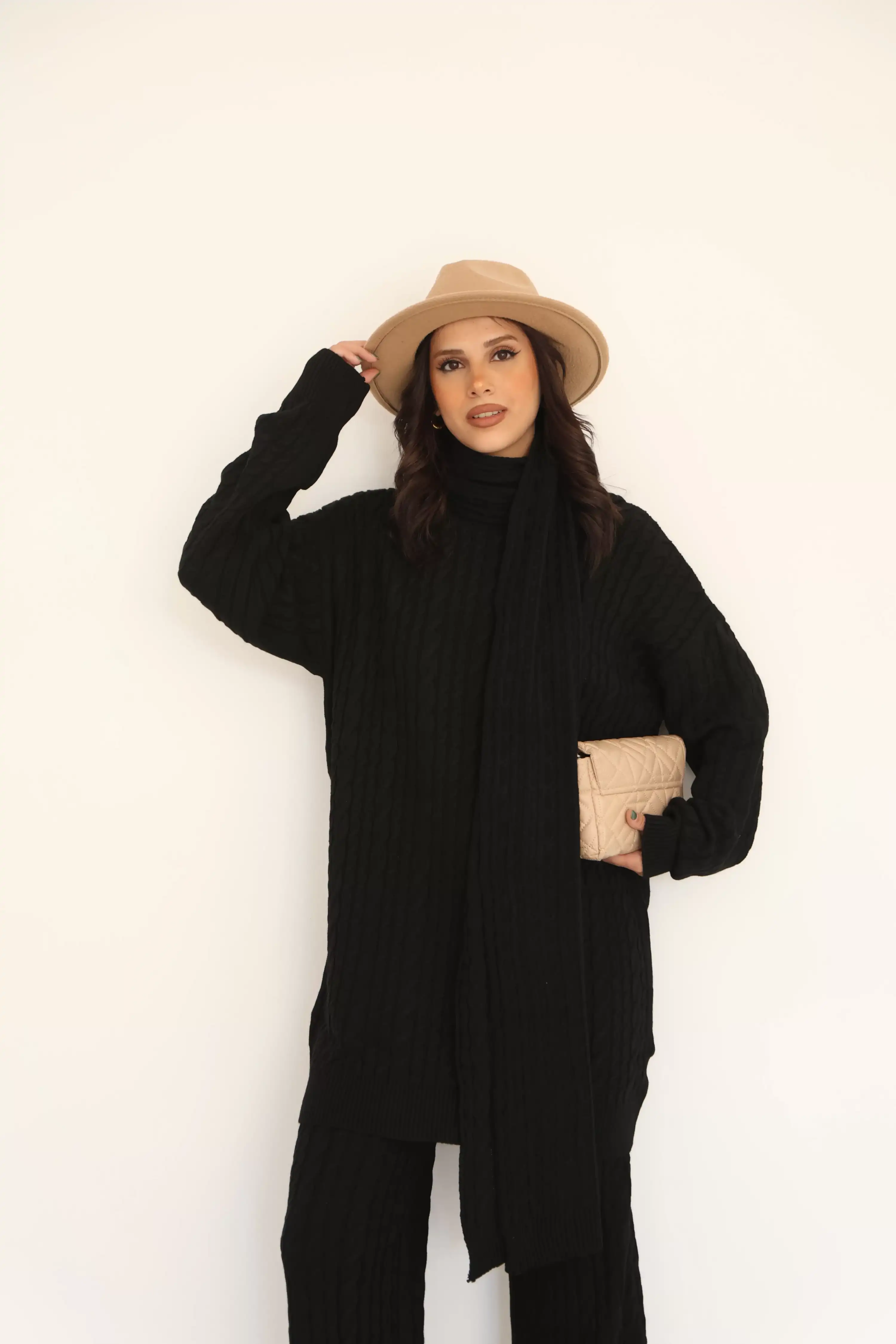 ŞAL DETAYLI TRİKO TAKIM-SİYAH