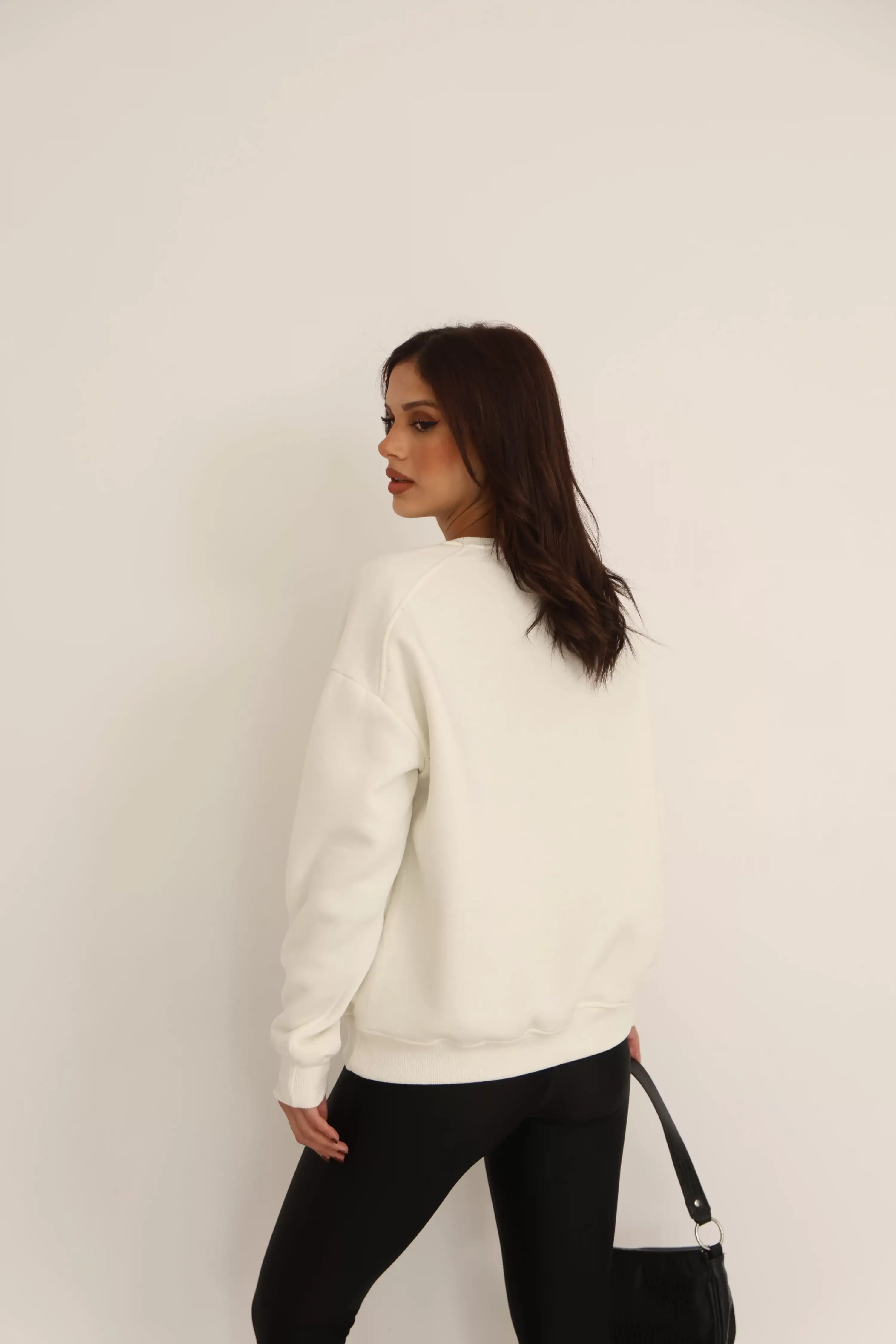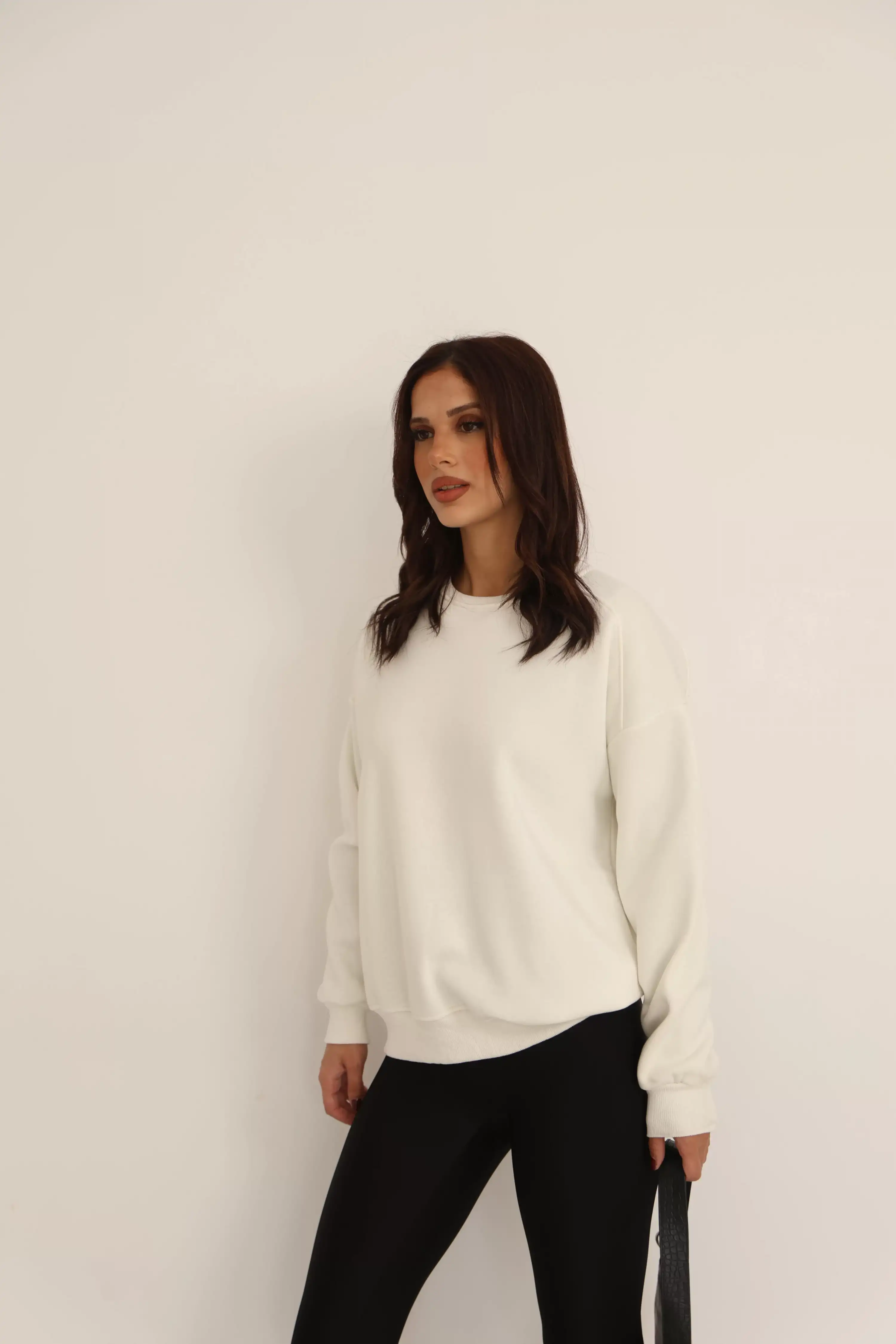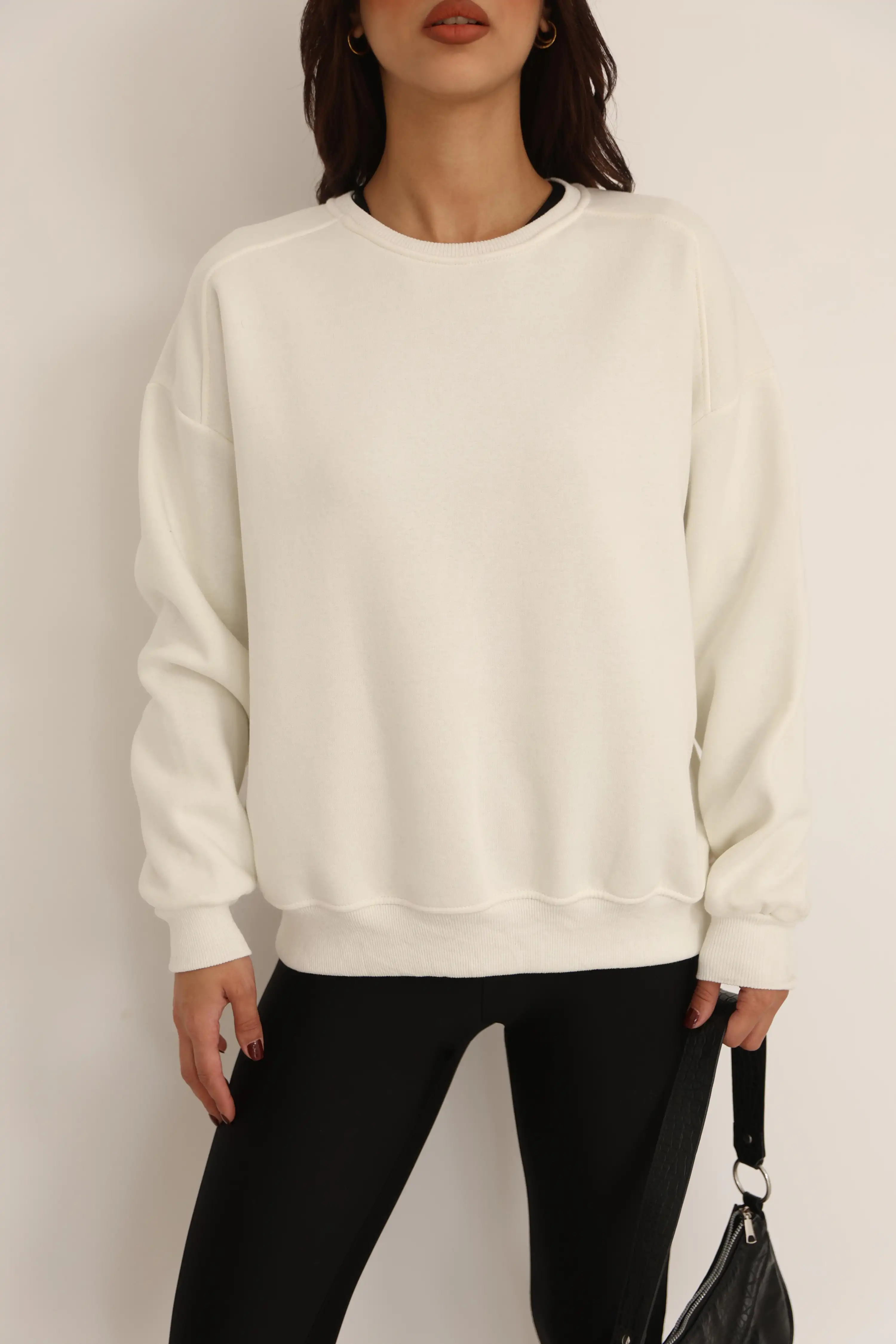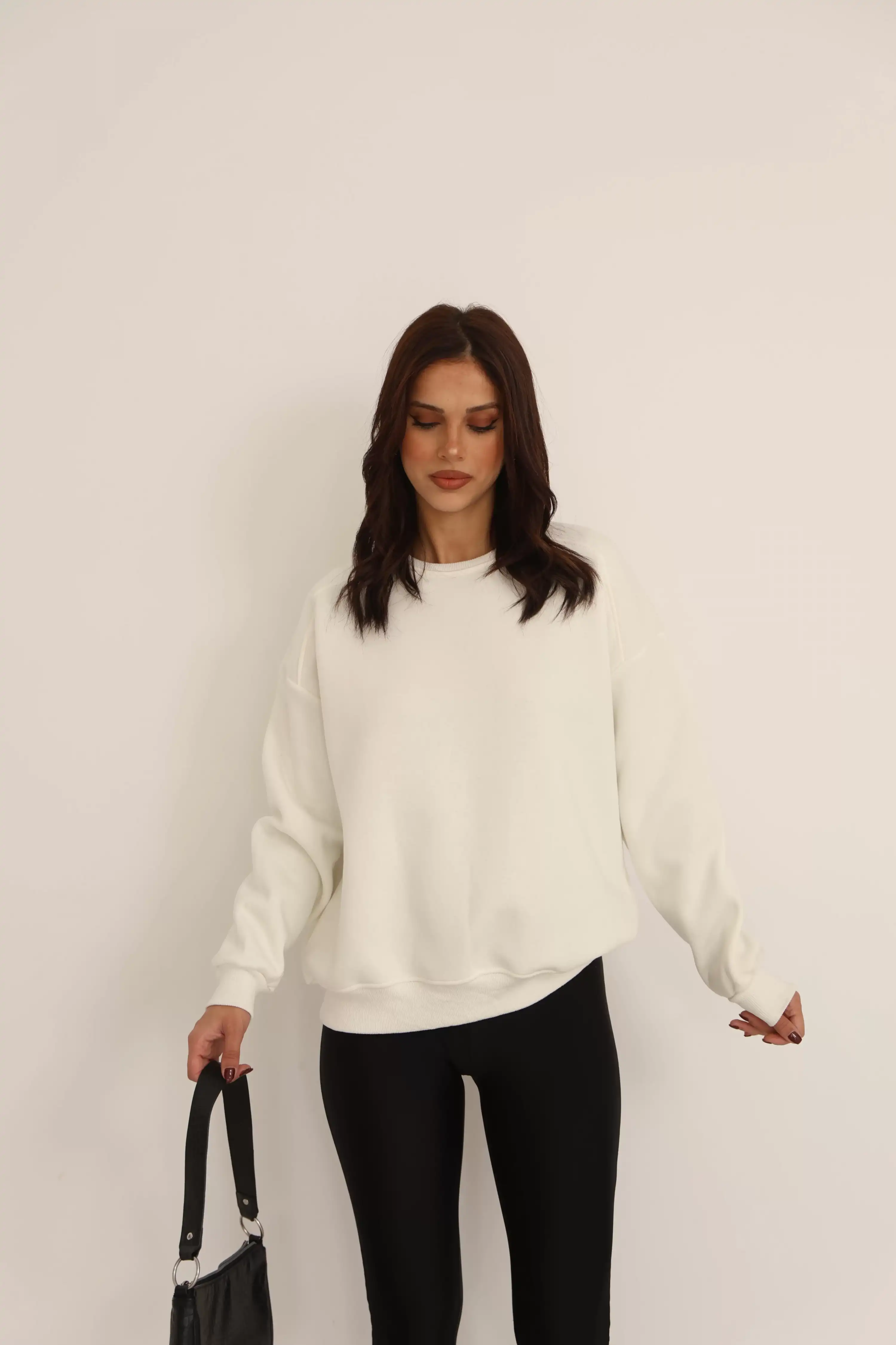 ŞARDONLU DÜZ SWEAT-BEYAZ