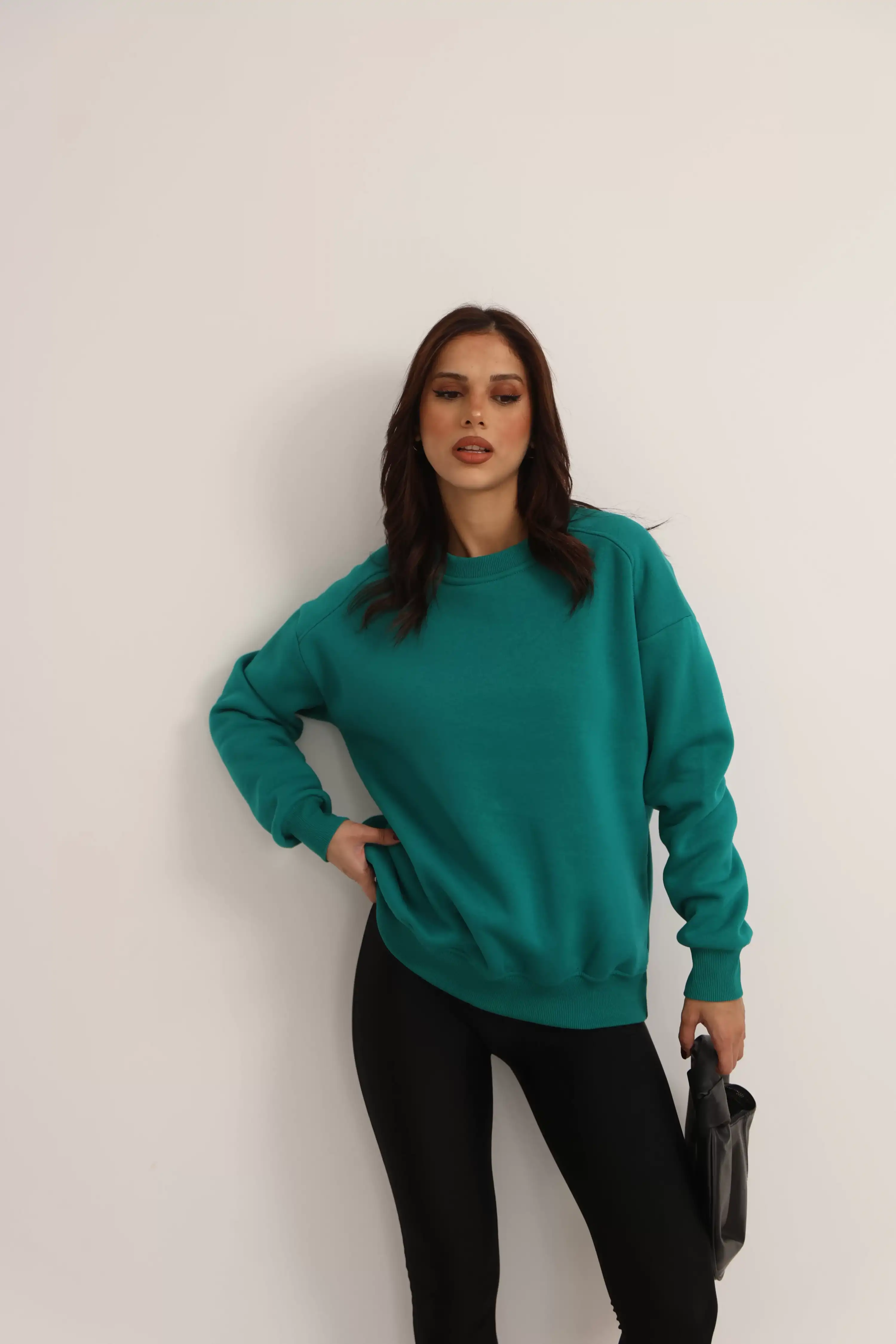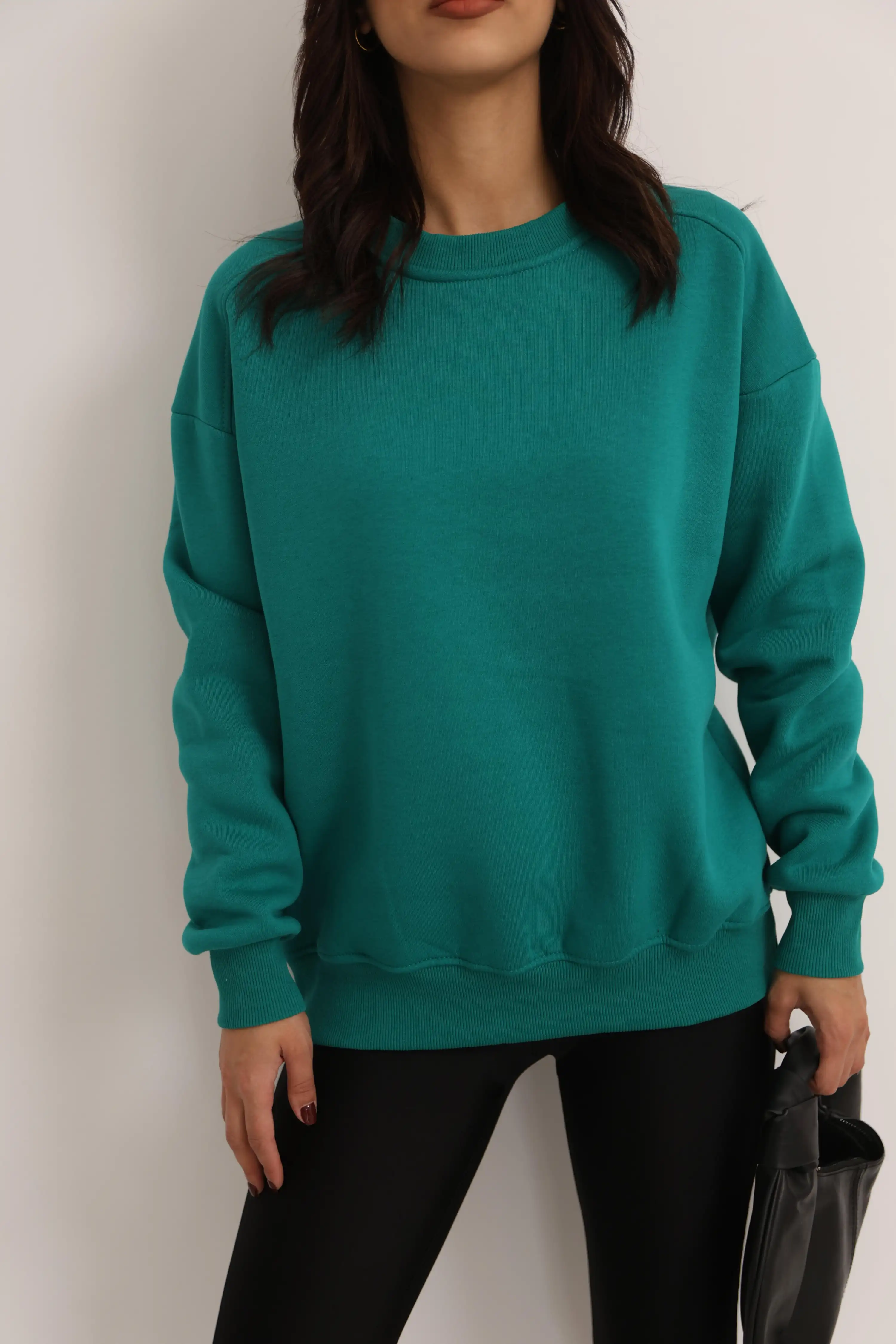ŞARDONLU DÜZ SWEAT-YEŞİL