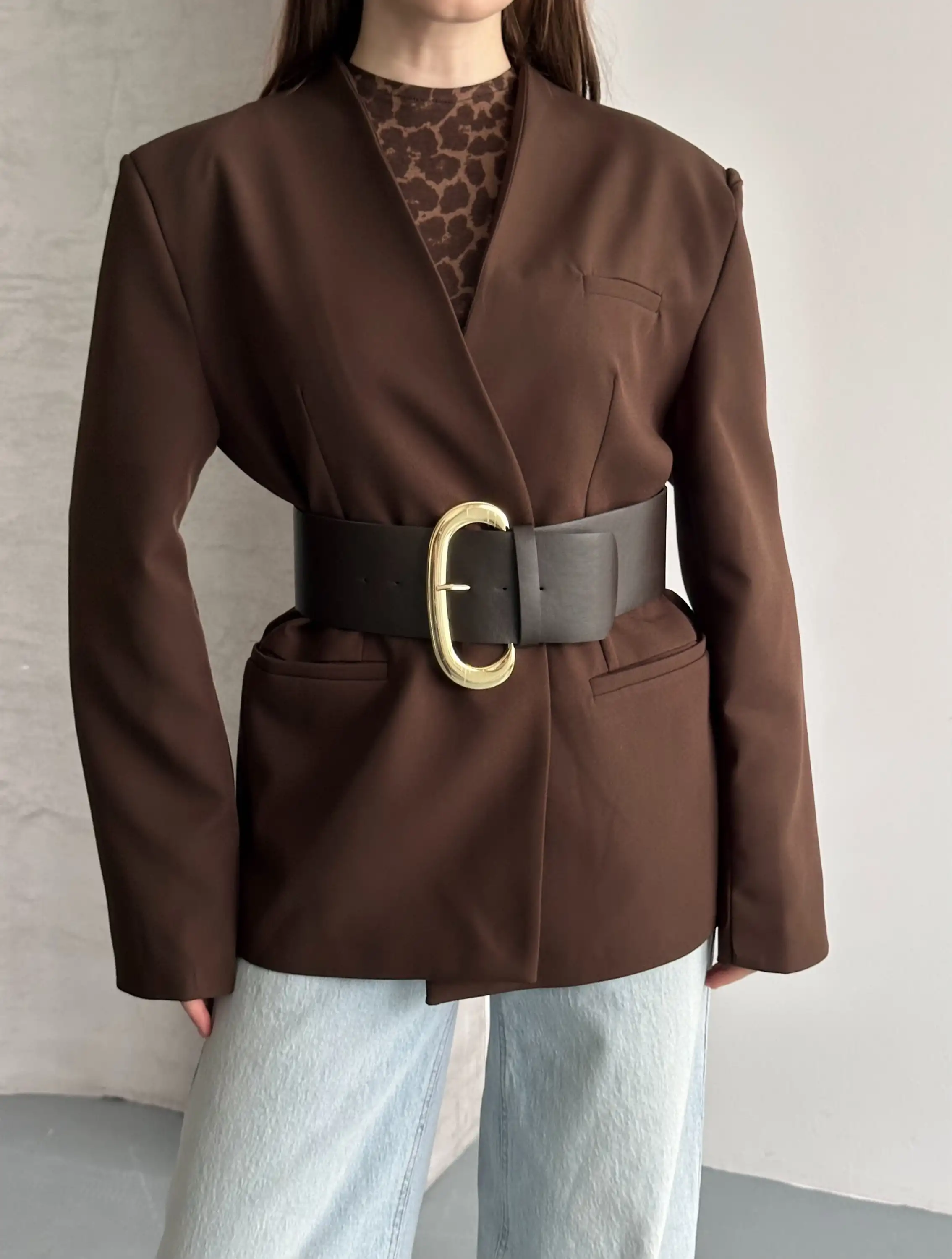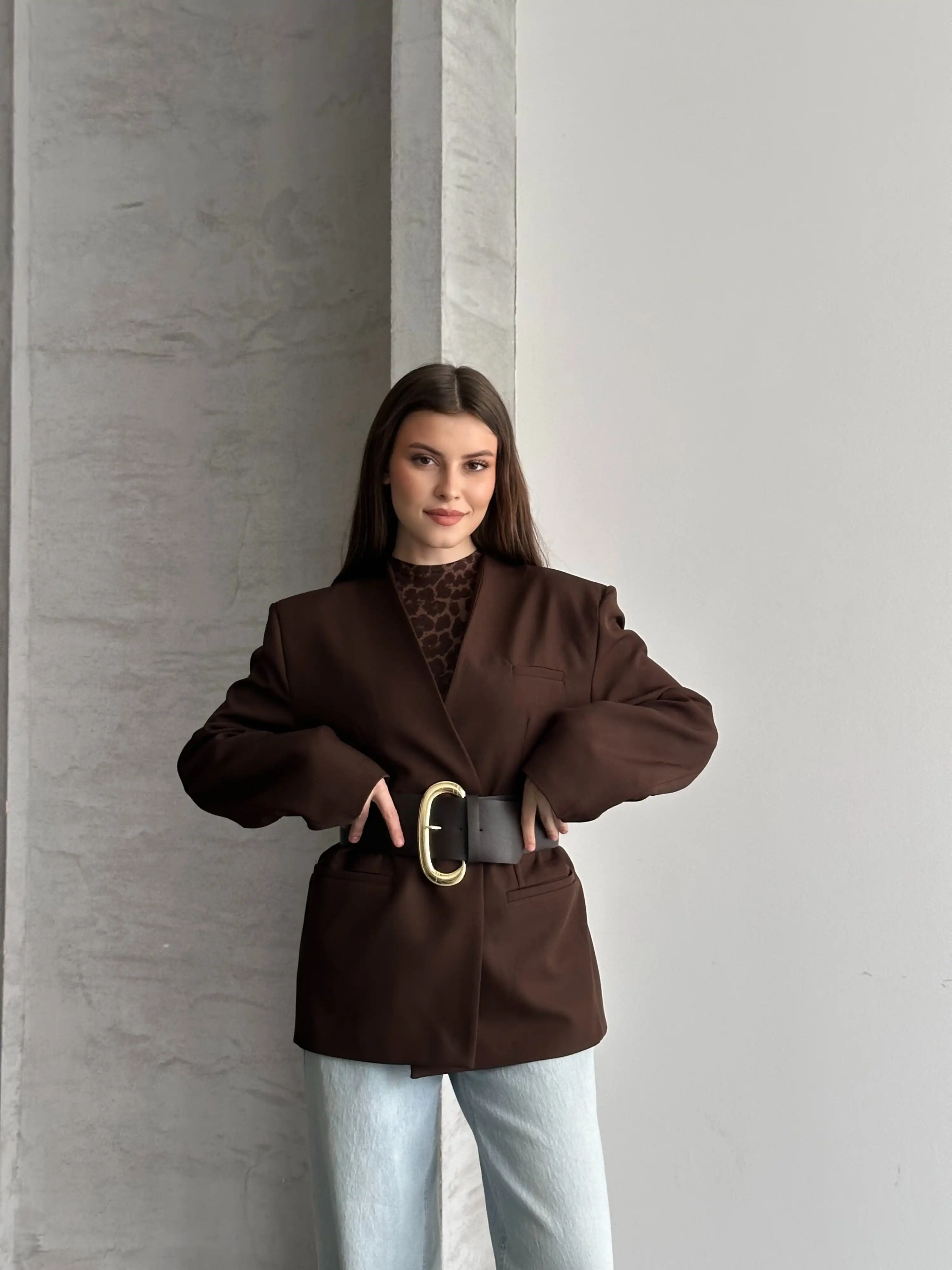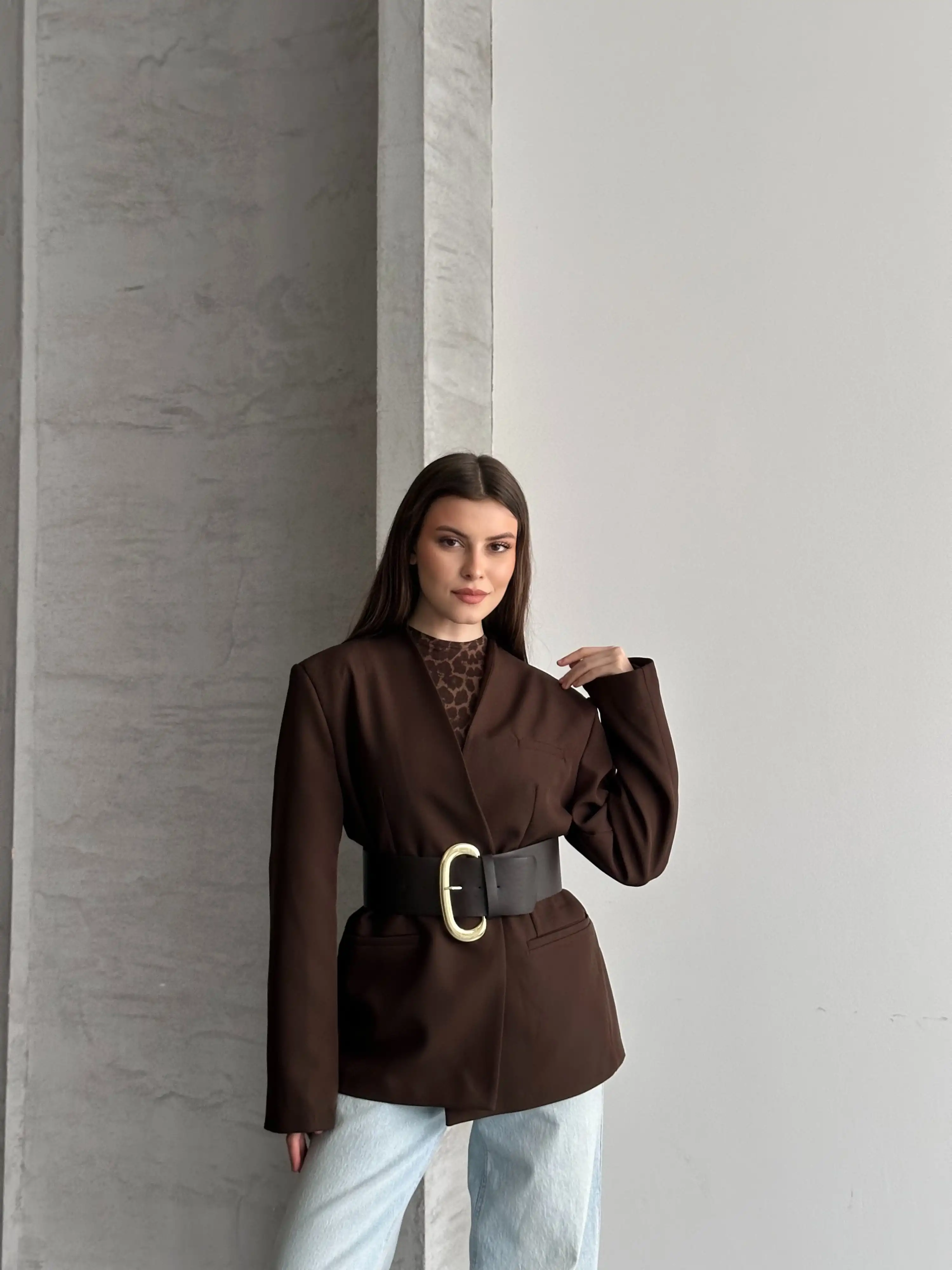 ŞIK KEMERLİ BLAZER CEKET-KAHVE
