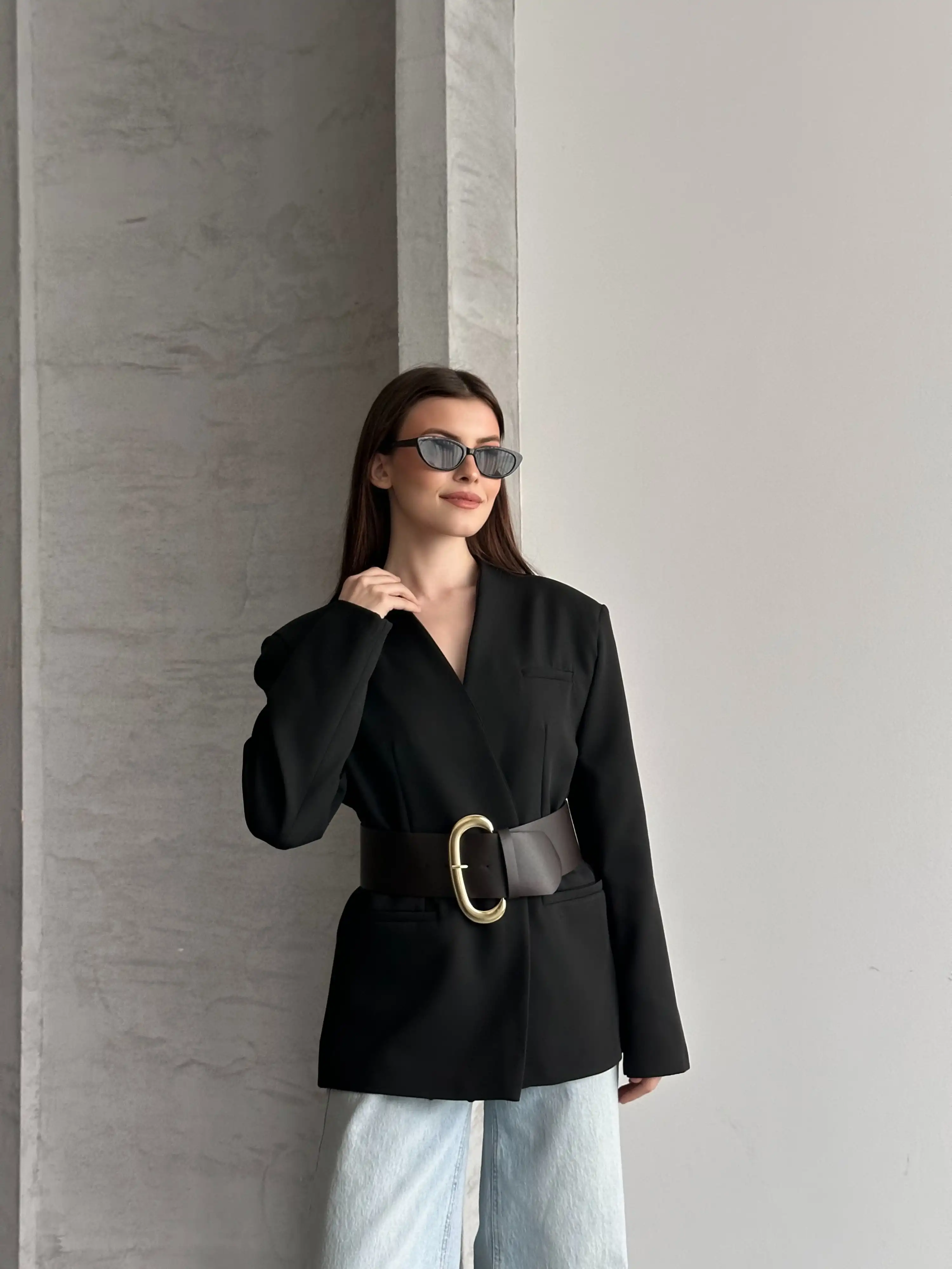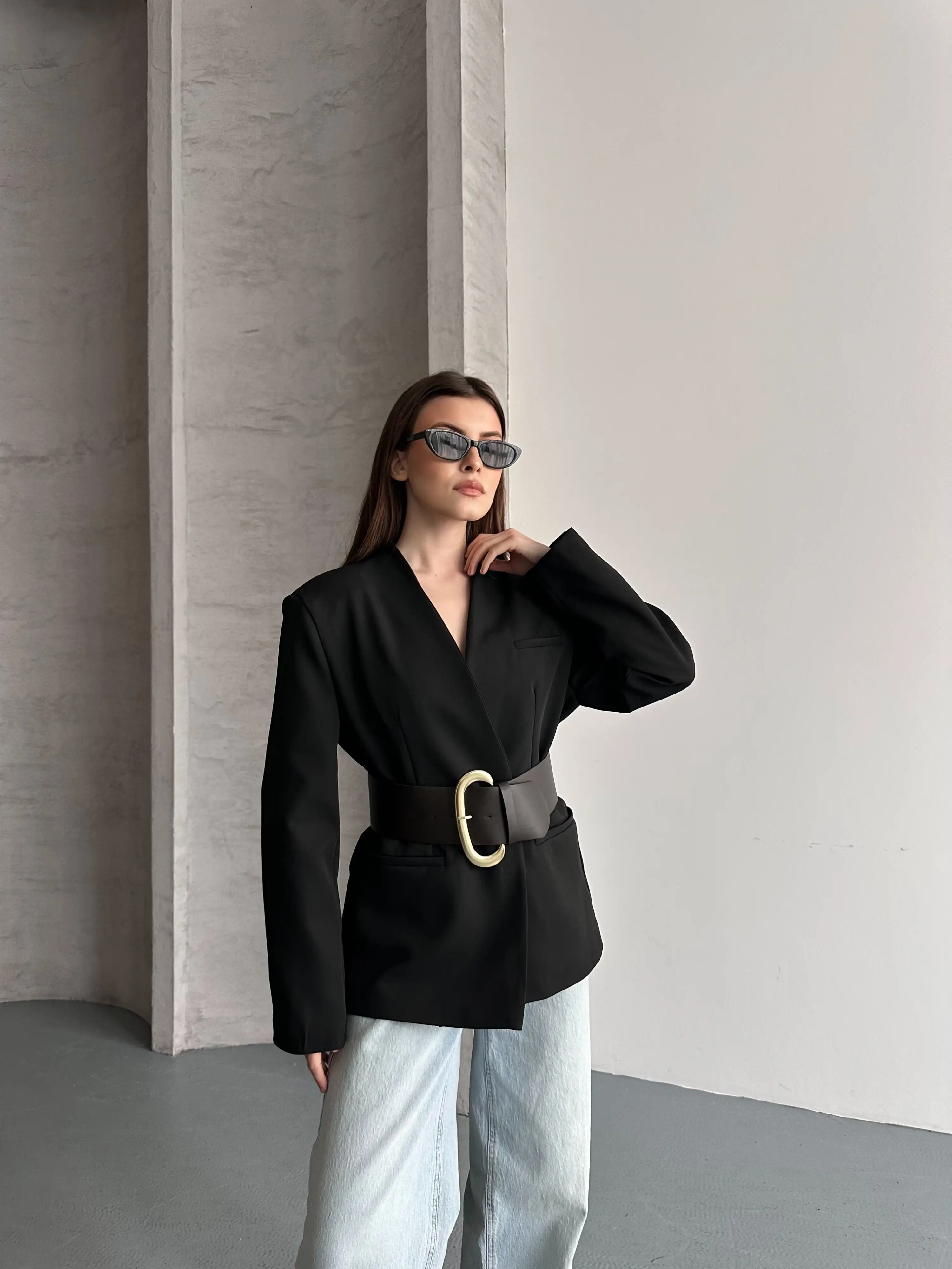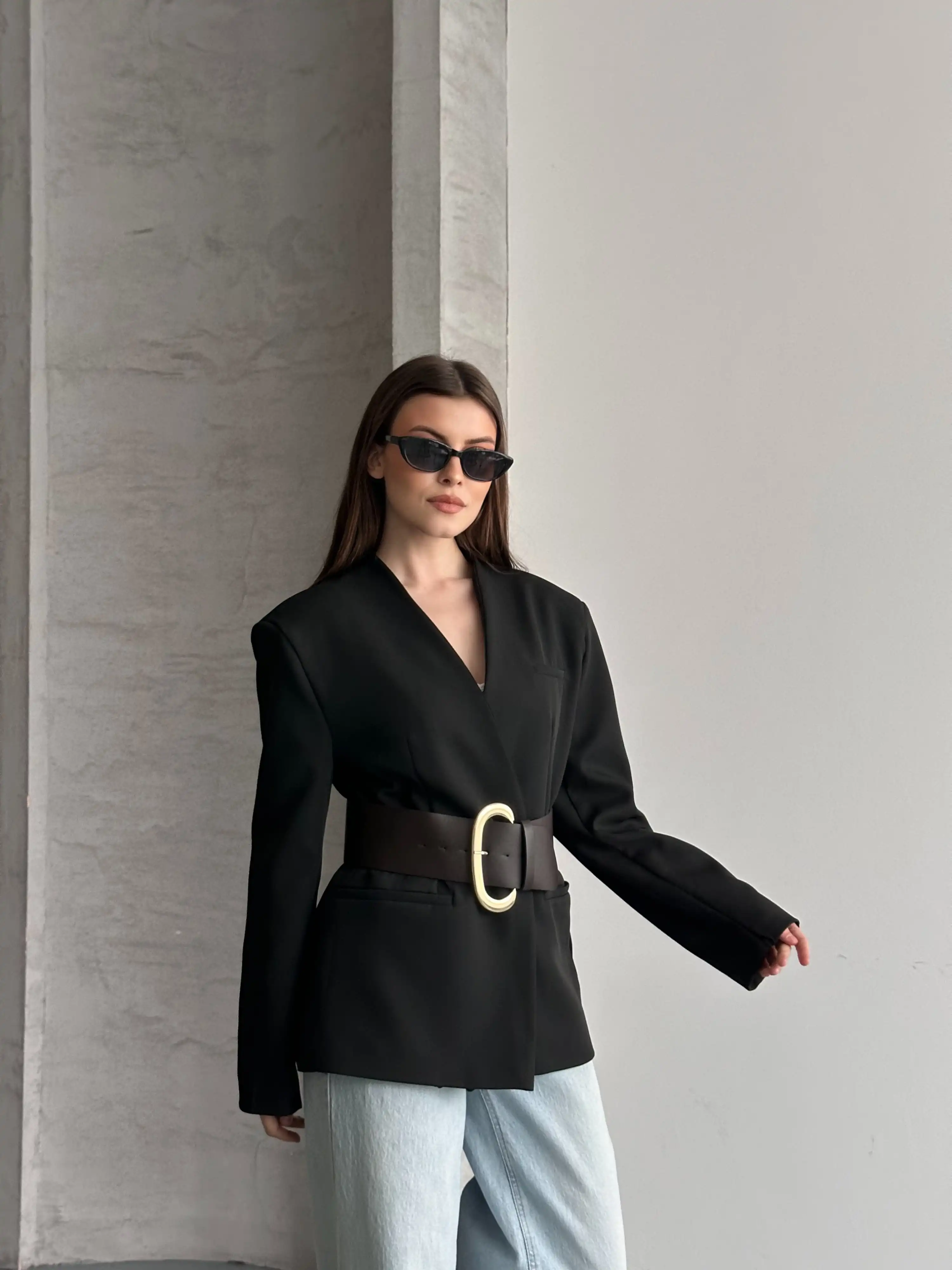 ŞIK KEMERLİ BLAZER CEKET-SİYAH