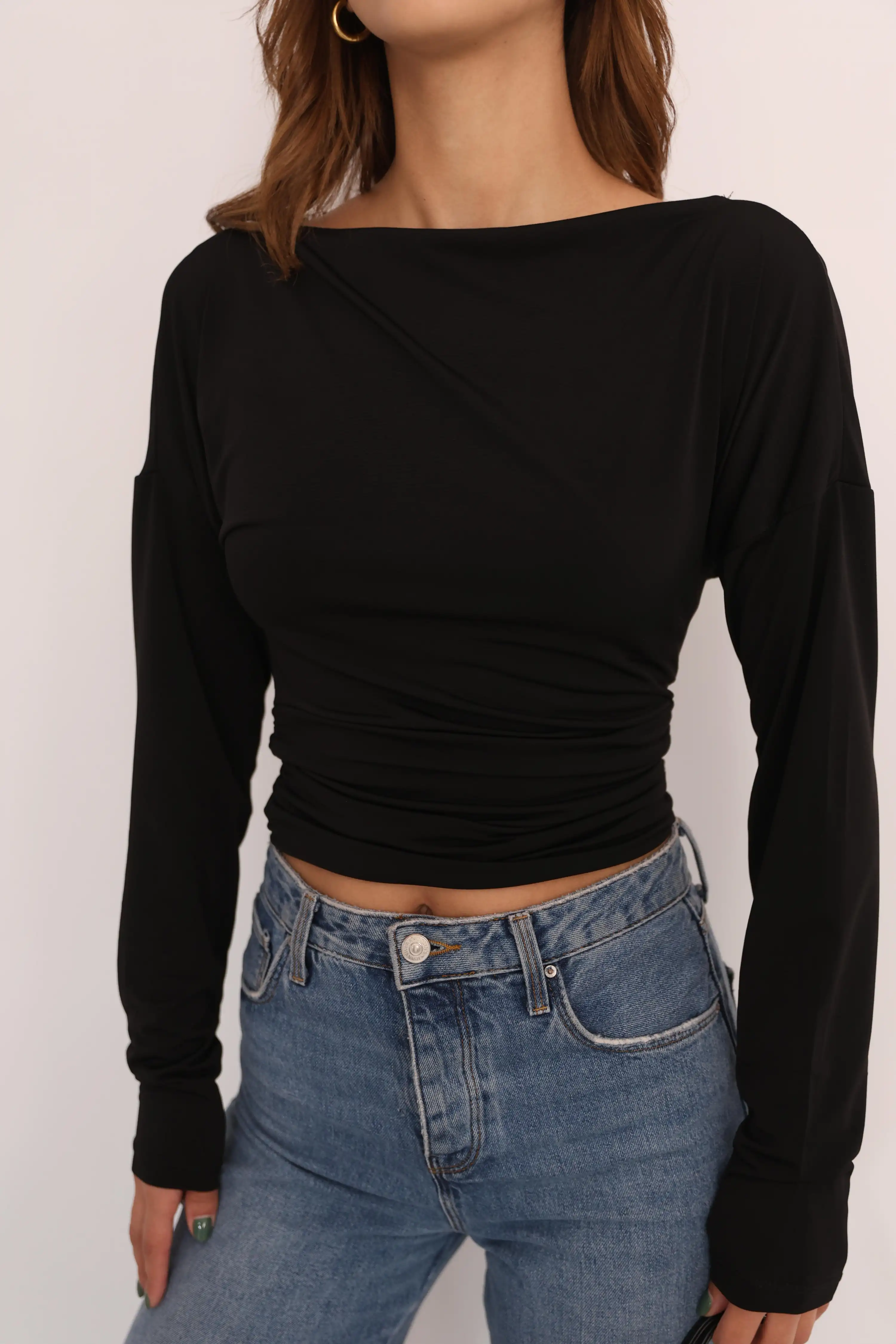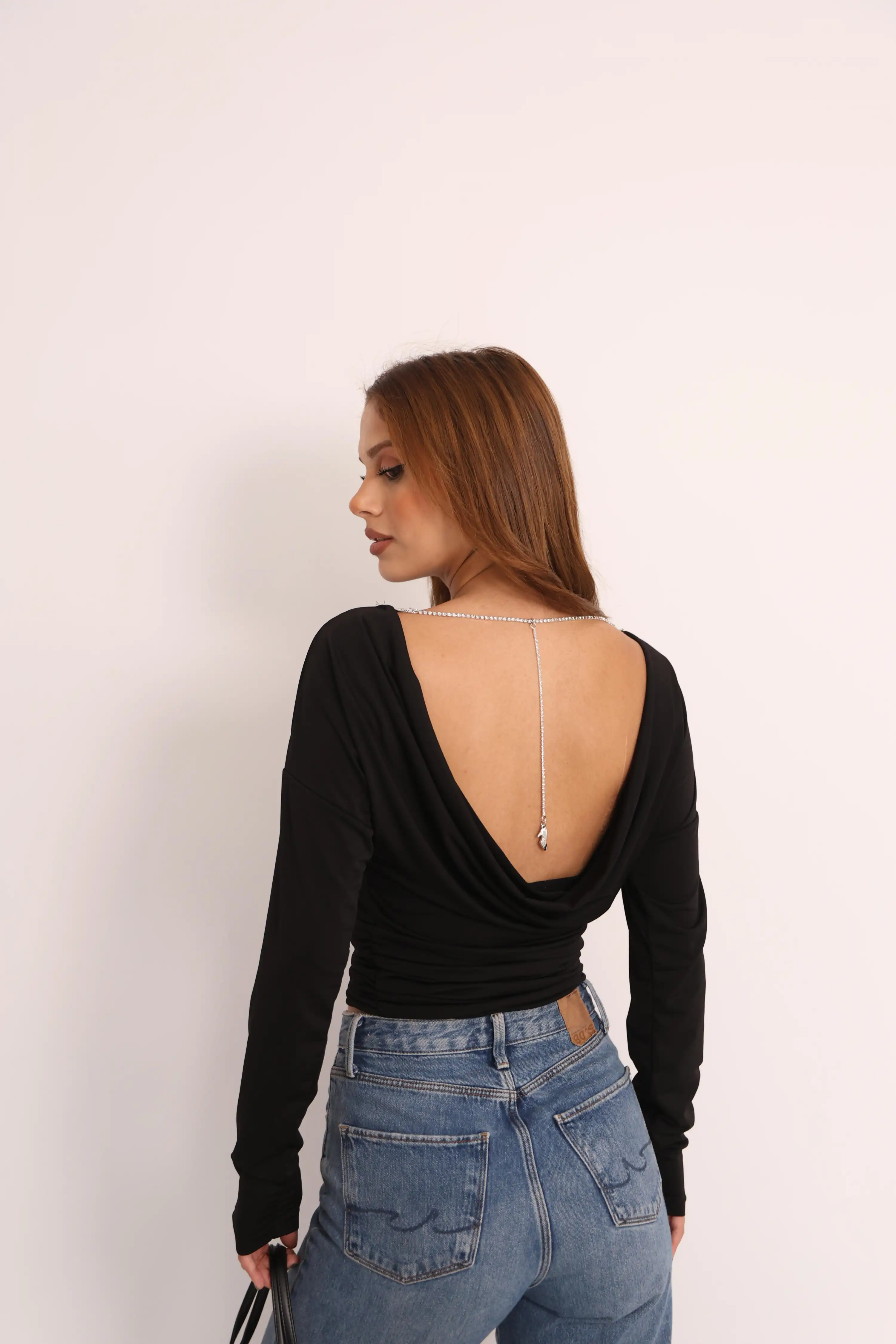 SIRT DEKOLTELİ AŞK BLUZ-SİYAH