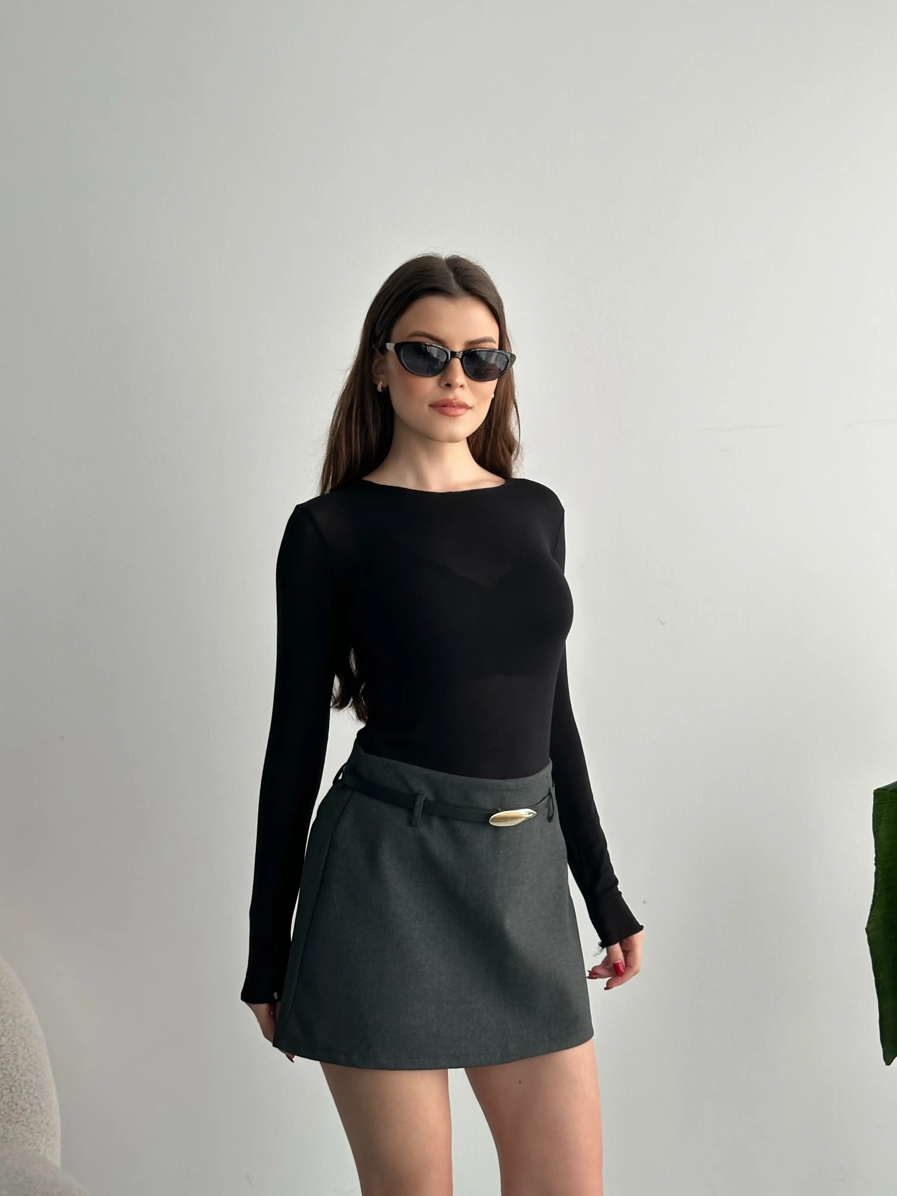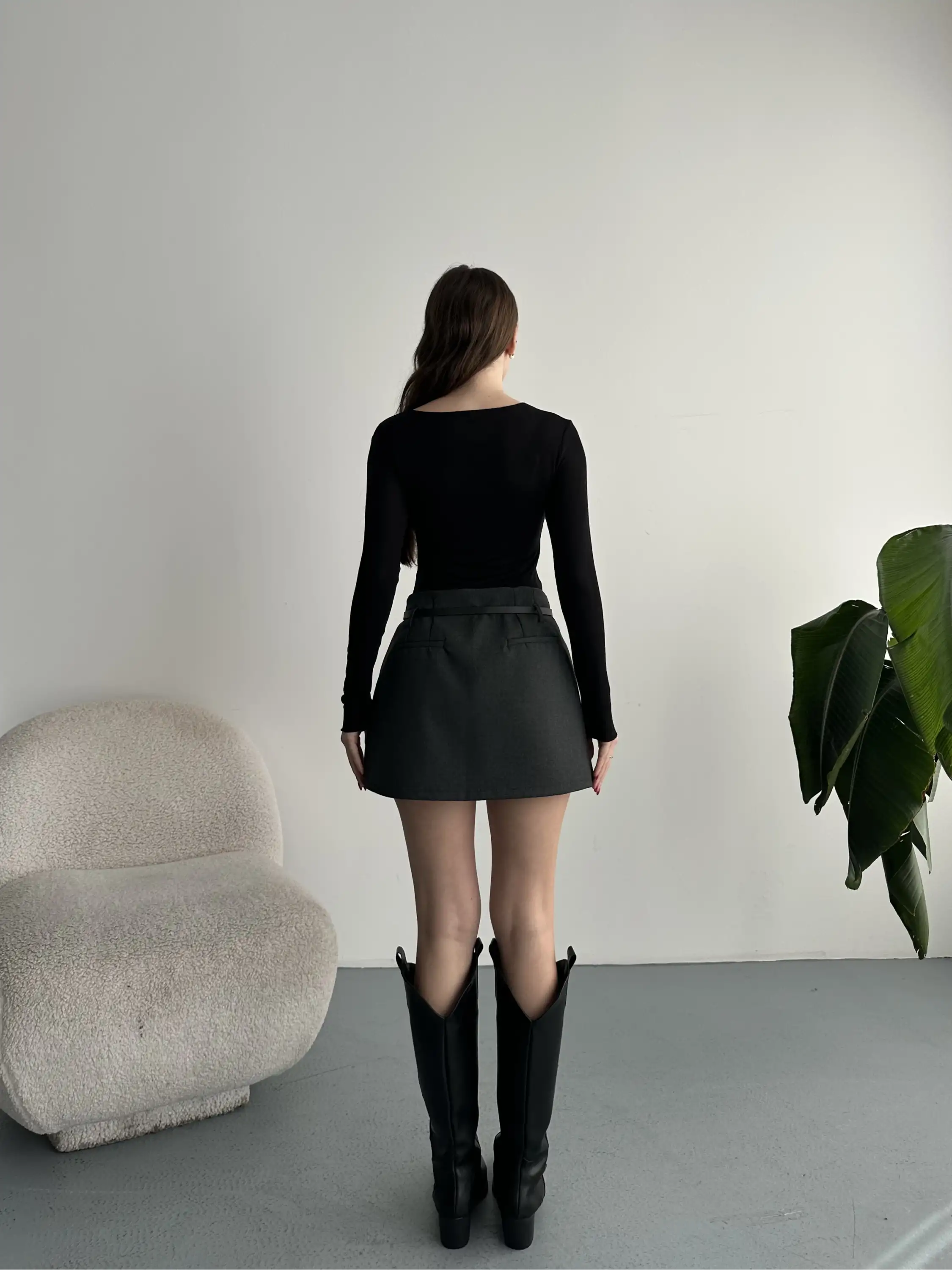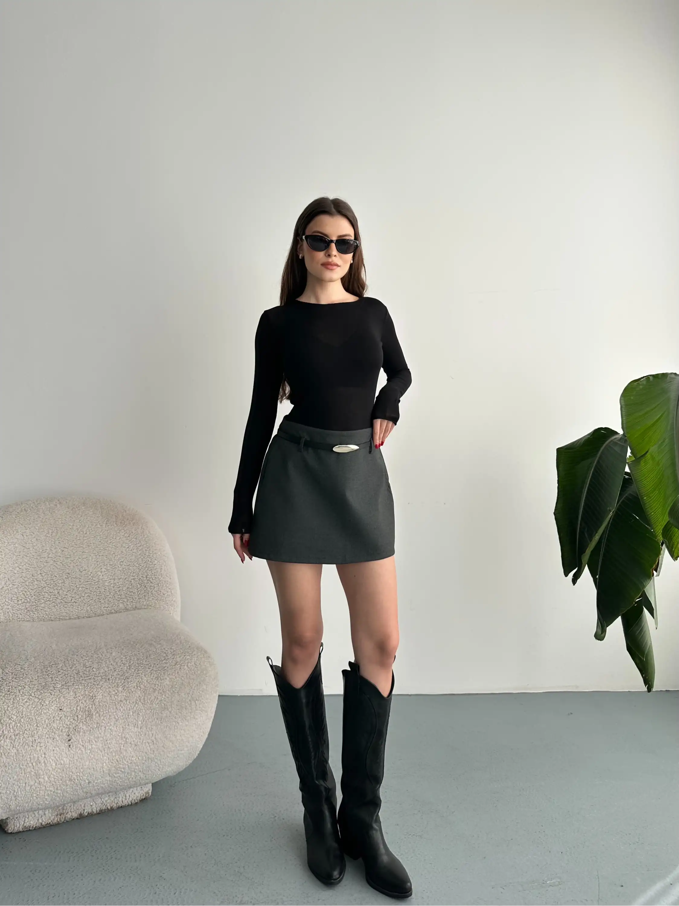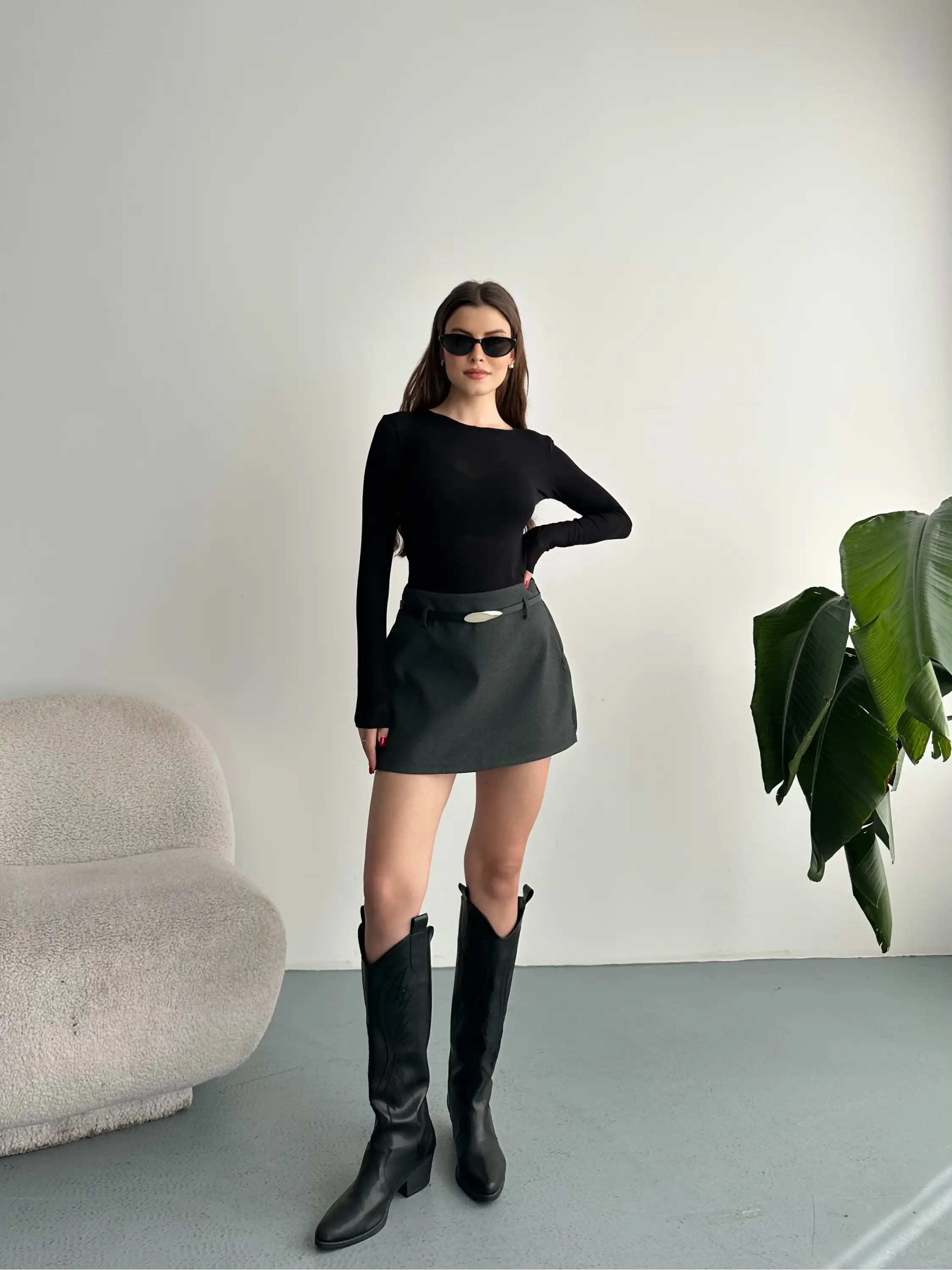 KEMERLİ DESENLİ KAT ETEK-SİYAH