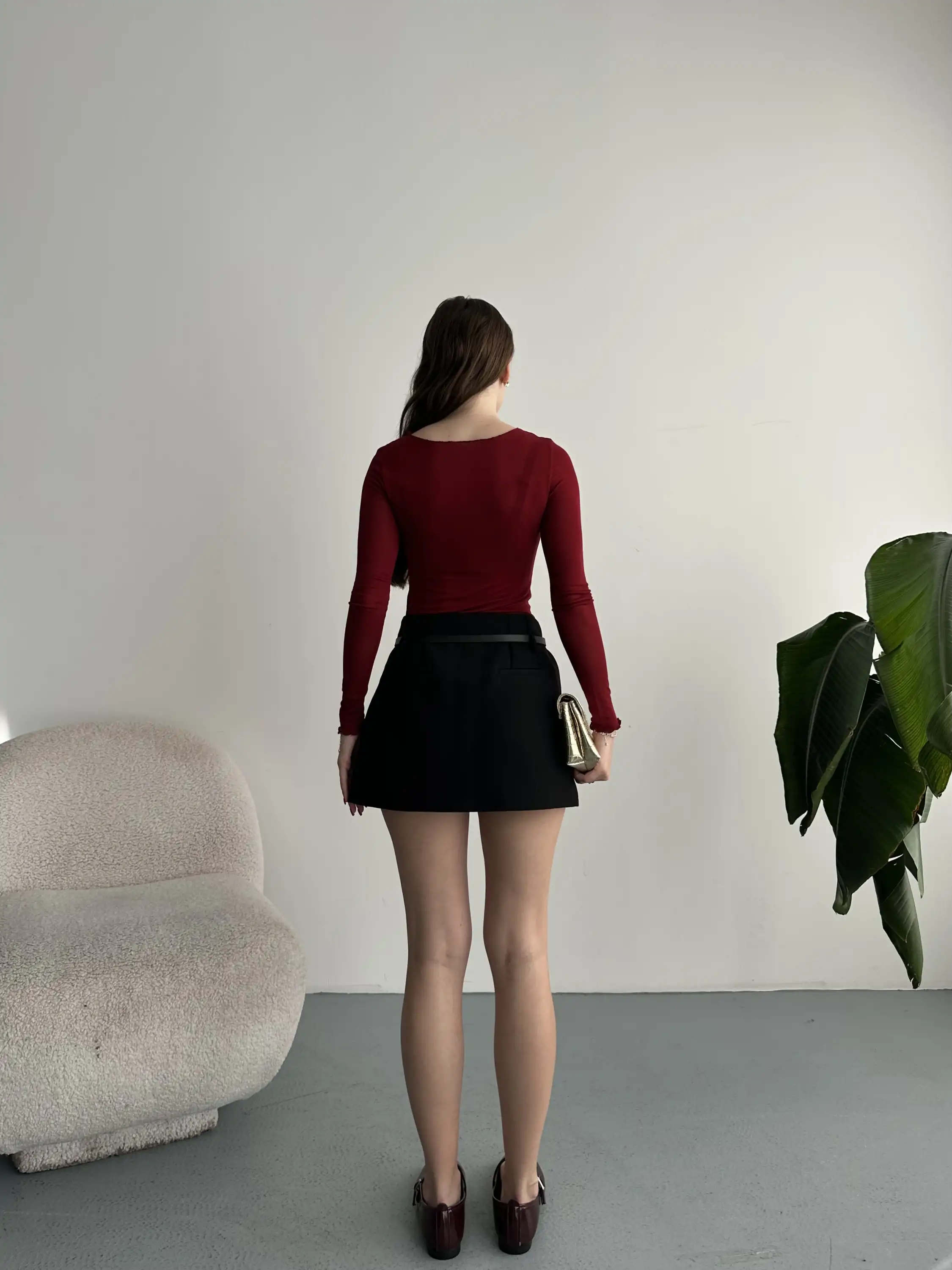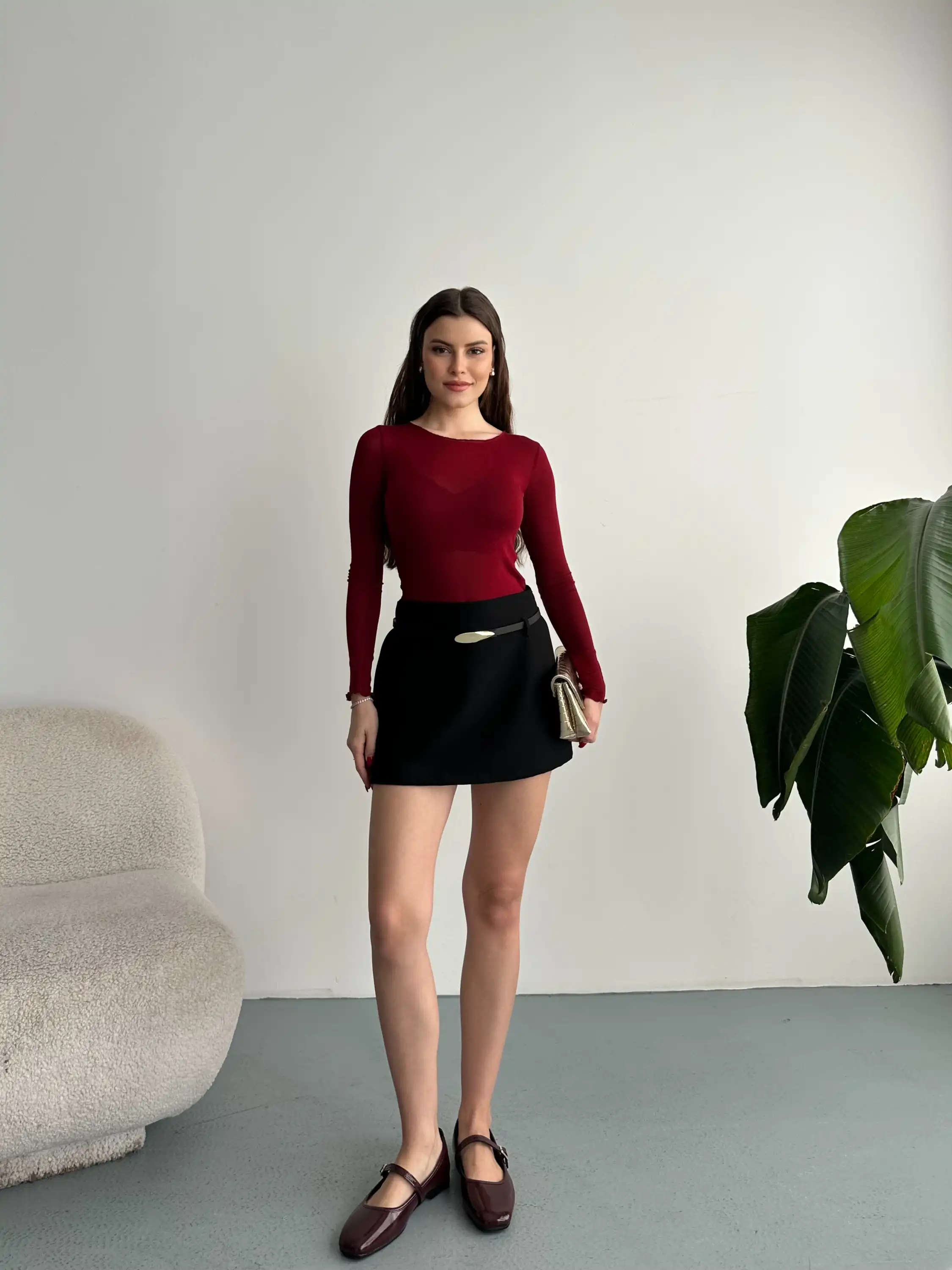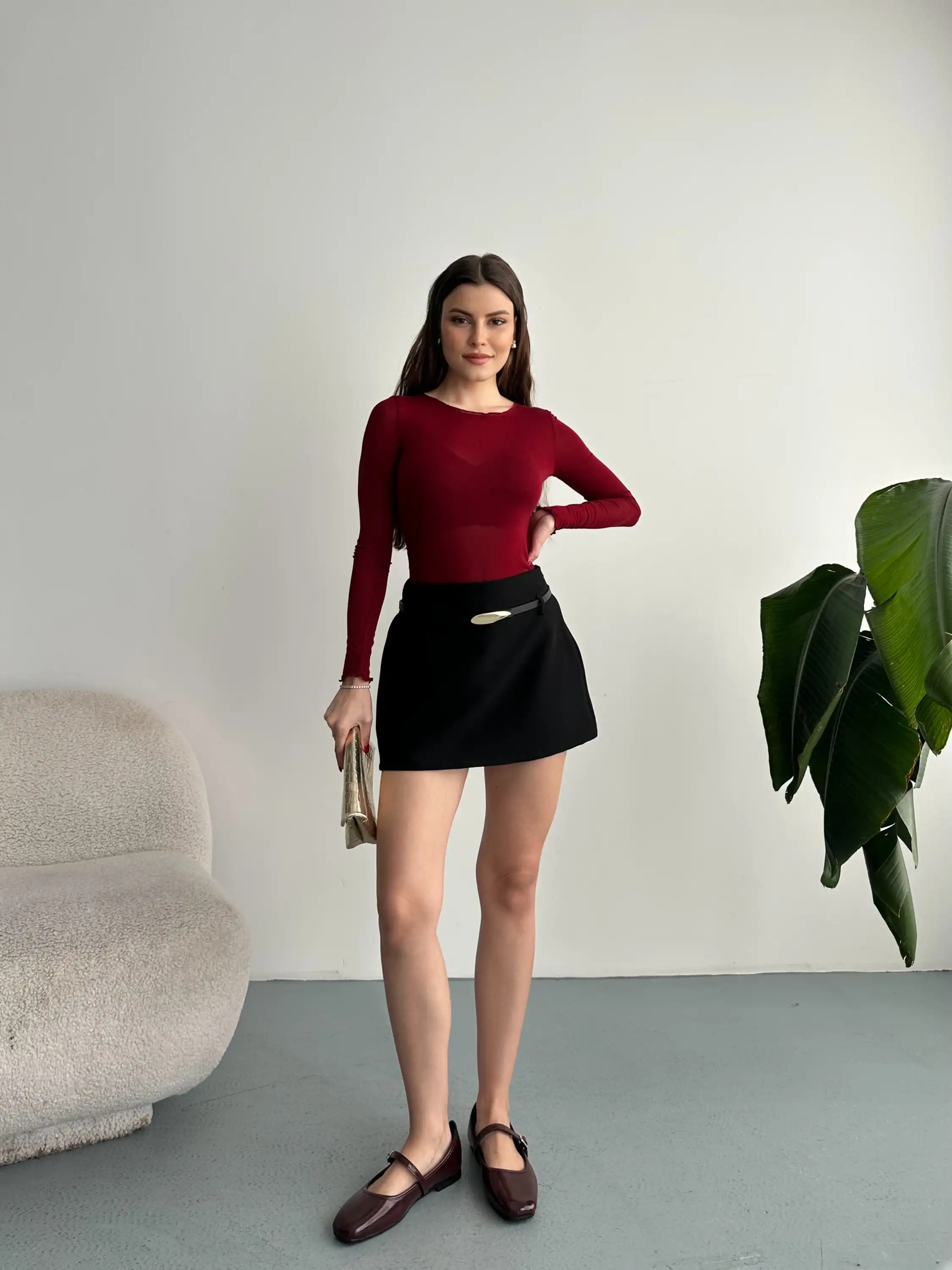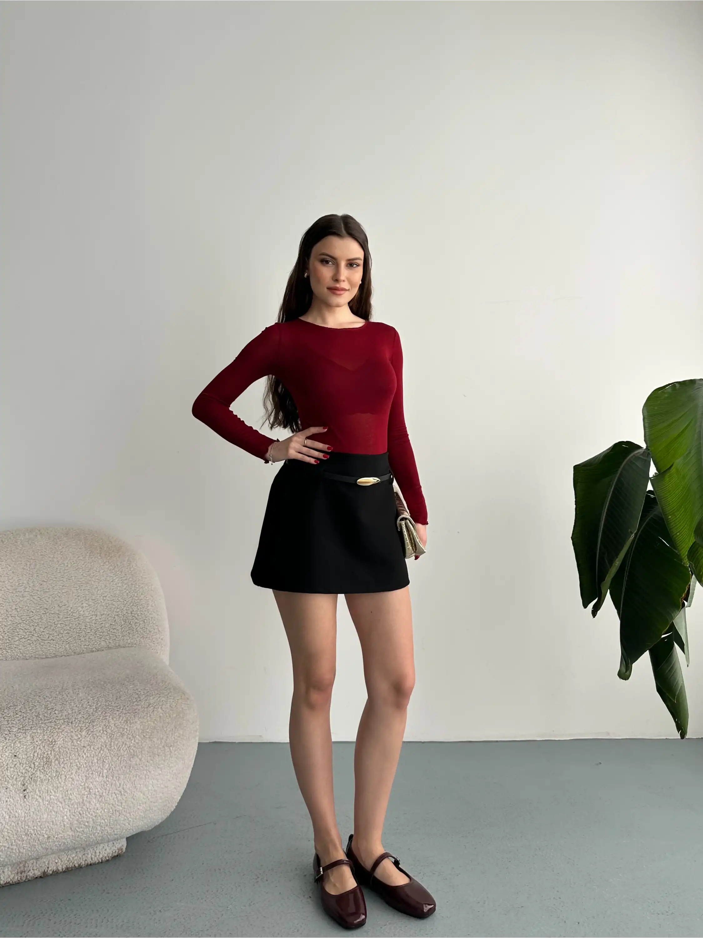 KEMERLİ DESENLİ KAT ETEK-SİYAH