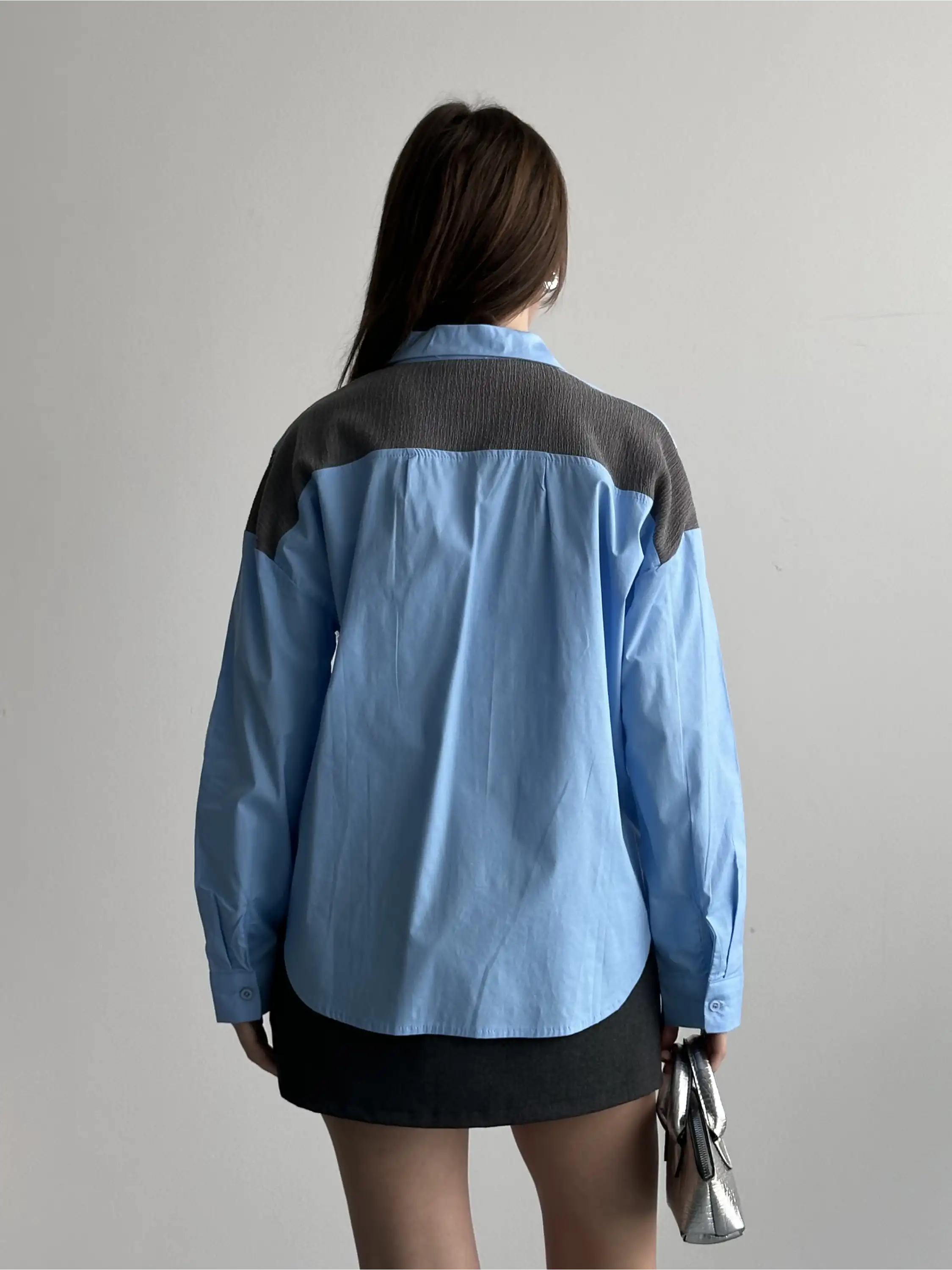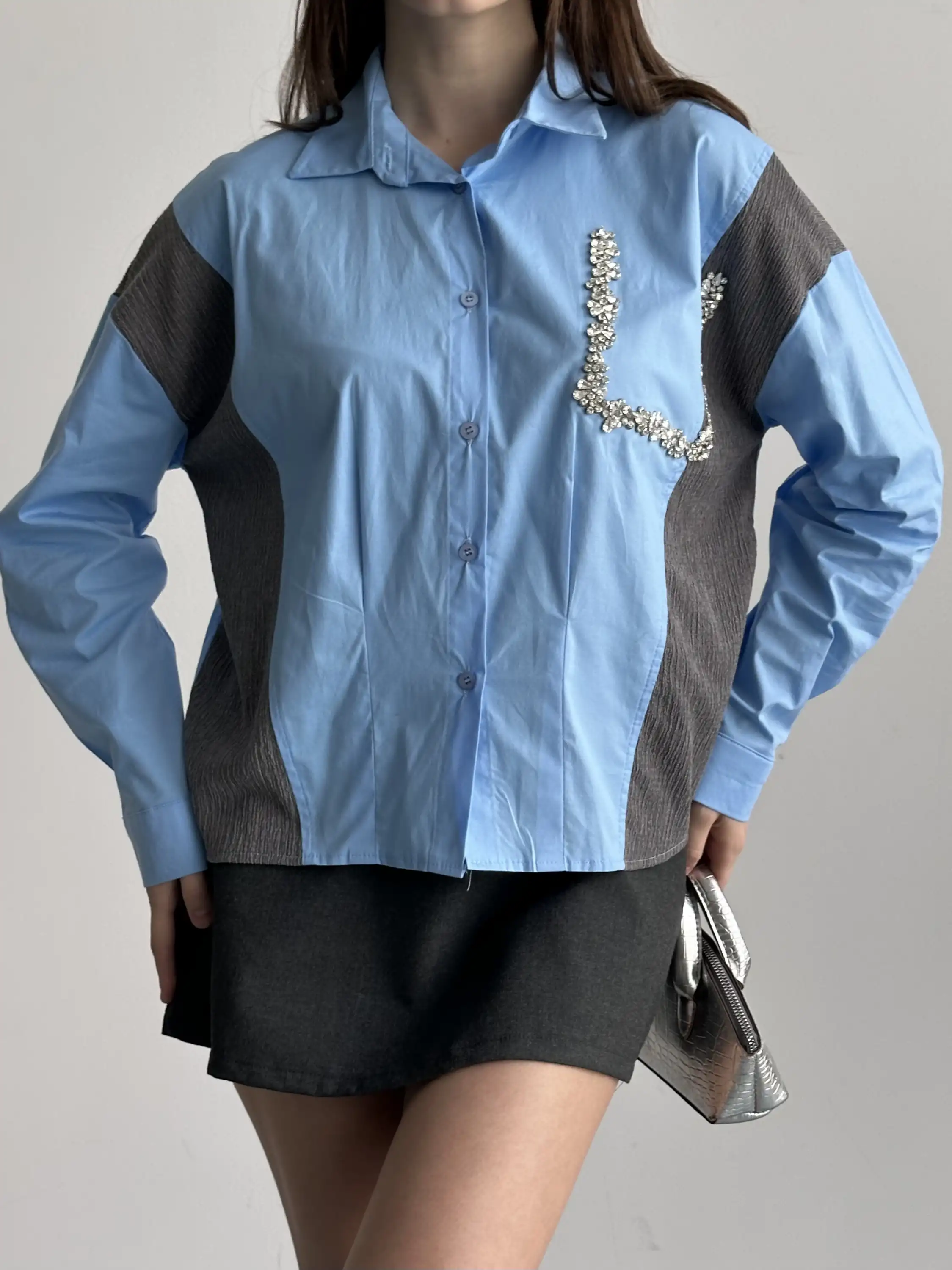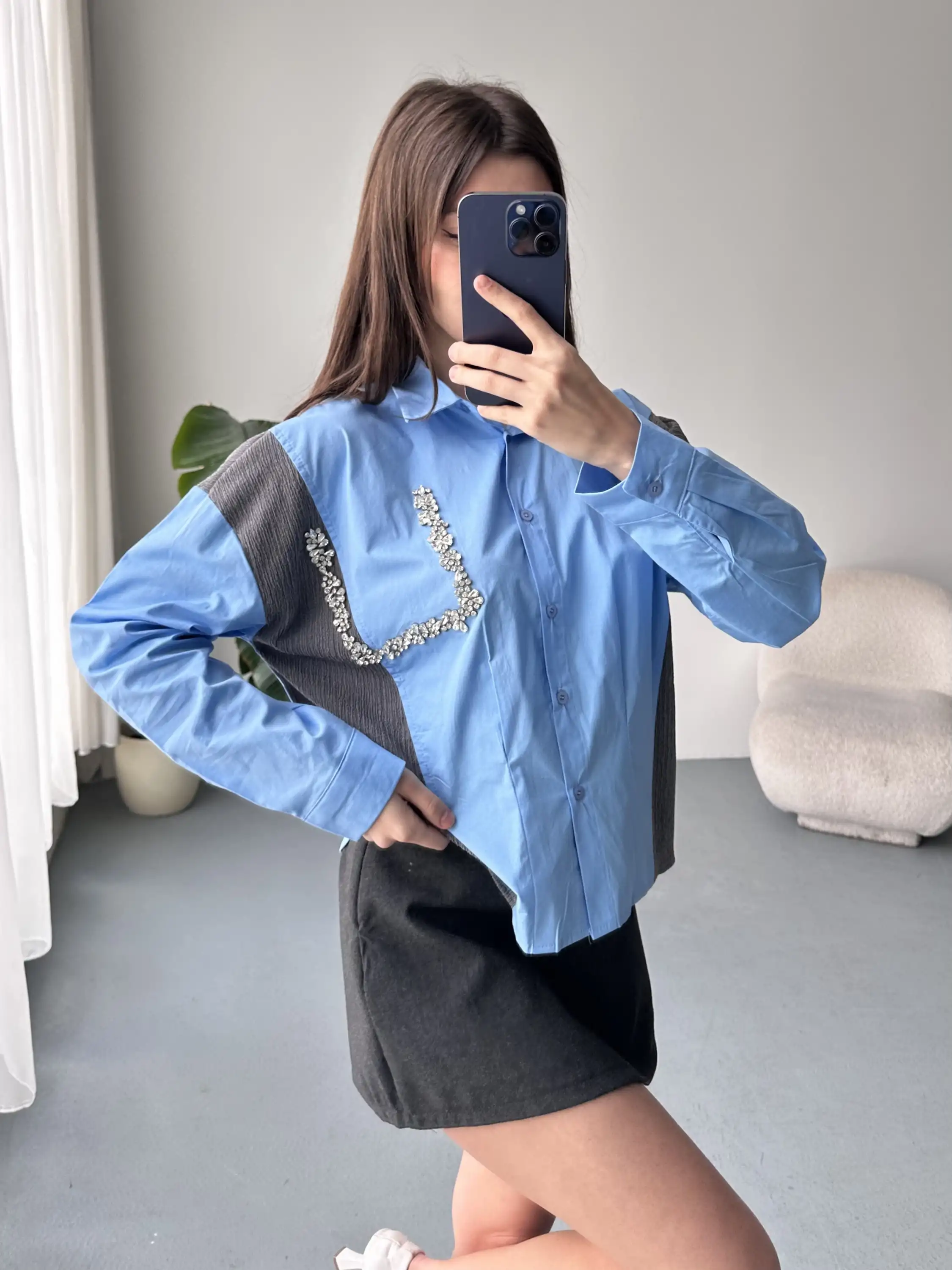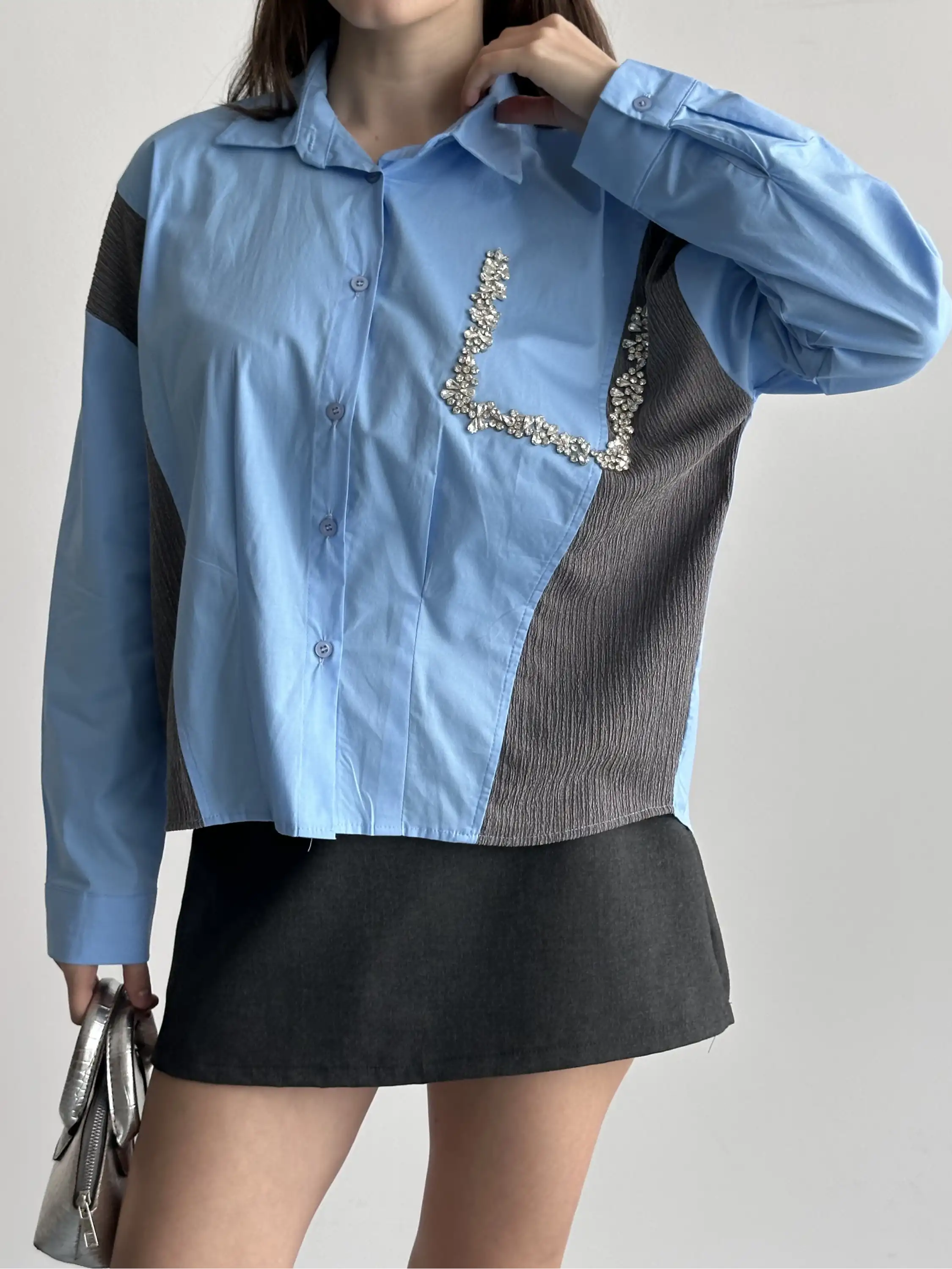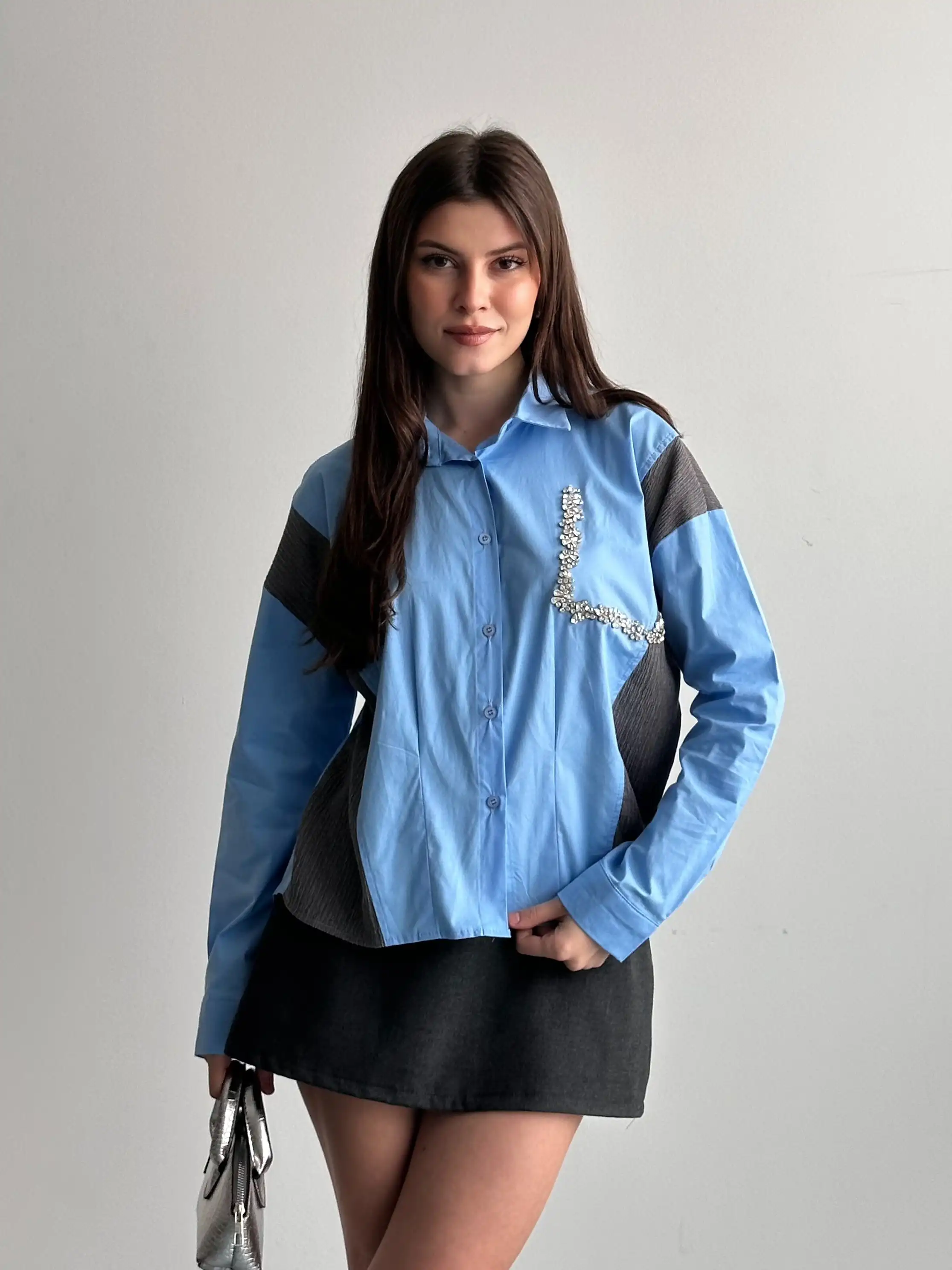 TAŞ DETAYLI TASARIM GÖMLEK-AÇIK MAVİ