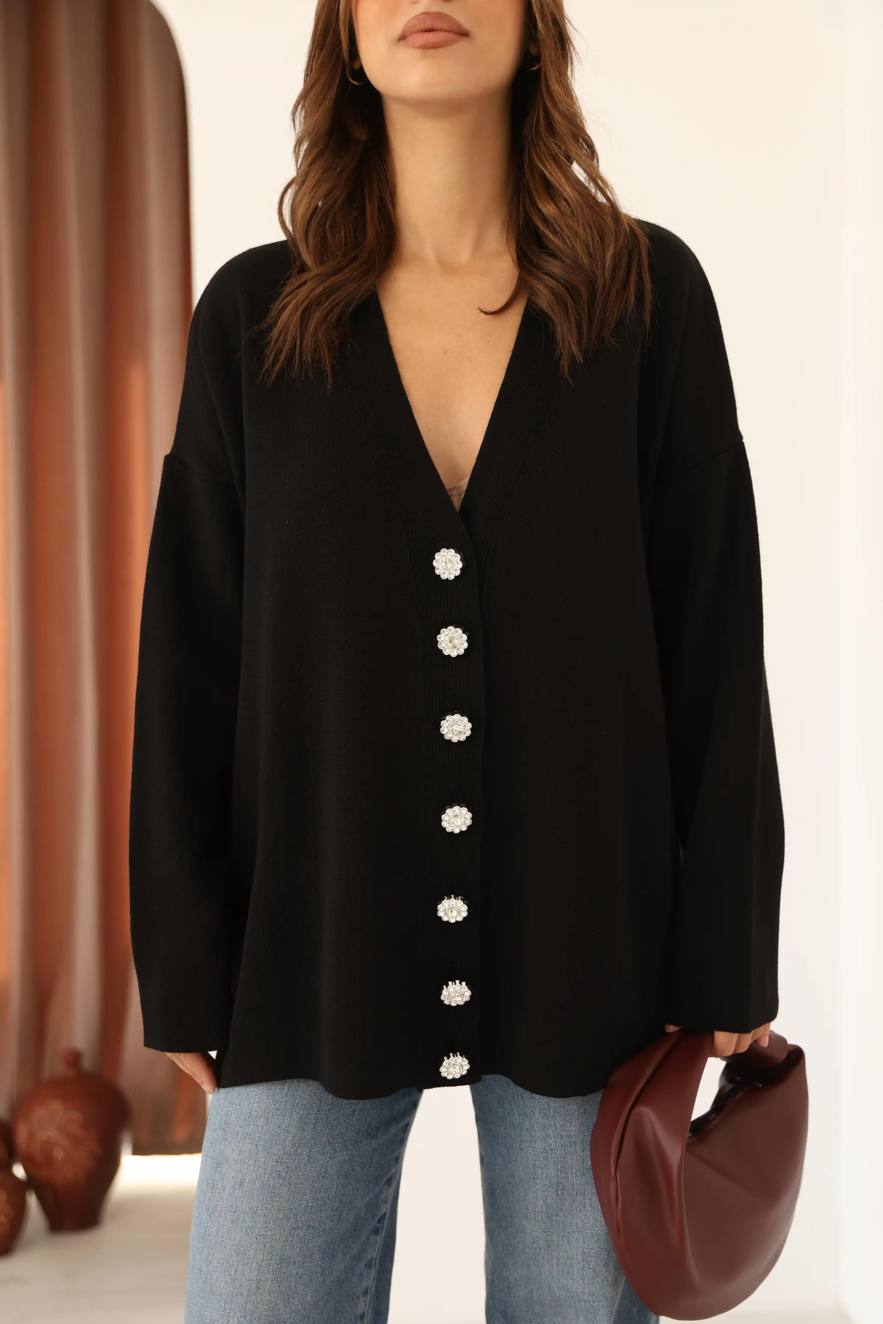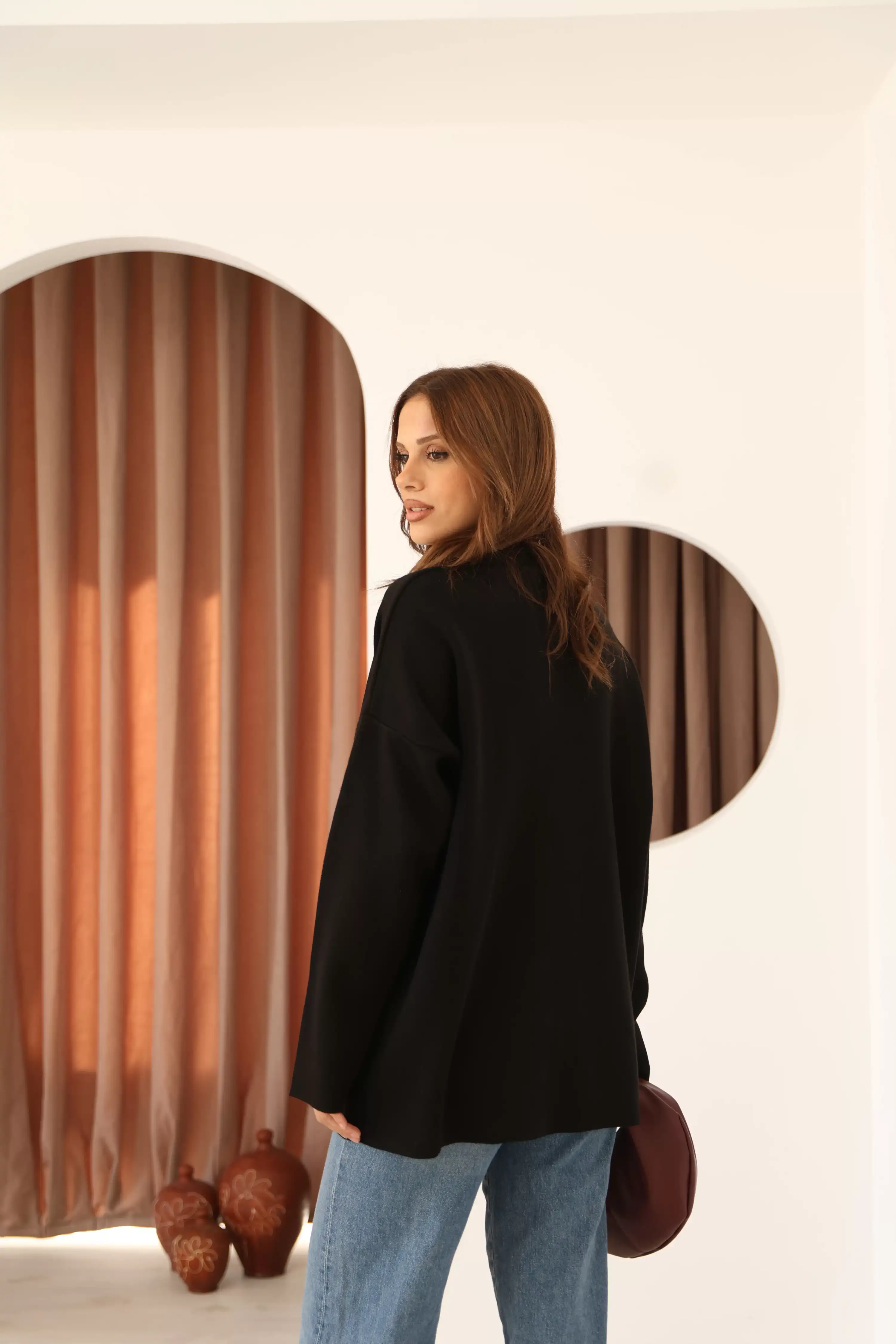 TAŞ DÜĞMELİ OVERSİZE HIRKA-SİYAH
