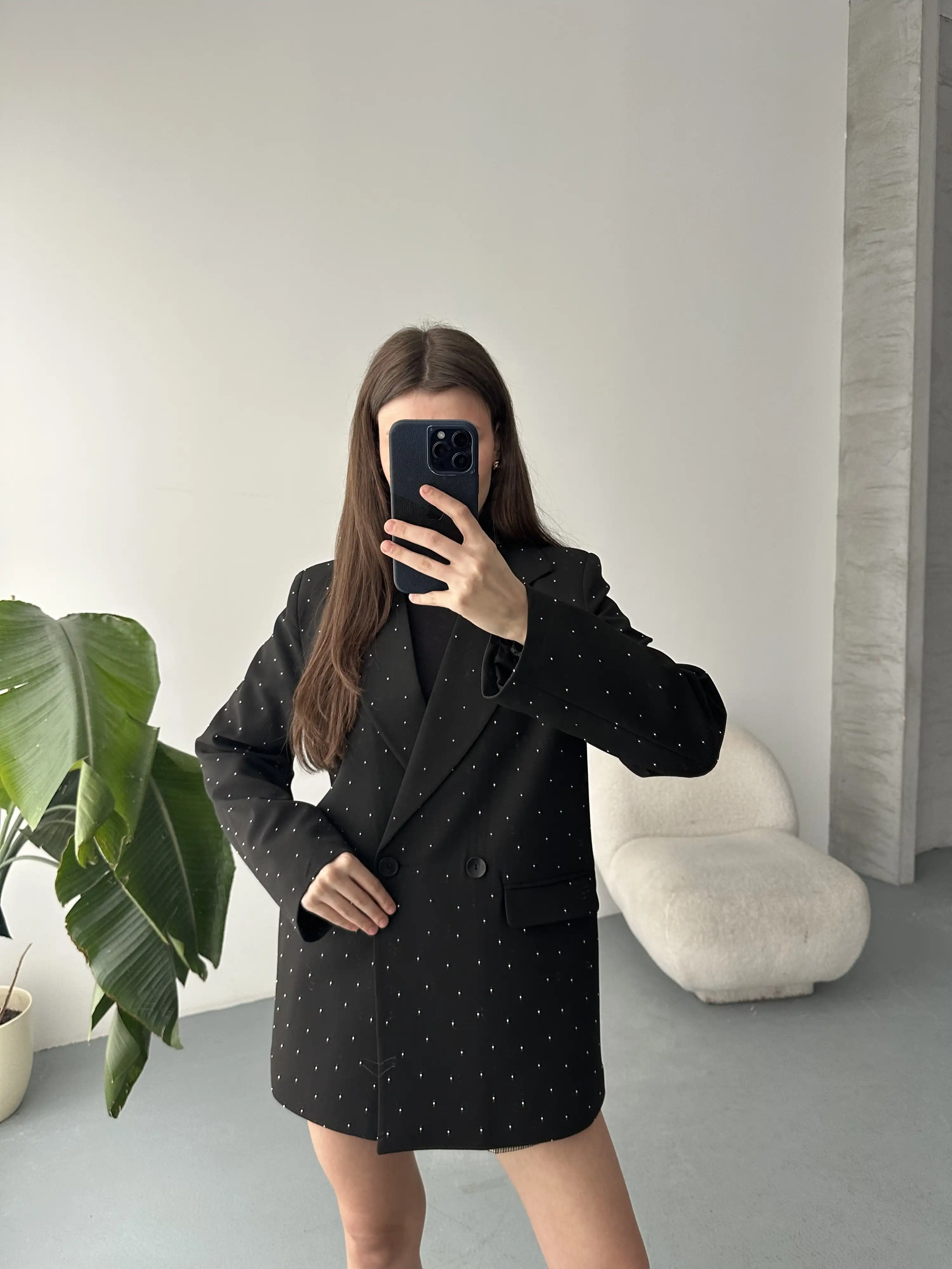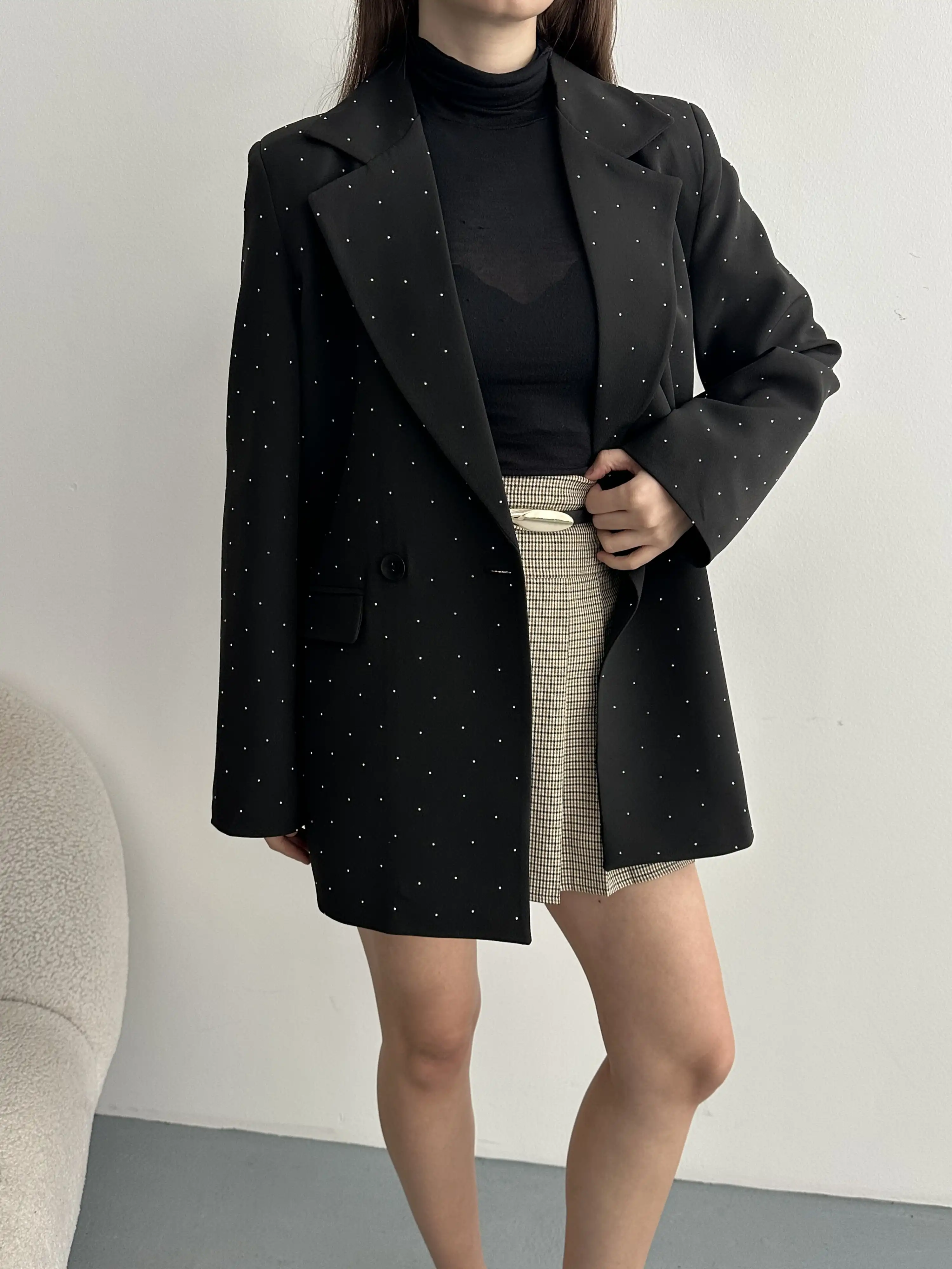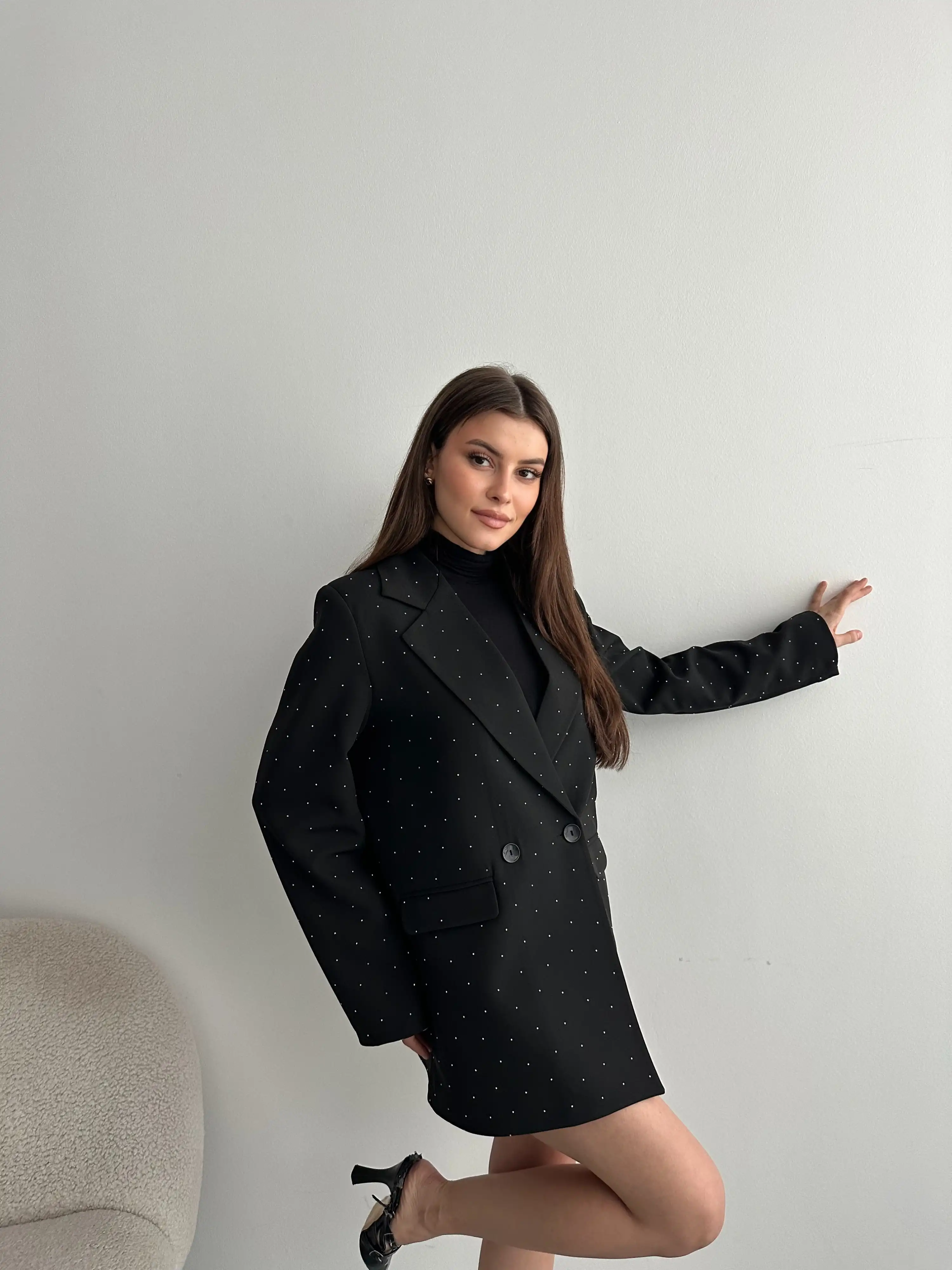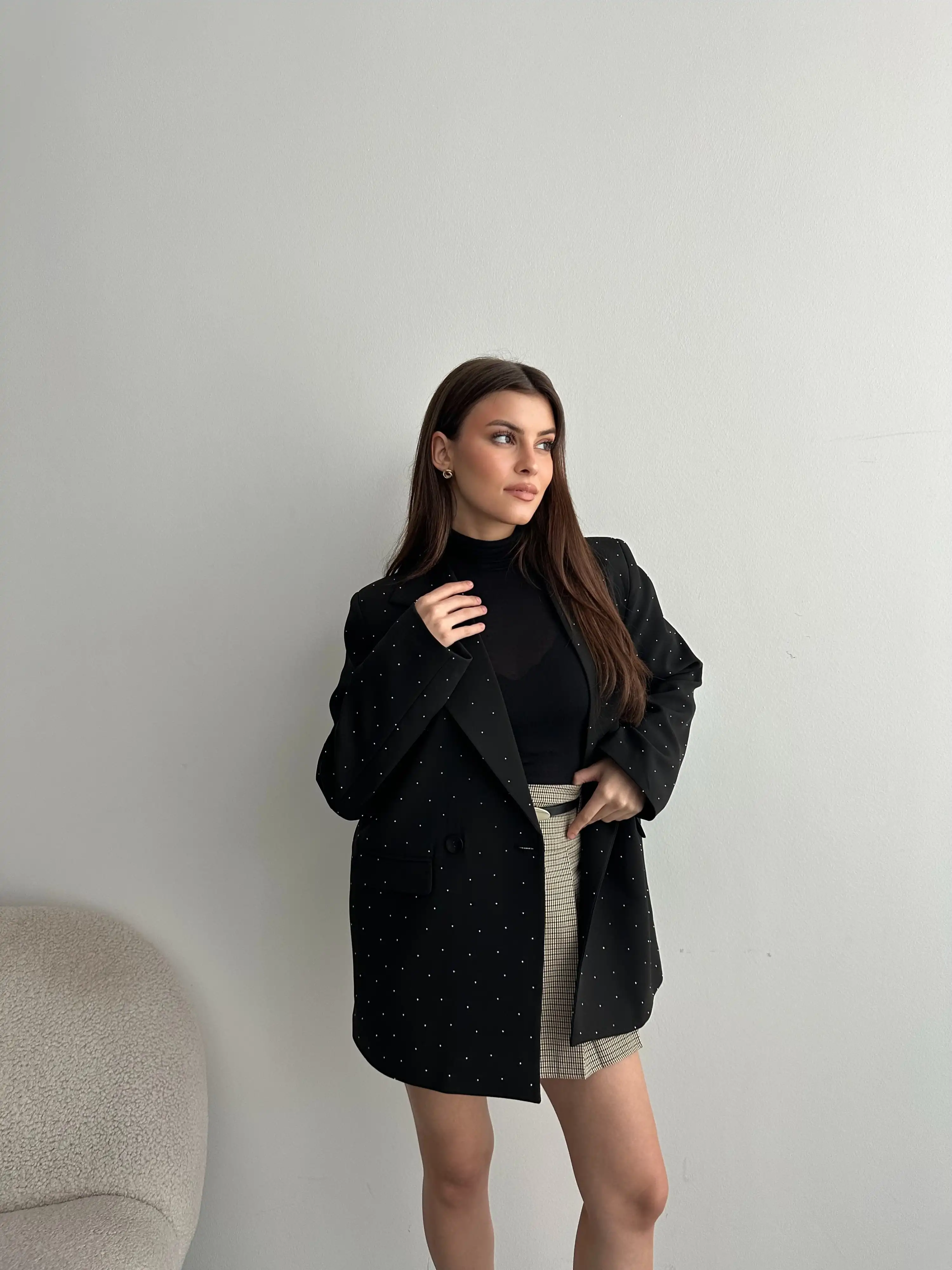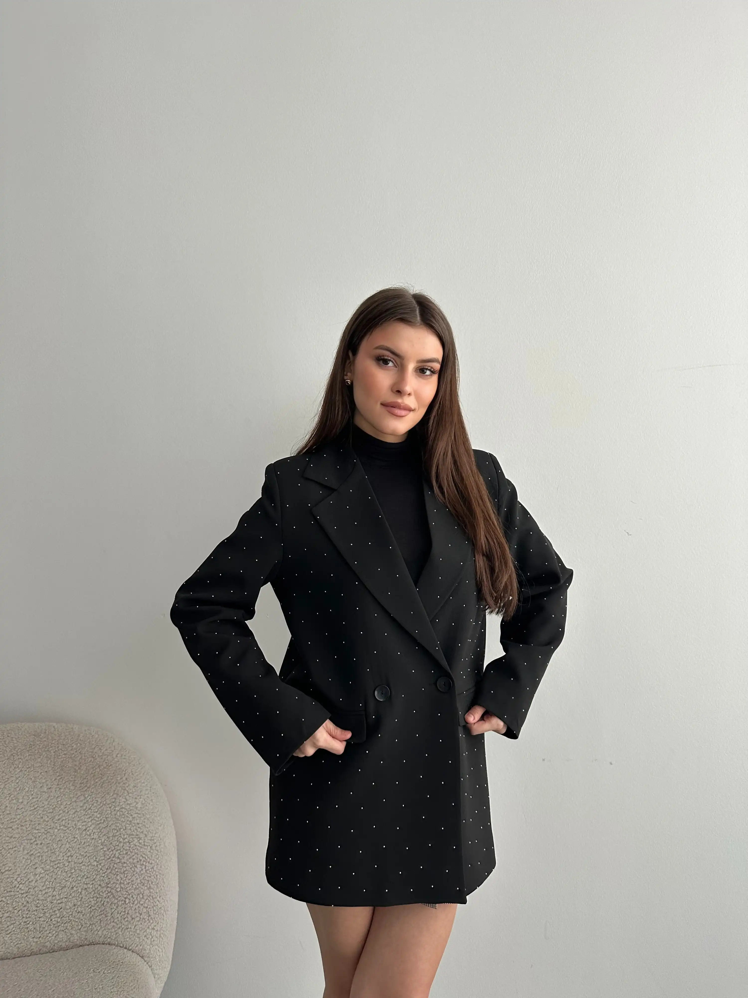 TAŞ İŞLEMELİ ASTARLI BLAZER CEKET-SİYAH