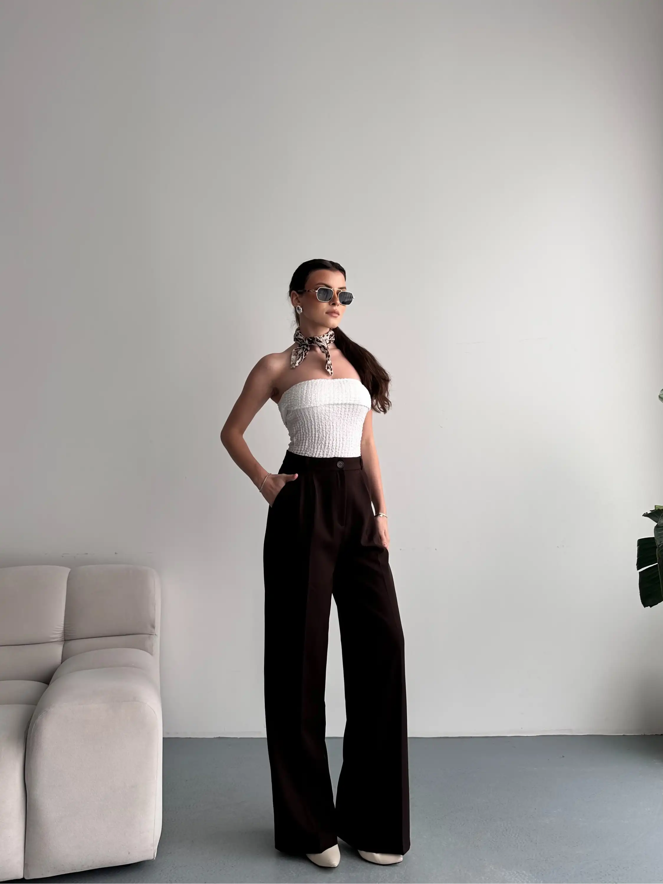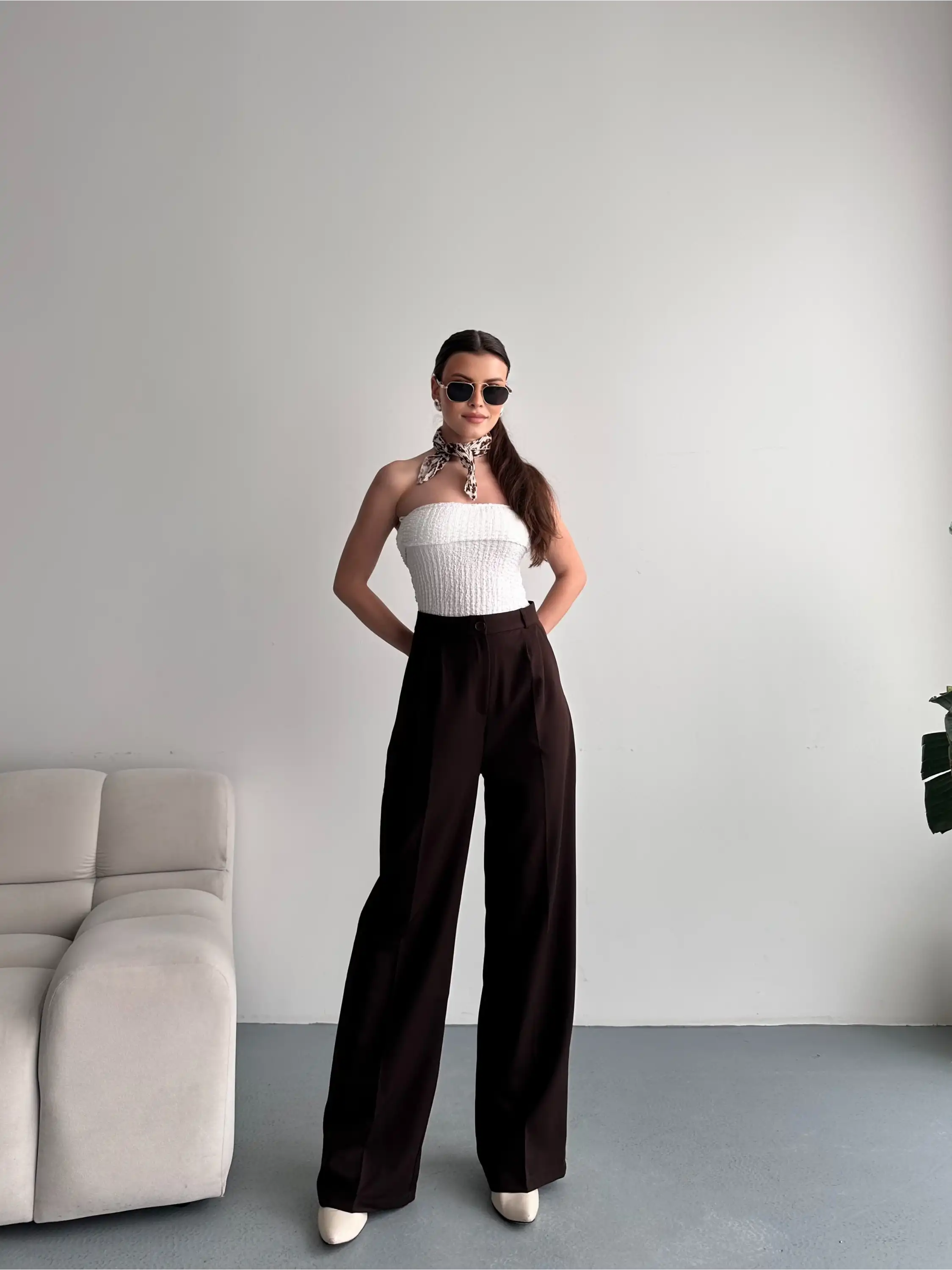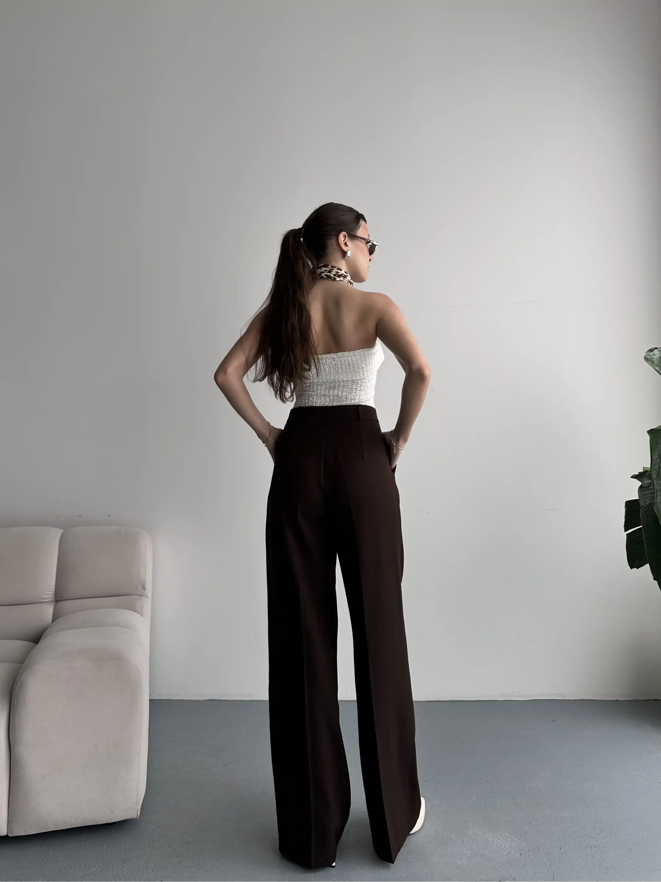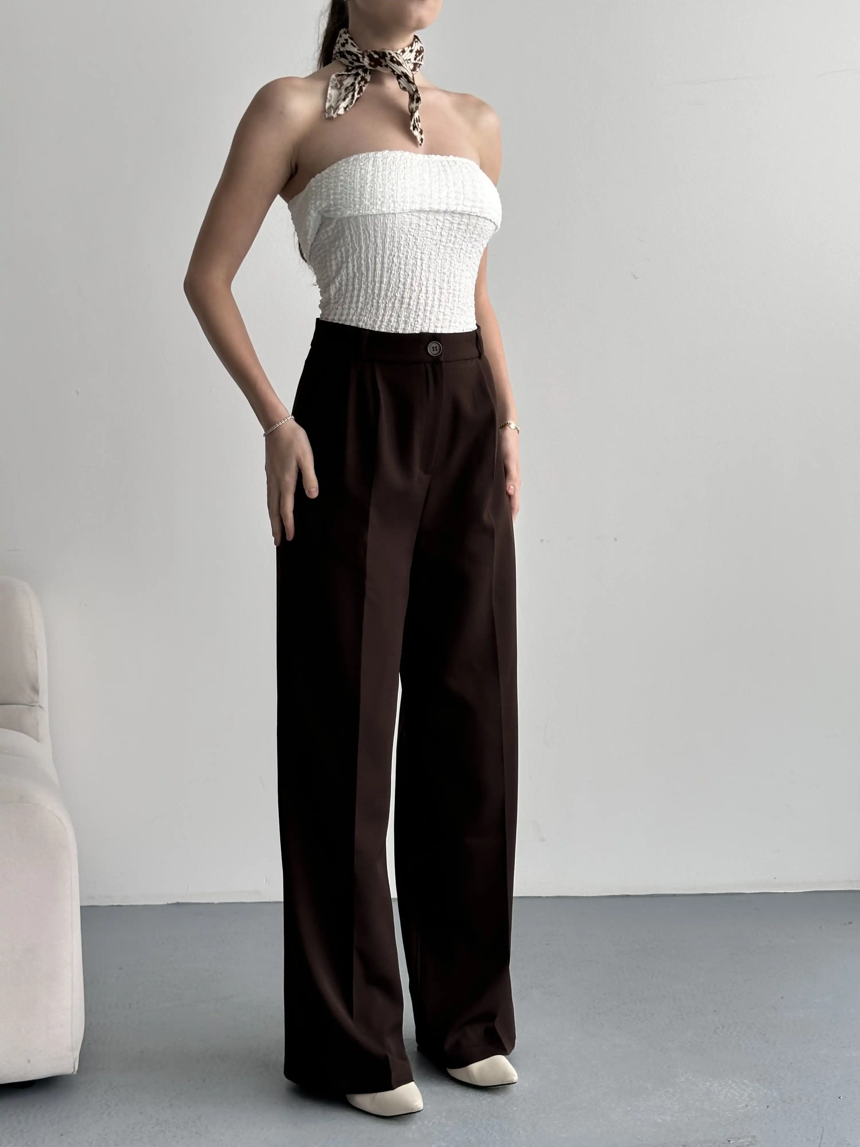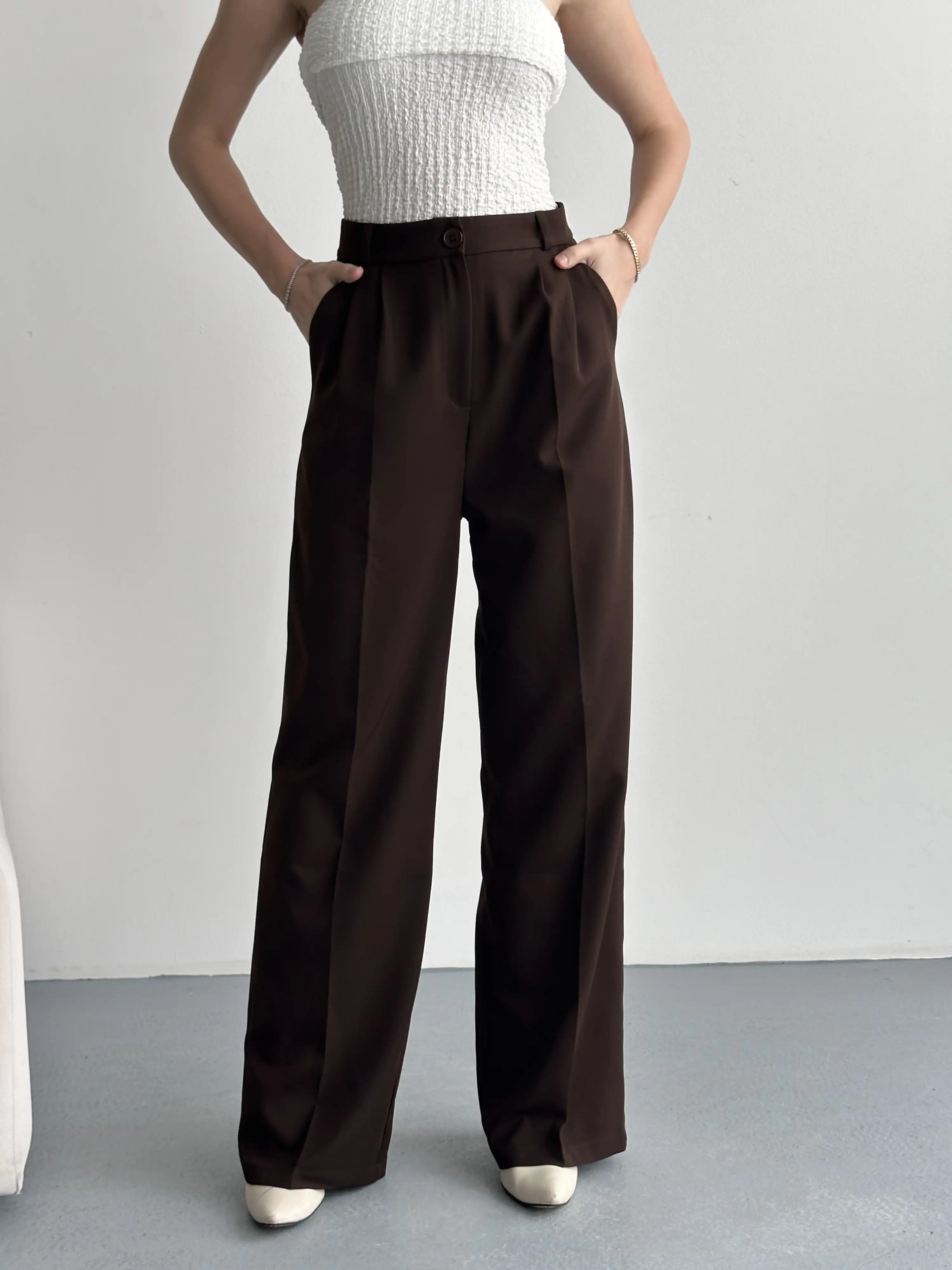 TEK DÜĞMELİ PALAZZO PANTOLON-KAHVE