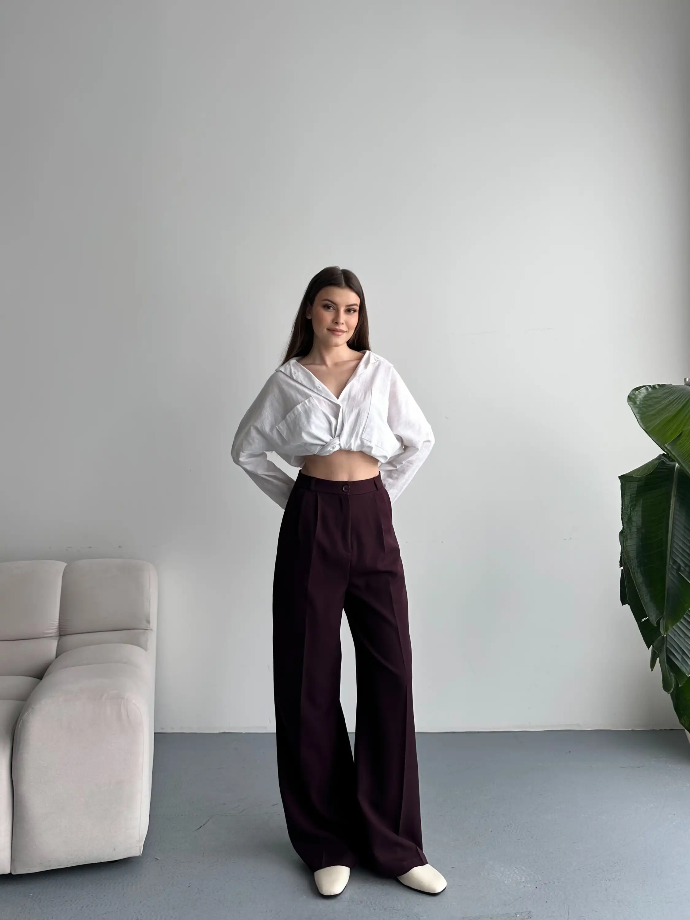 Model Bilgileri: 1.70 cm 53 kg Göğüs: 85 cm Bel: 60 cm Basen: 85 cm Çekimde S-36 beden kullanılmıştır