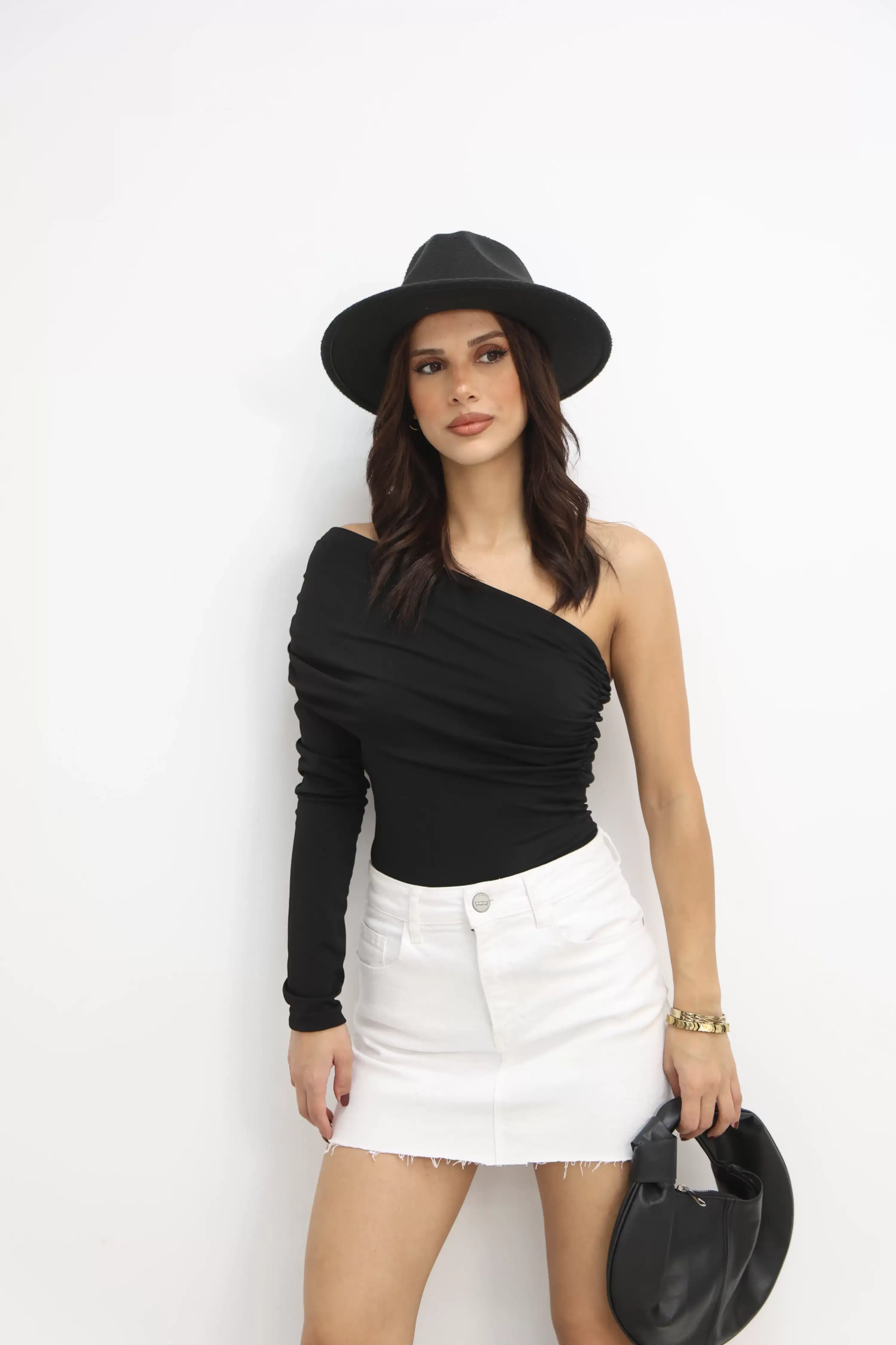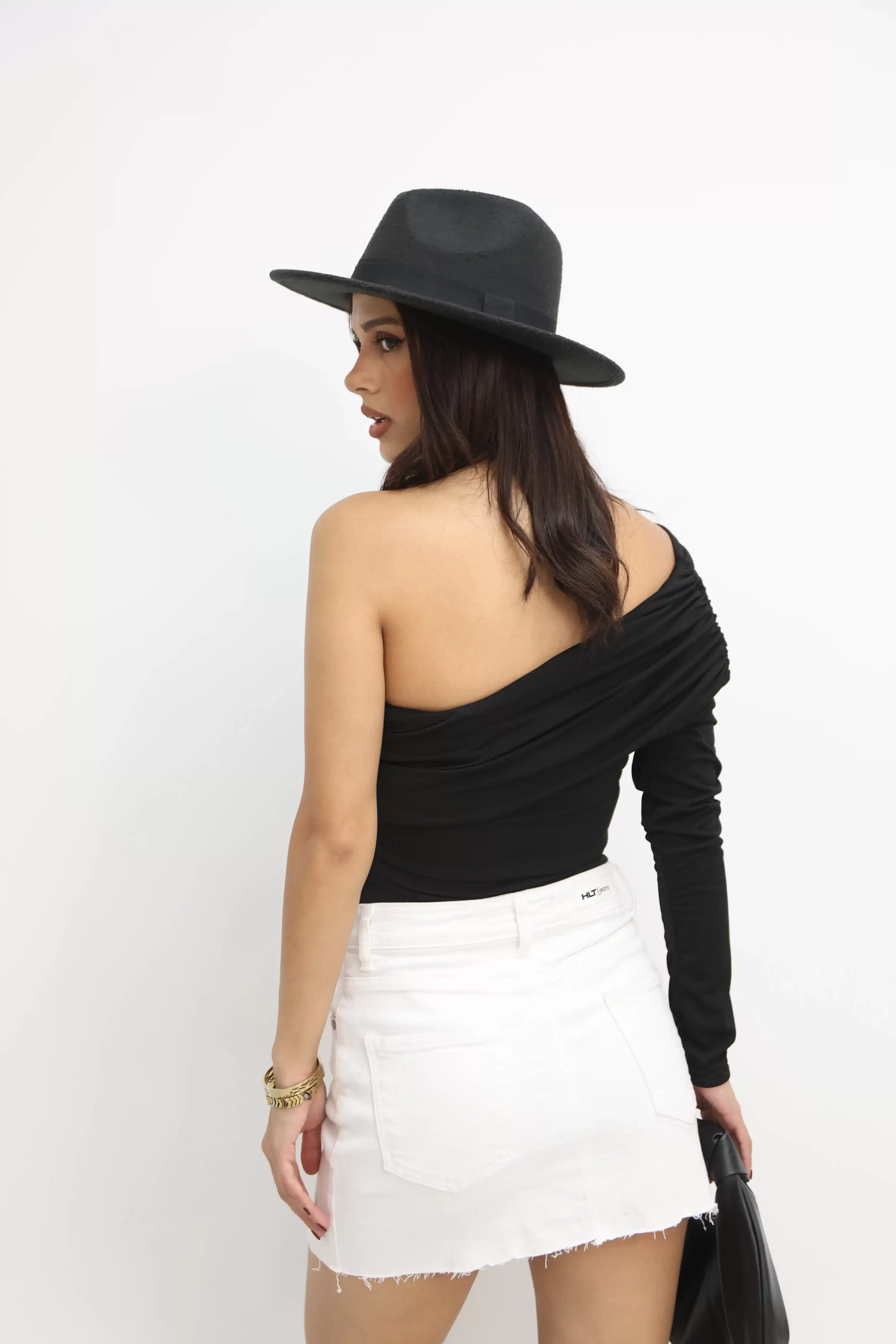 TEK OMUZ SANDY BODYSUİT-SİYAH