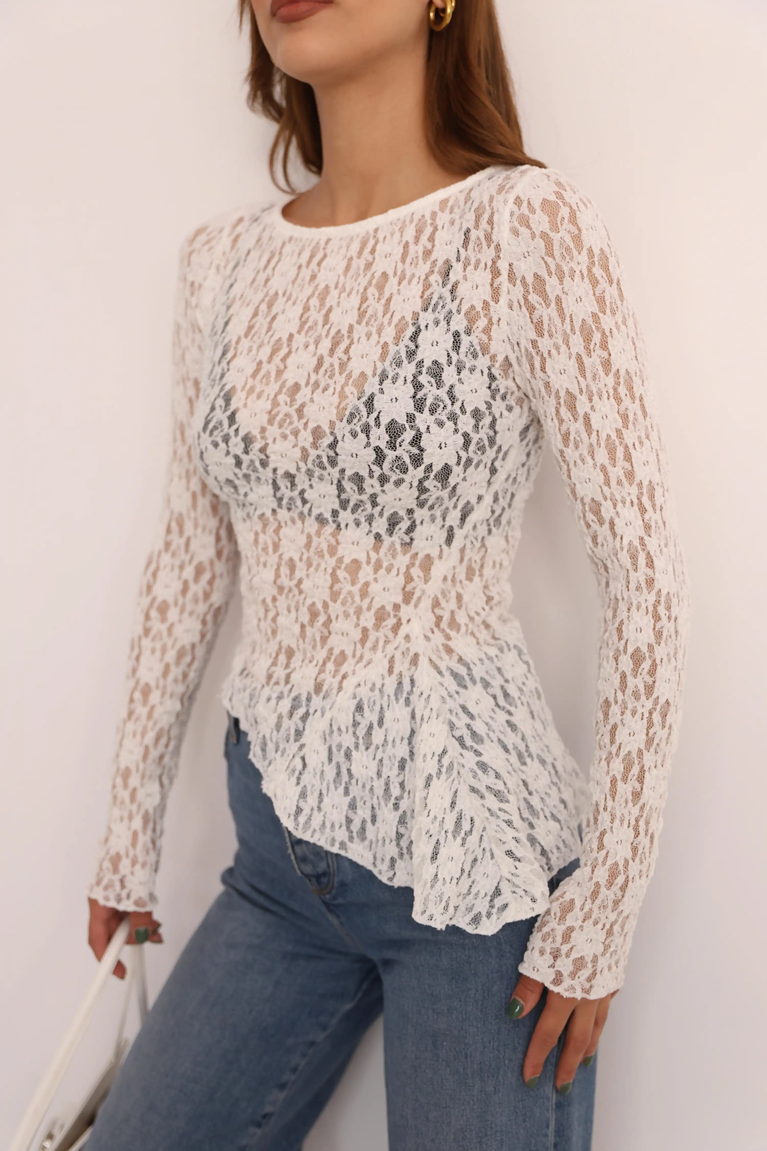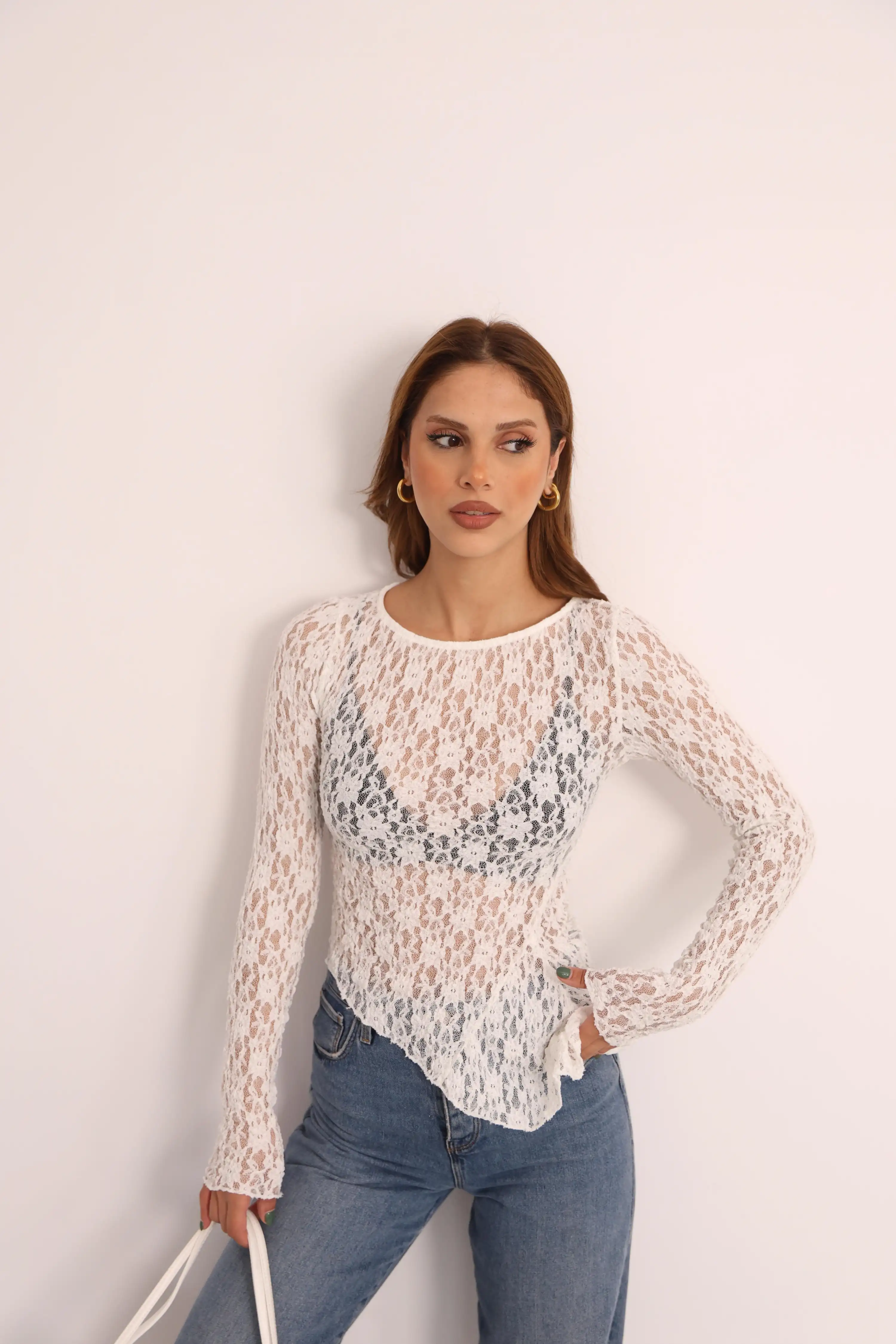 TRANSPARAN GÜPÜRLÜ BLUZ-BEYAZ