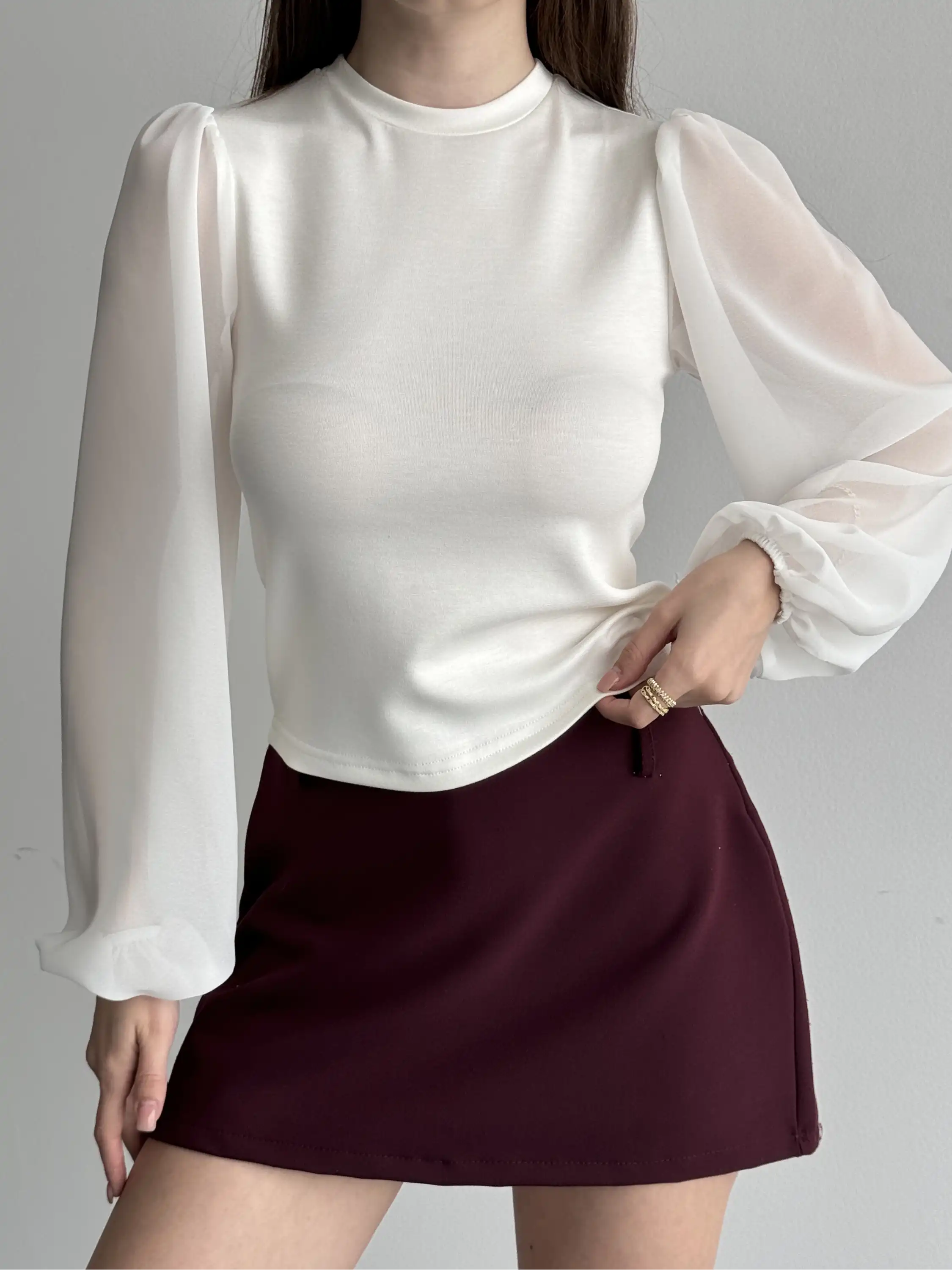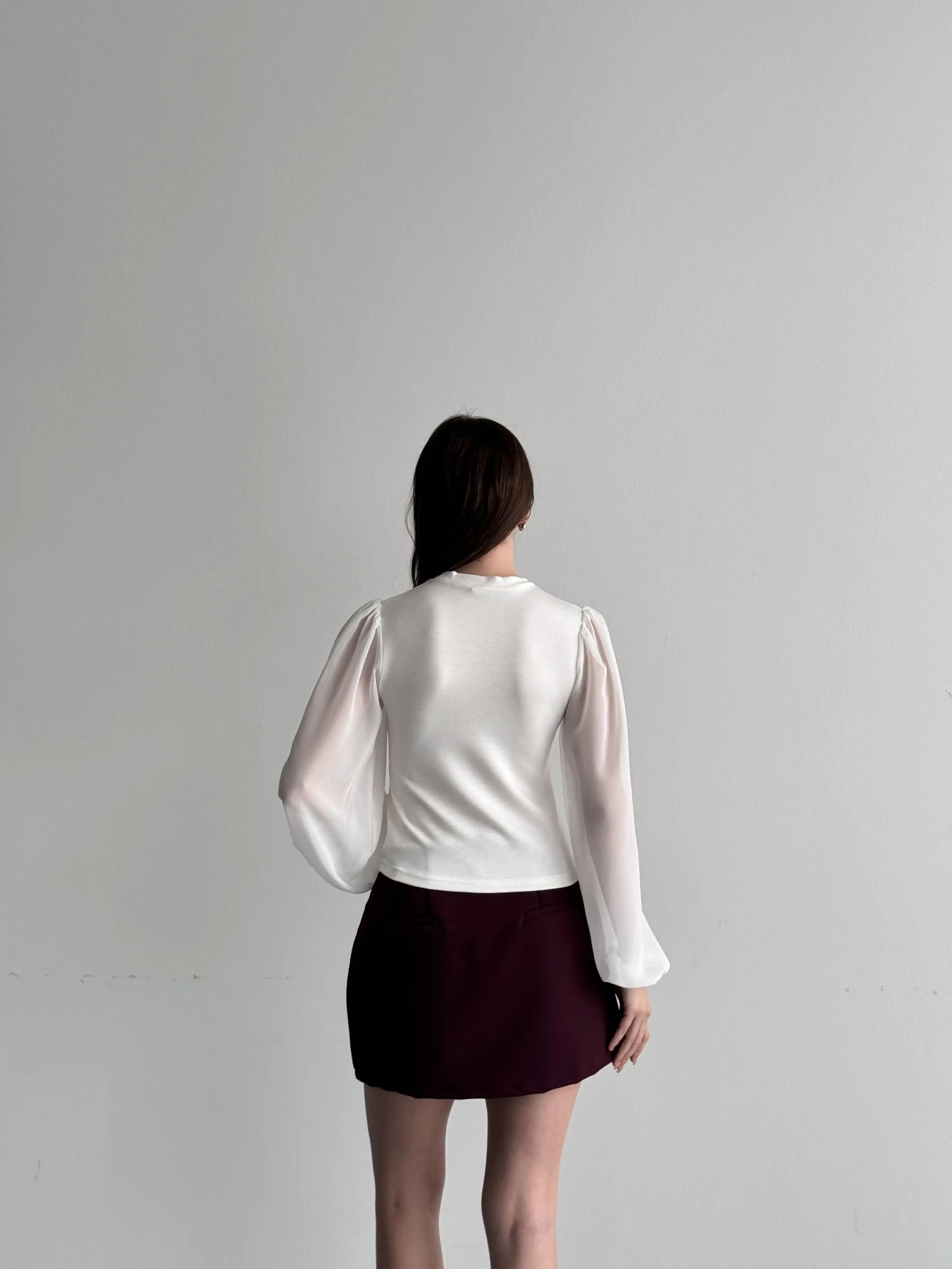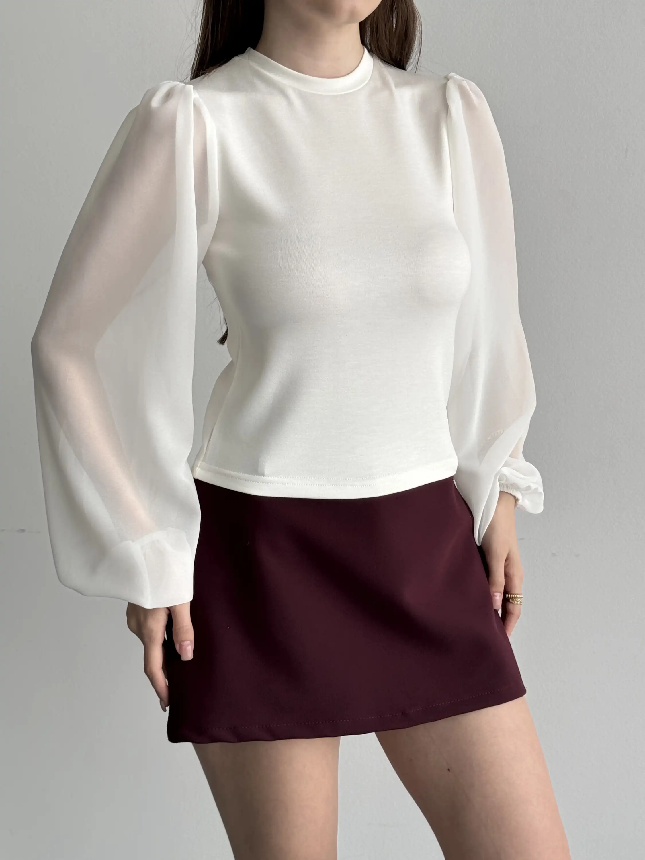 TÜL KOL PENYE BLUZ-BEYAZ