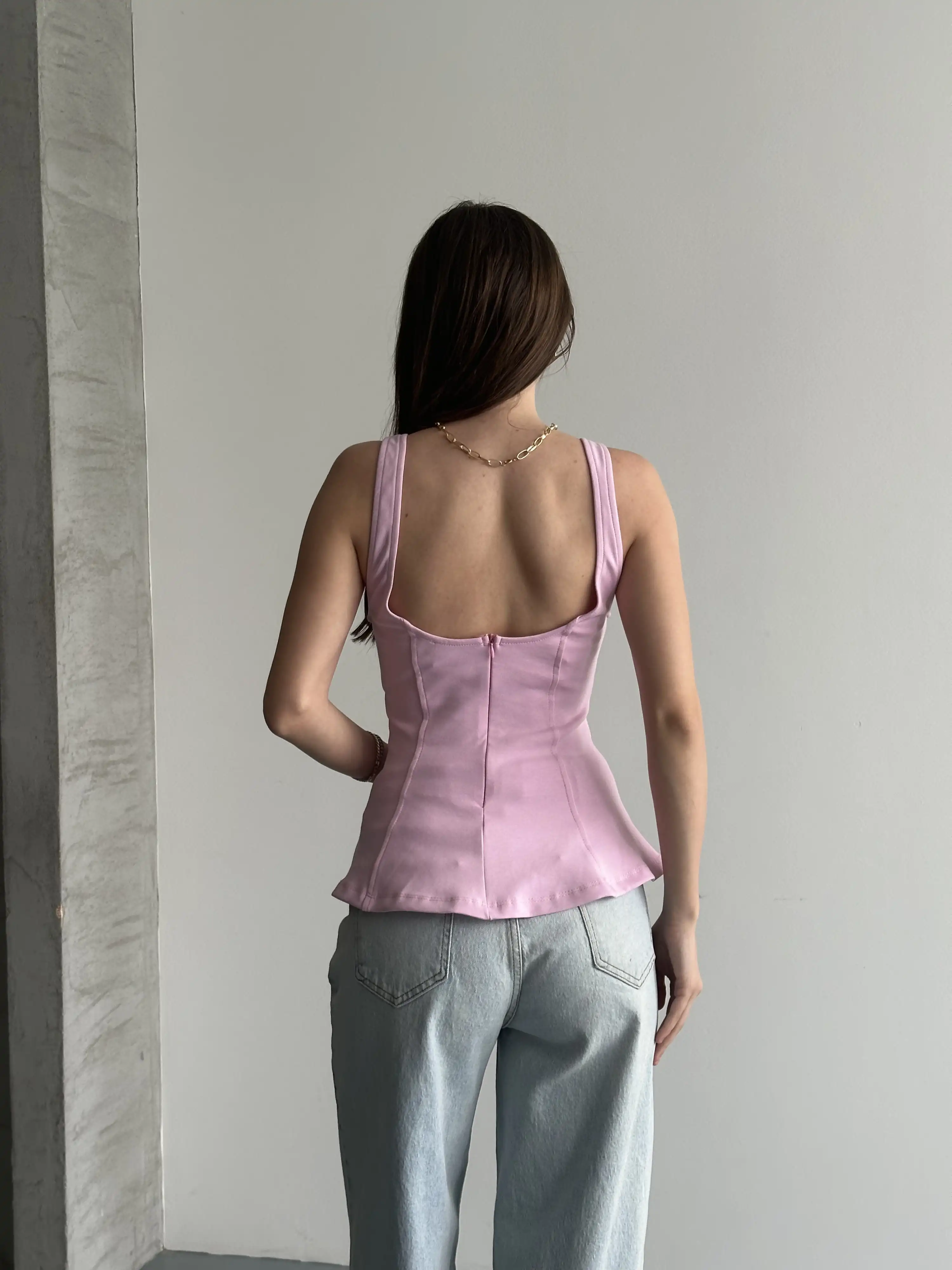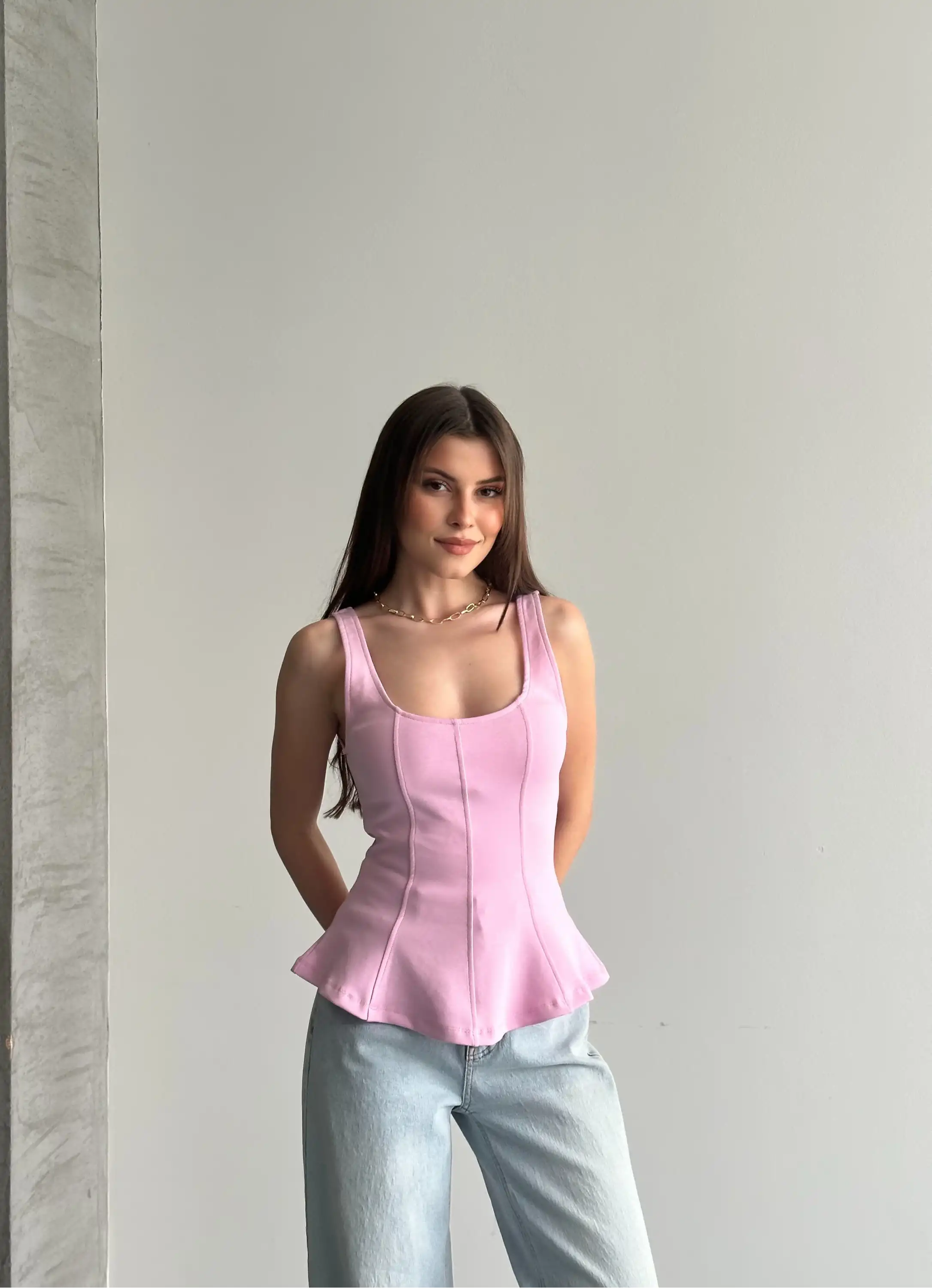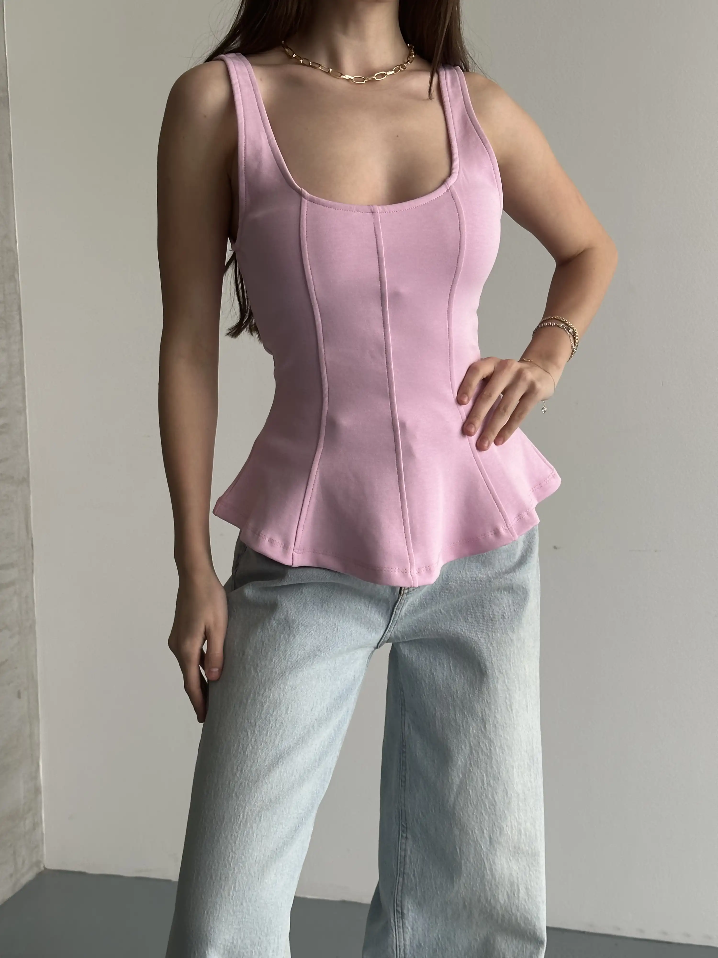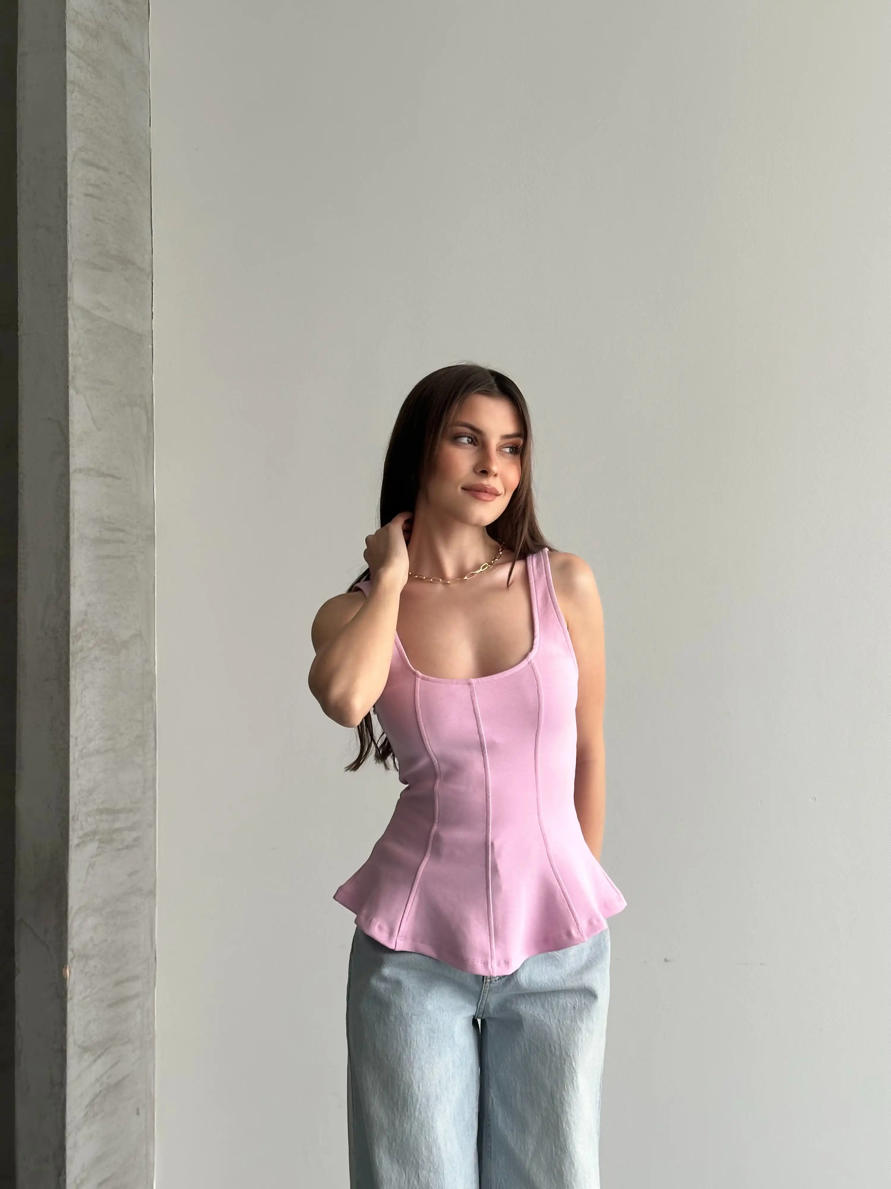 U YAKA ASKILI VOLANLI BLUZ-PEMBE