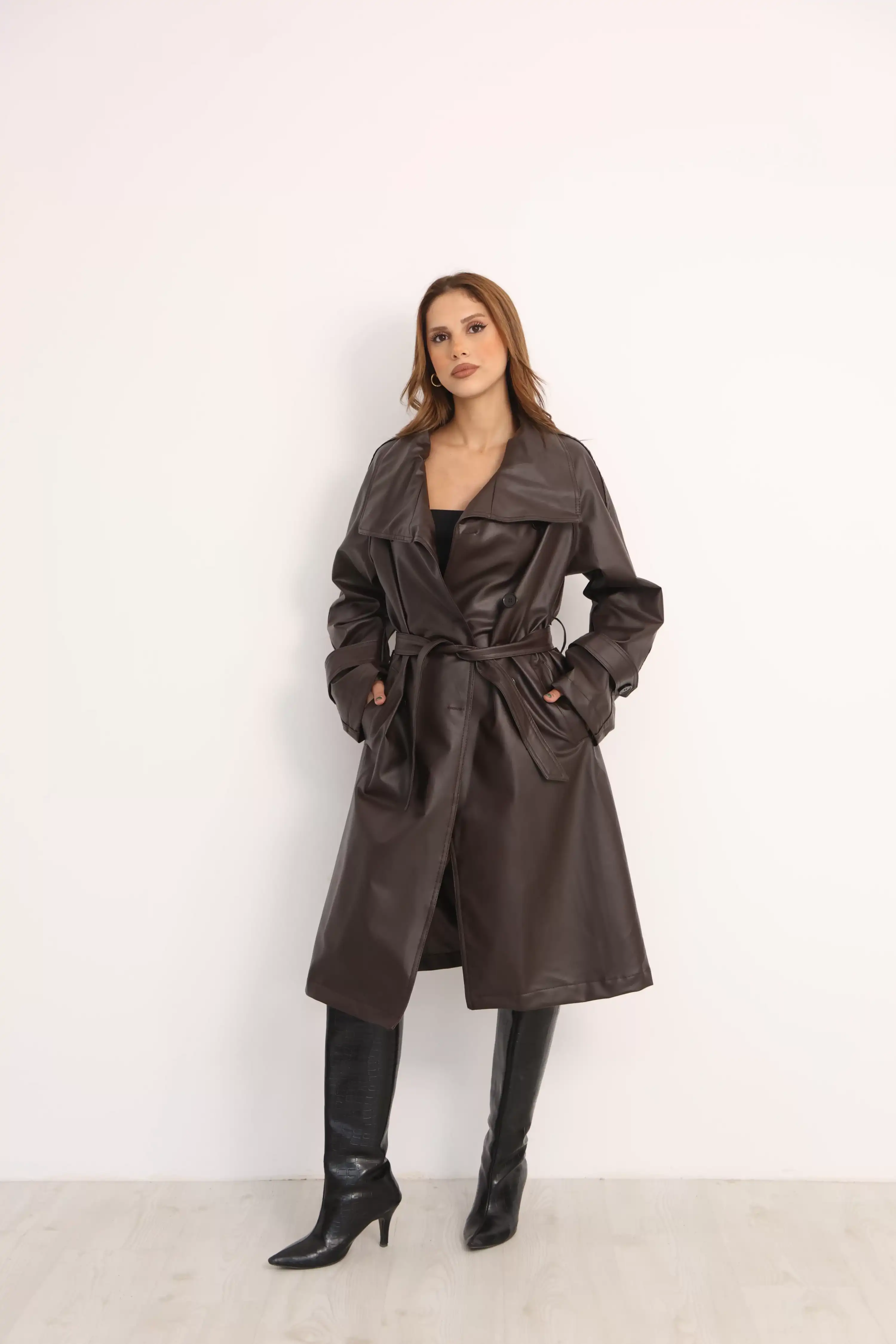 UZUN DERİ TRENÇKOT-KAHVE