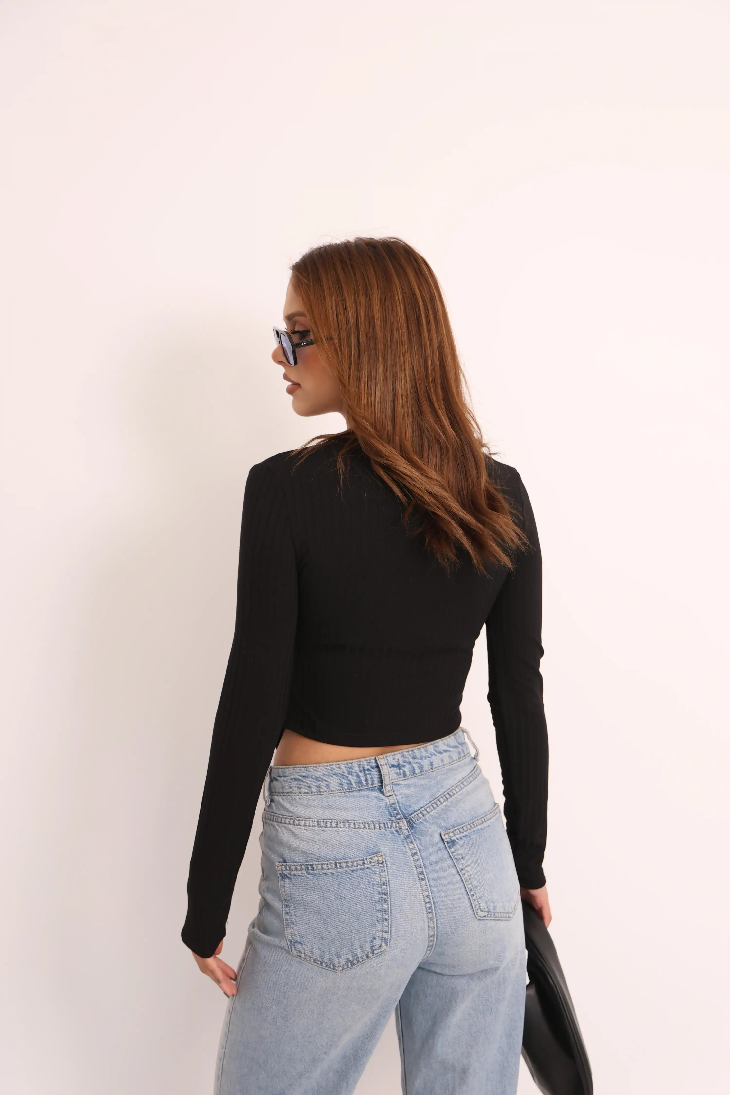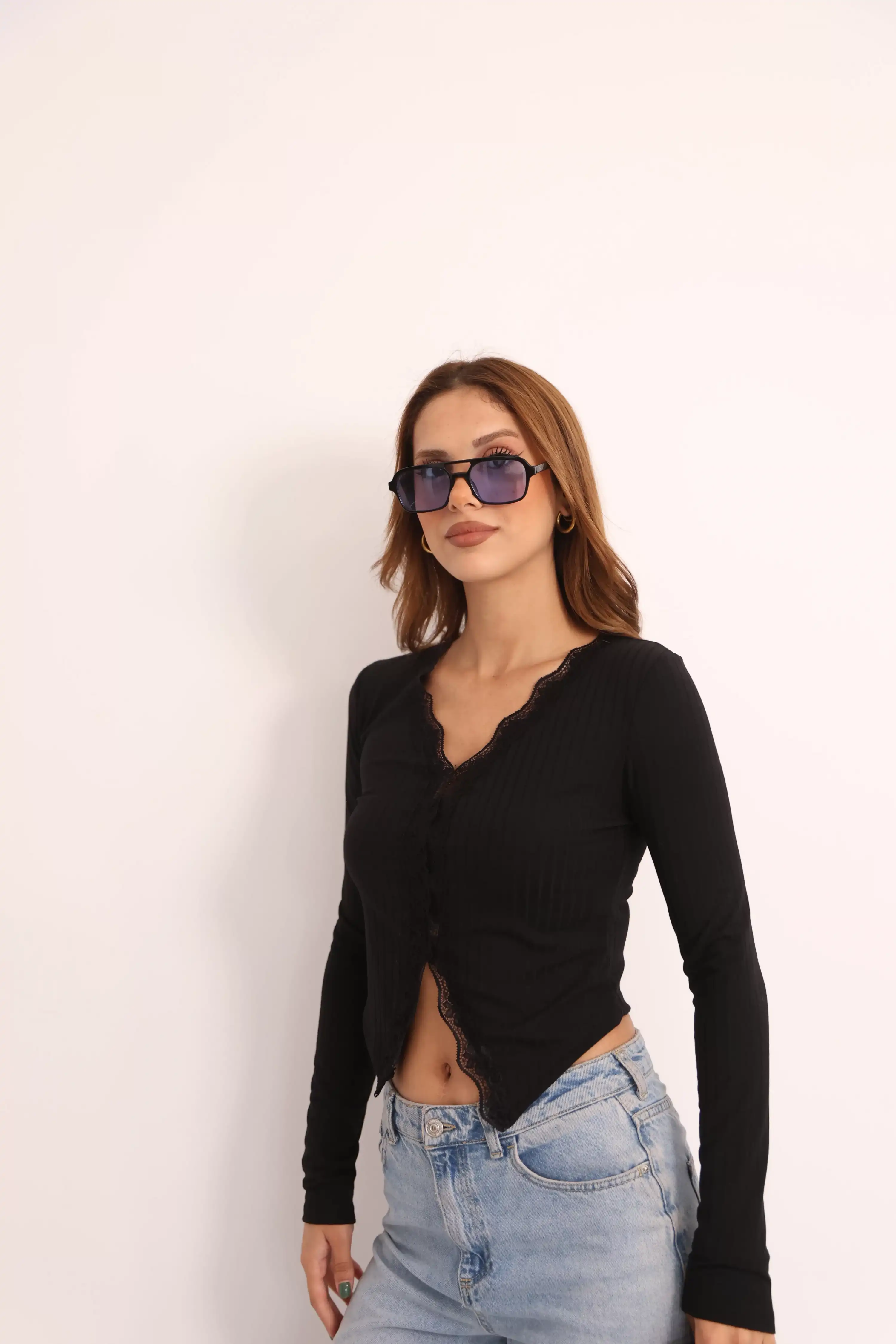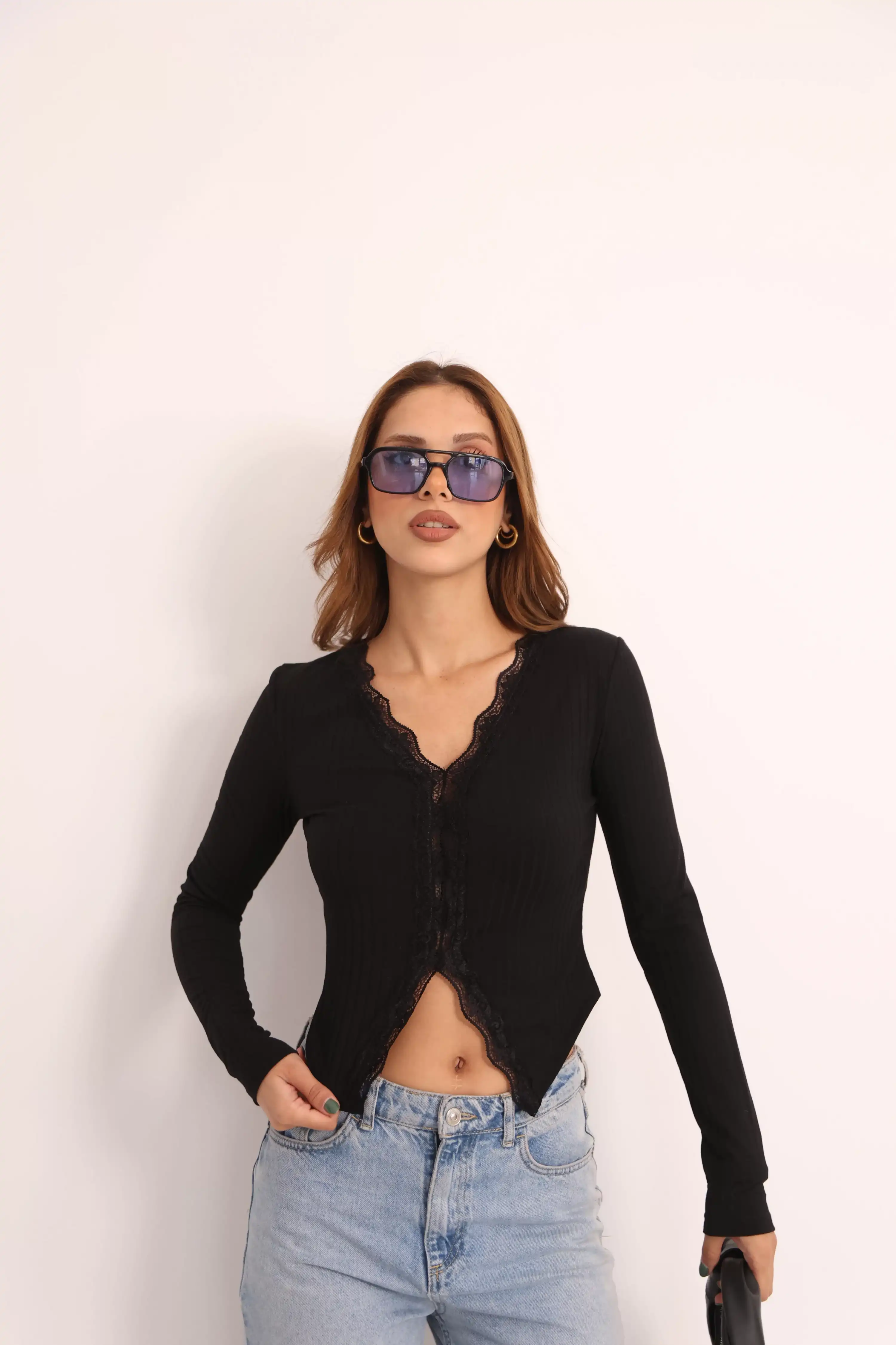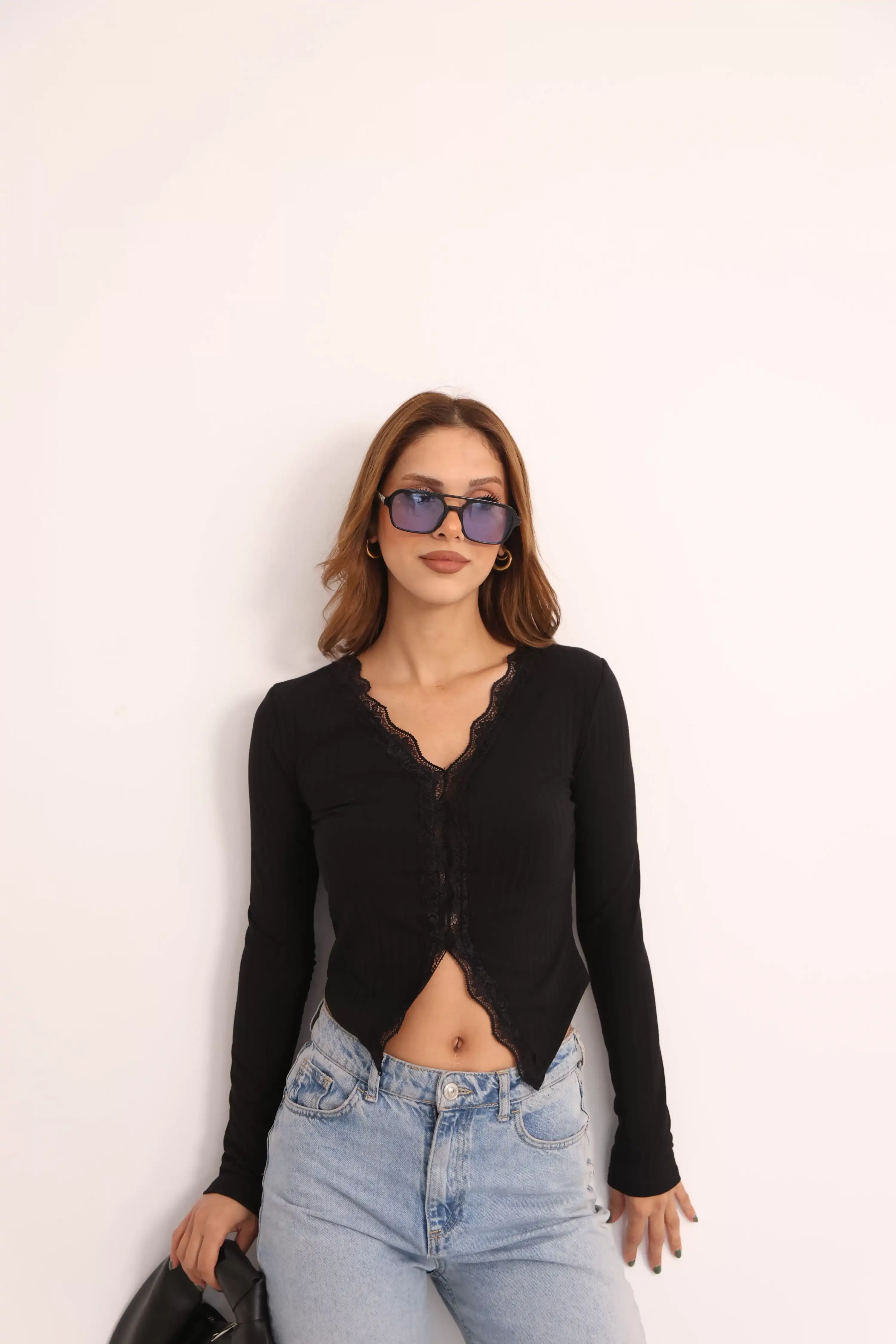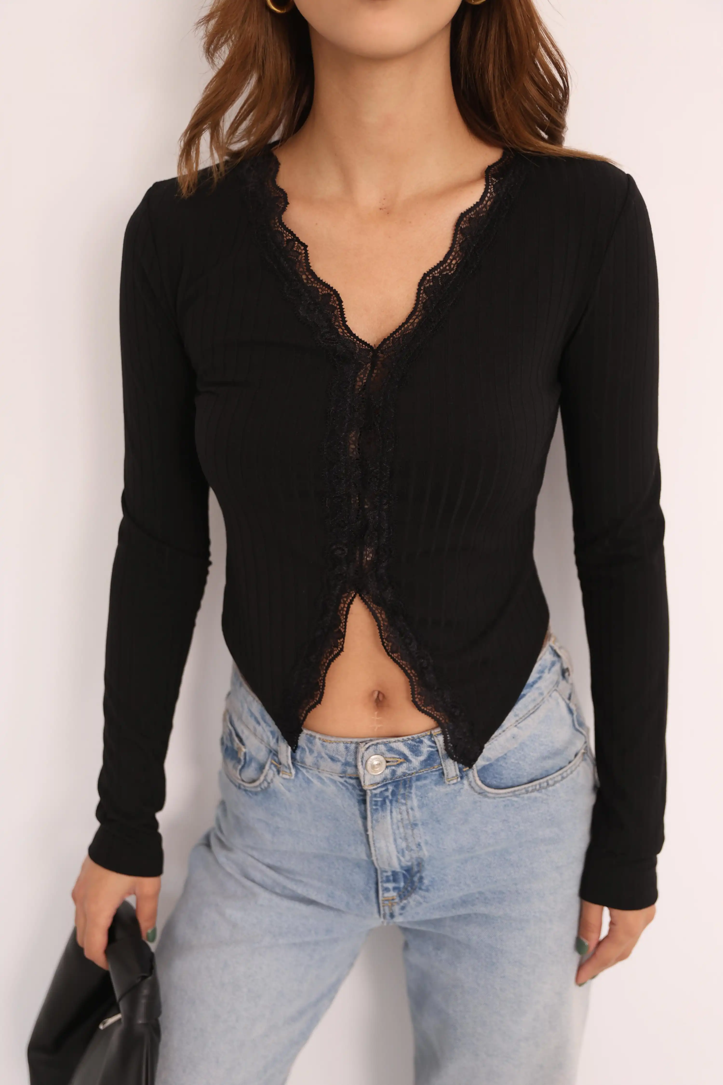 V DANTEL DETAYLI PENYE BLUZ-SİYAH