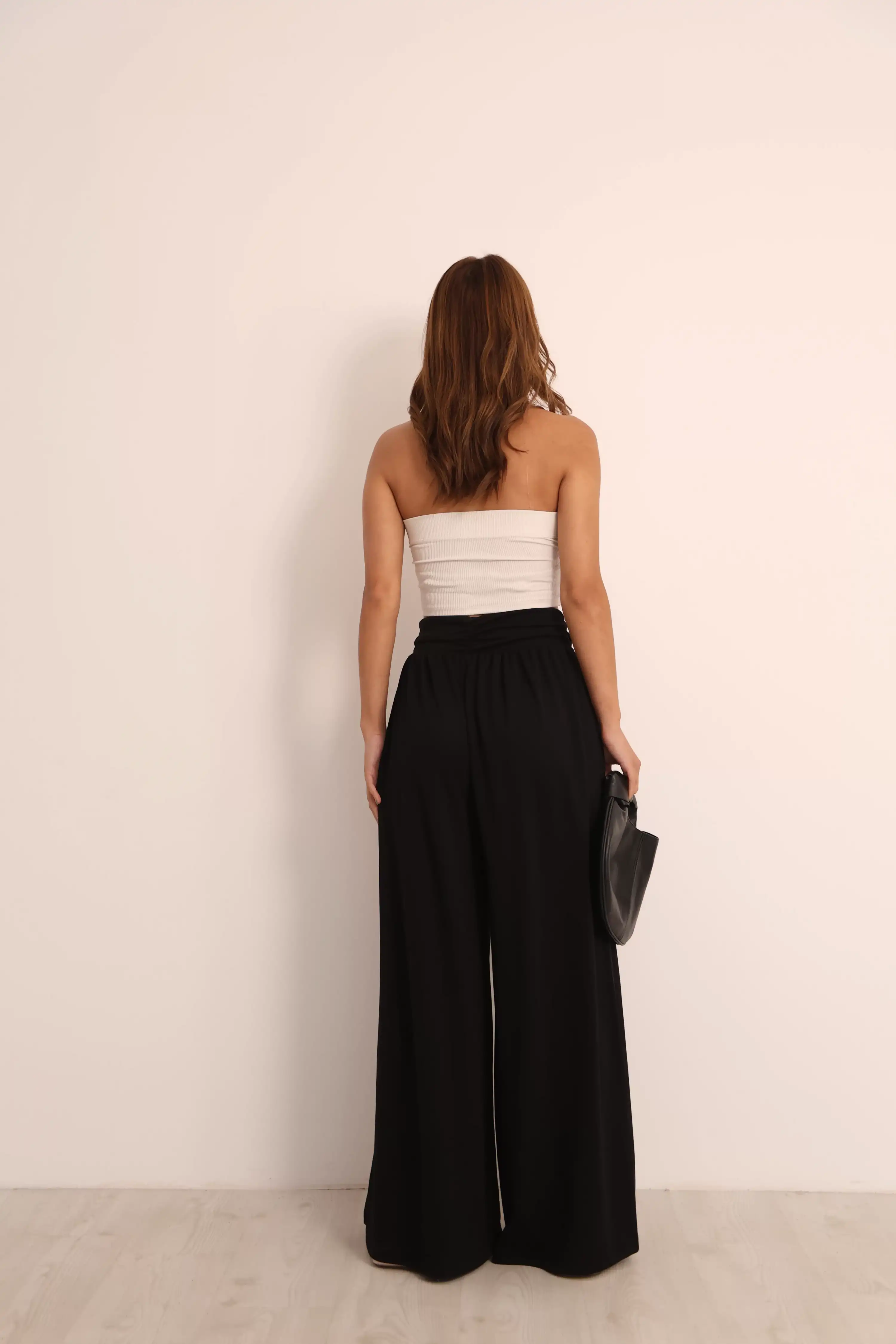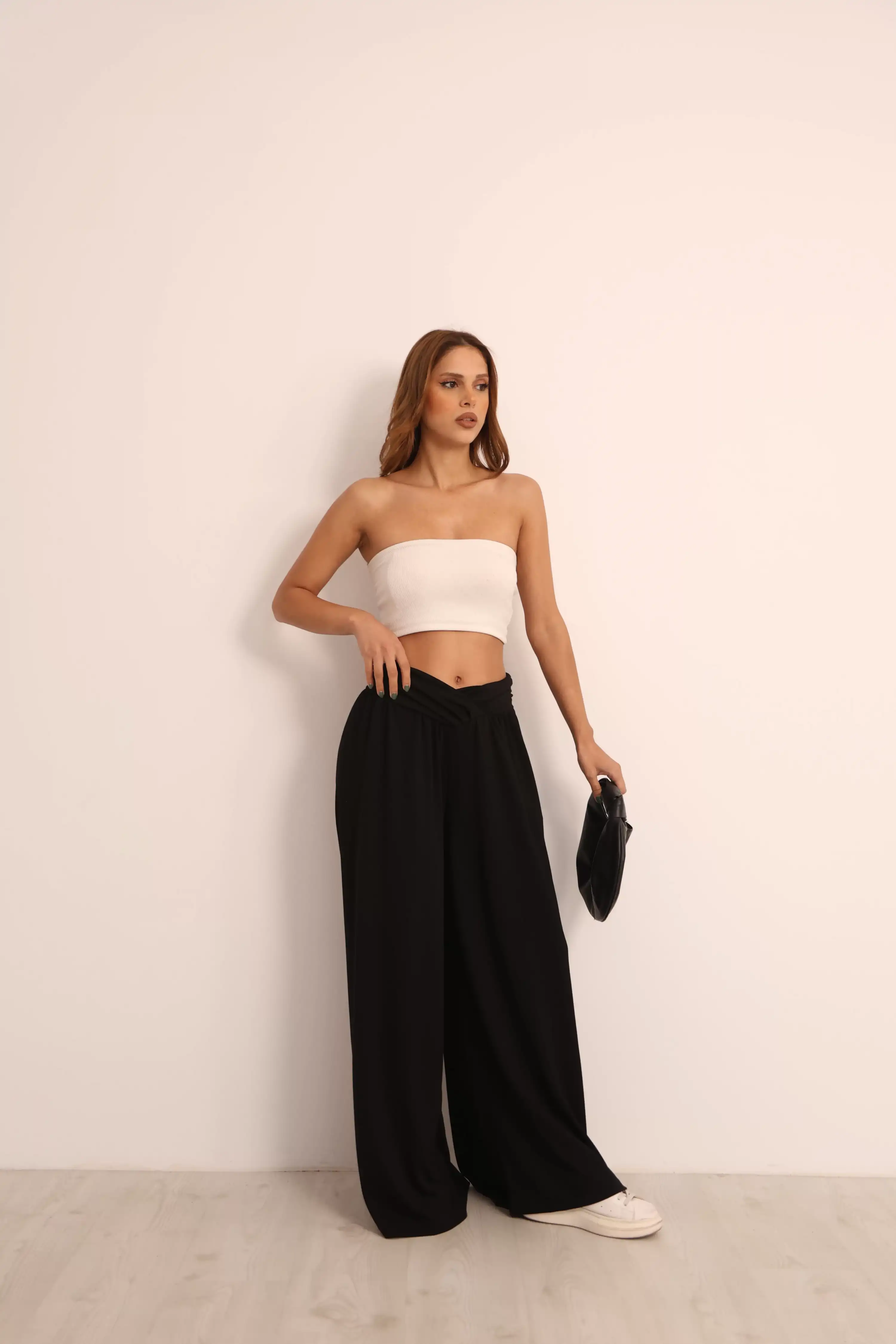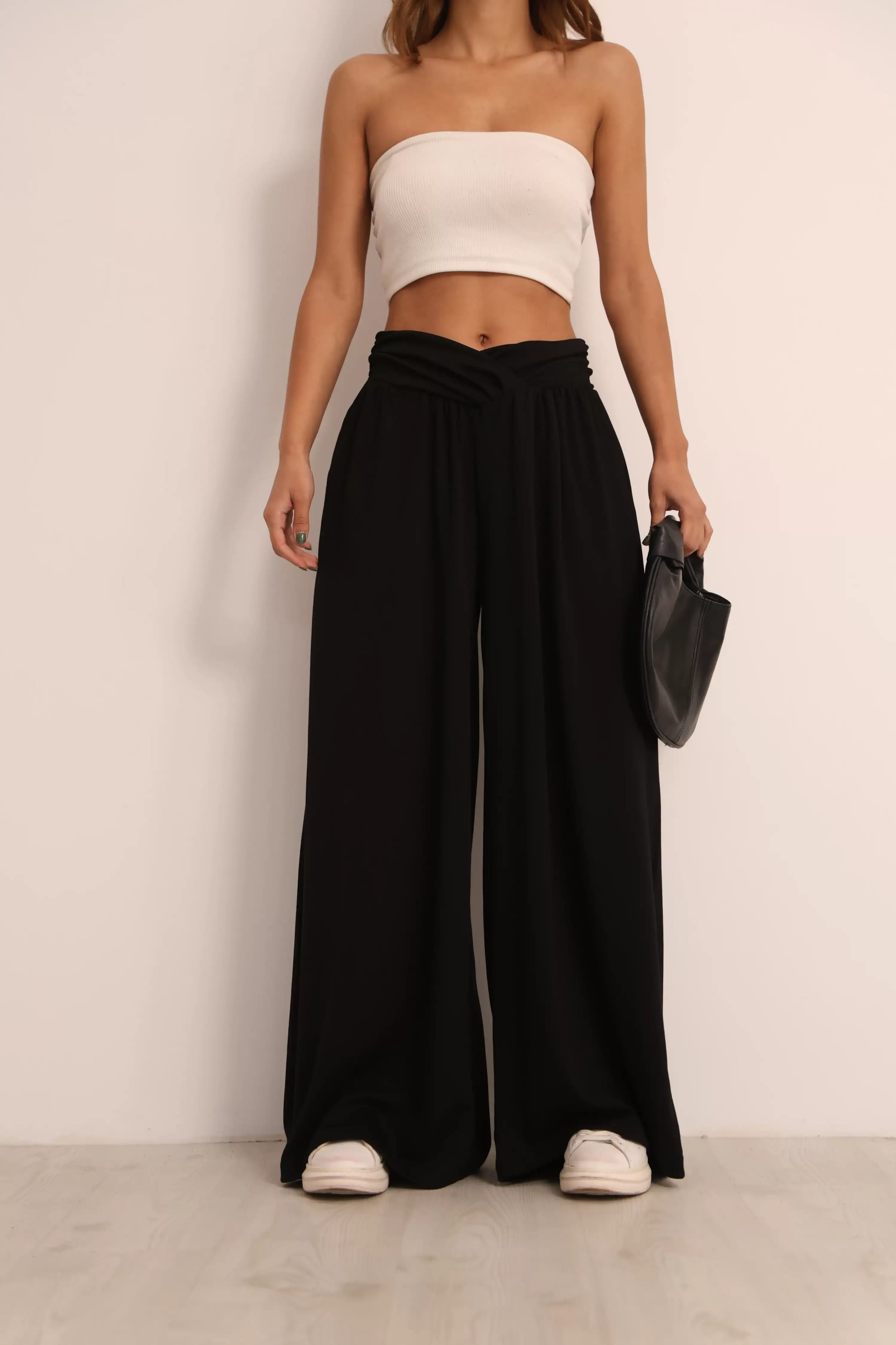 V KESİM BELLİ BOL PAANTOLON-SİYAH