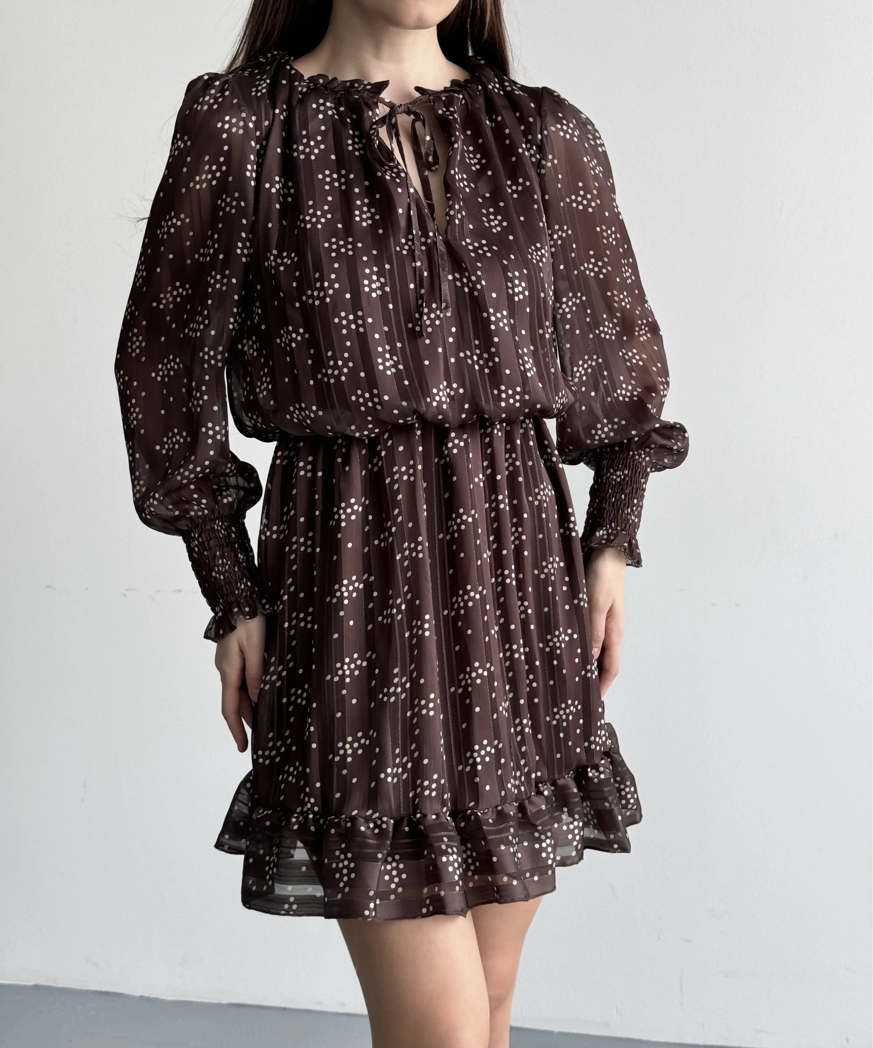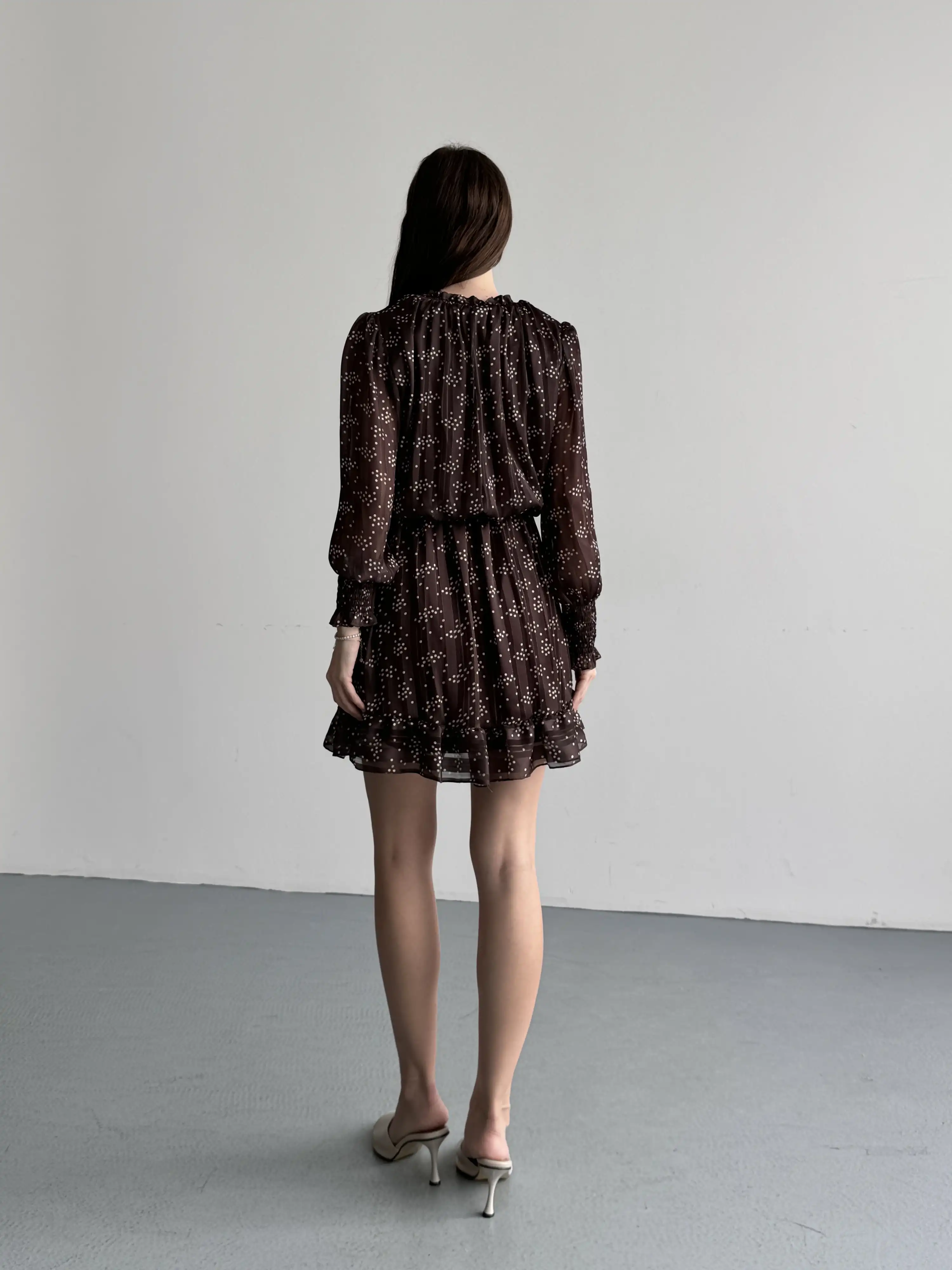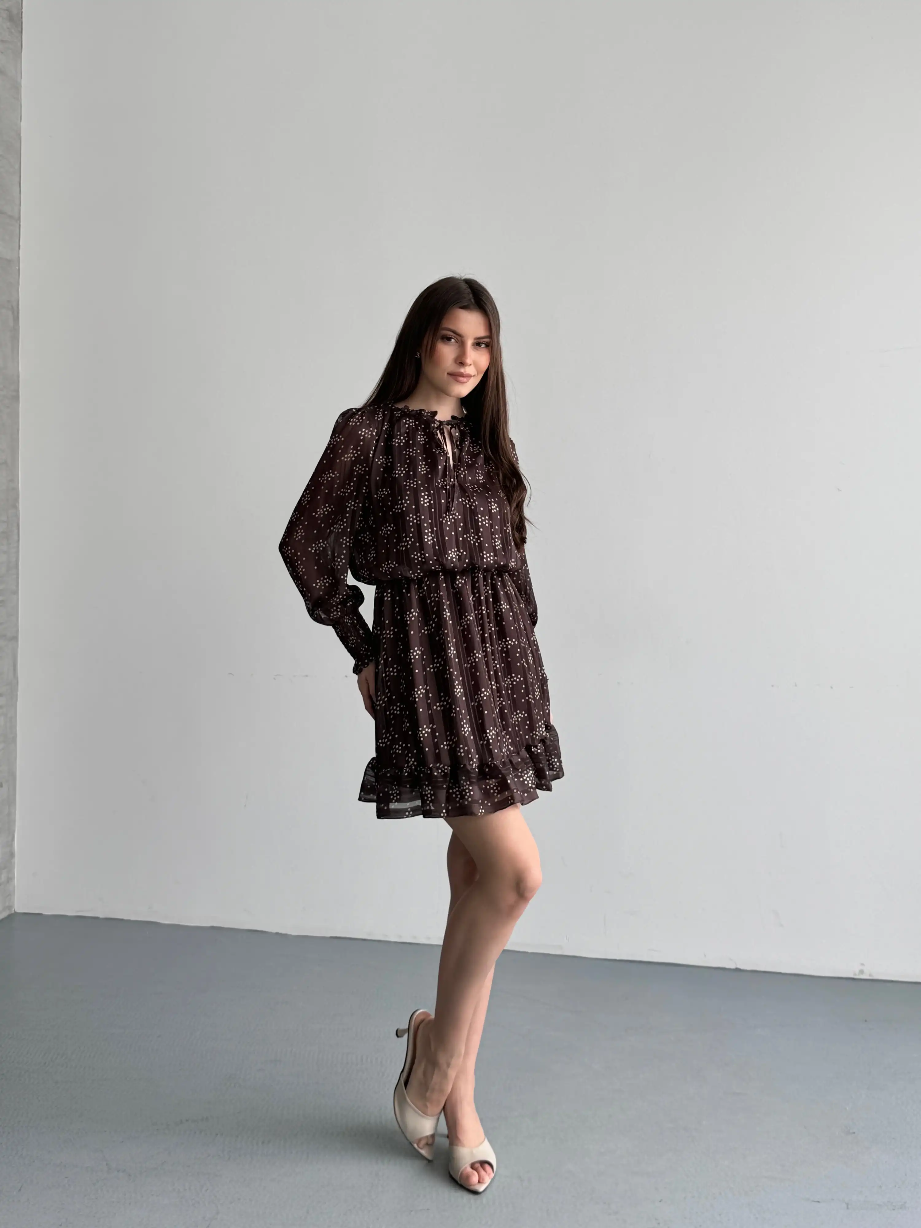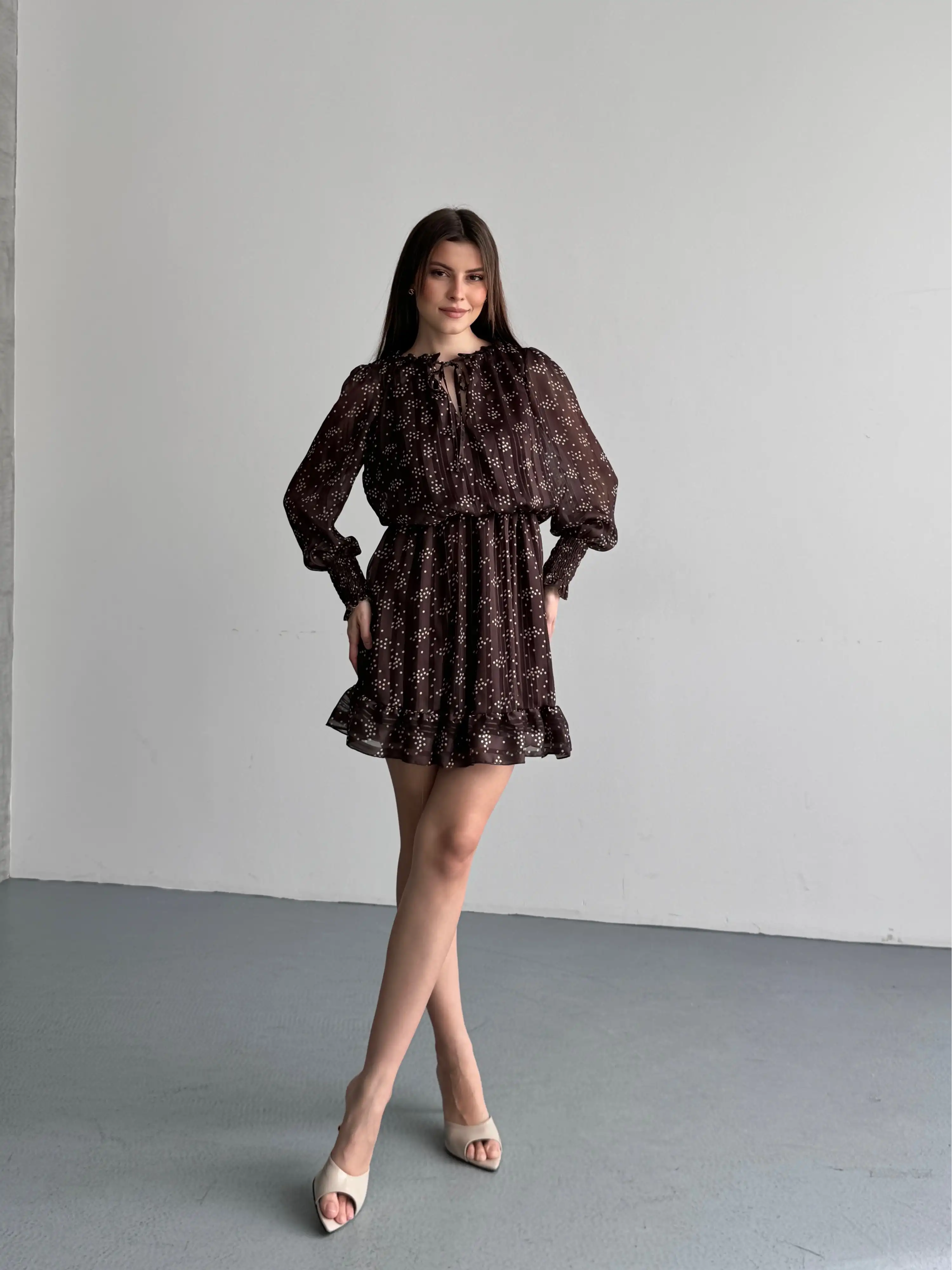 ASKILI MİNİ PUANTİYELİ ELBİSE-KAHVE