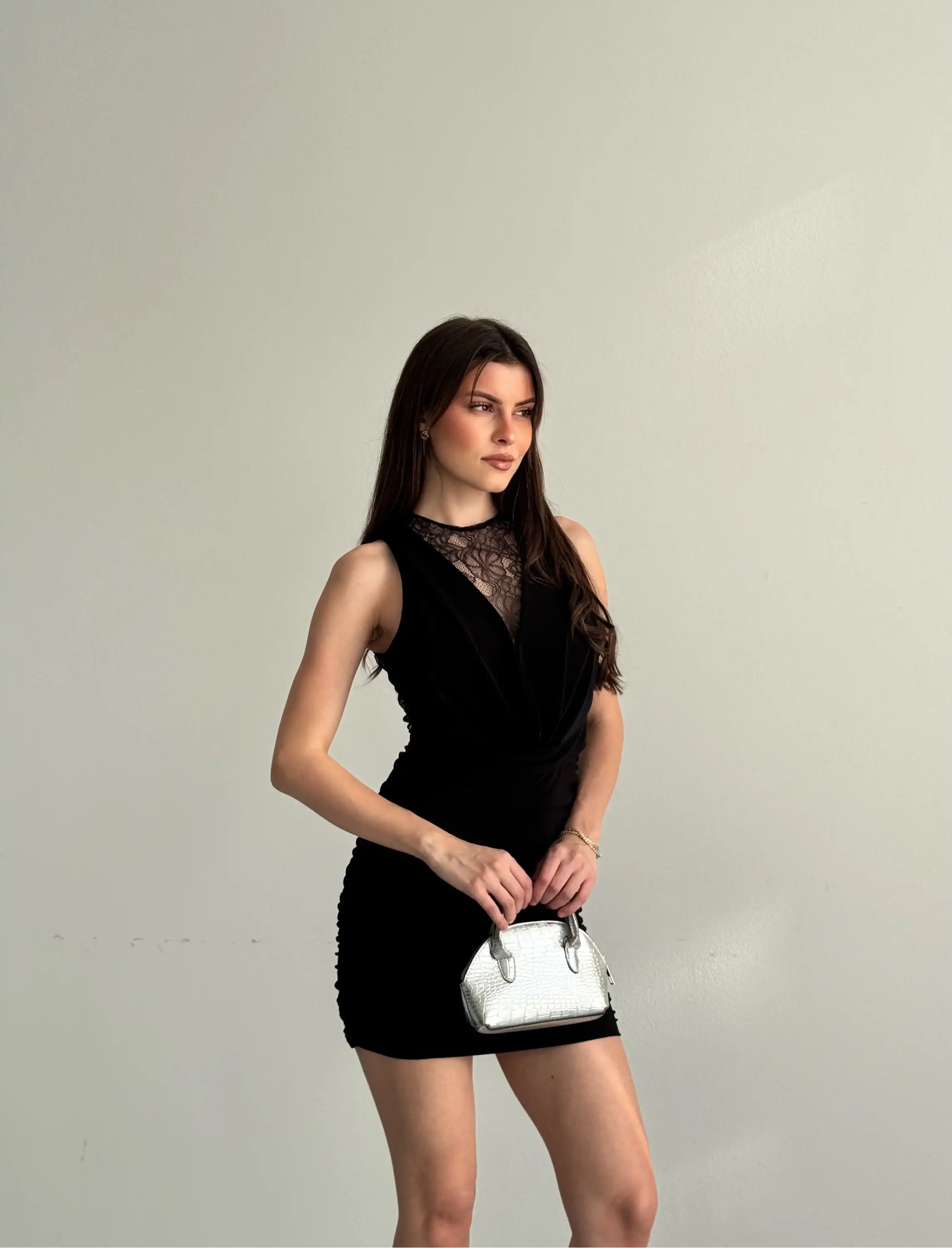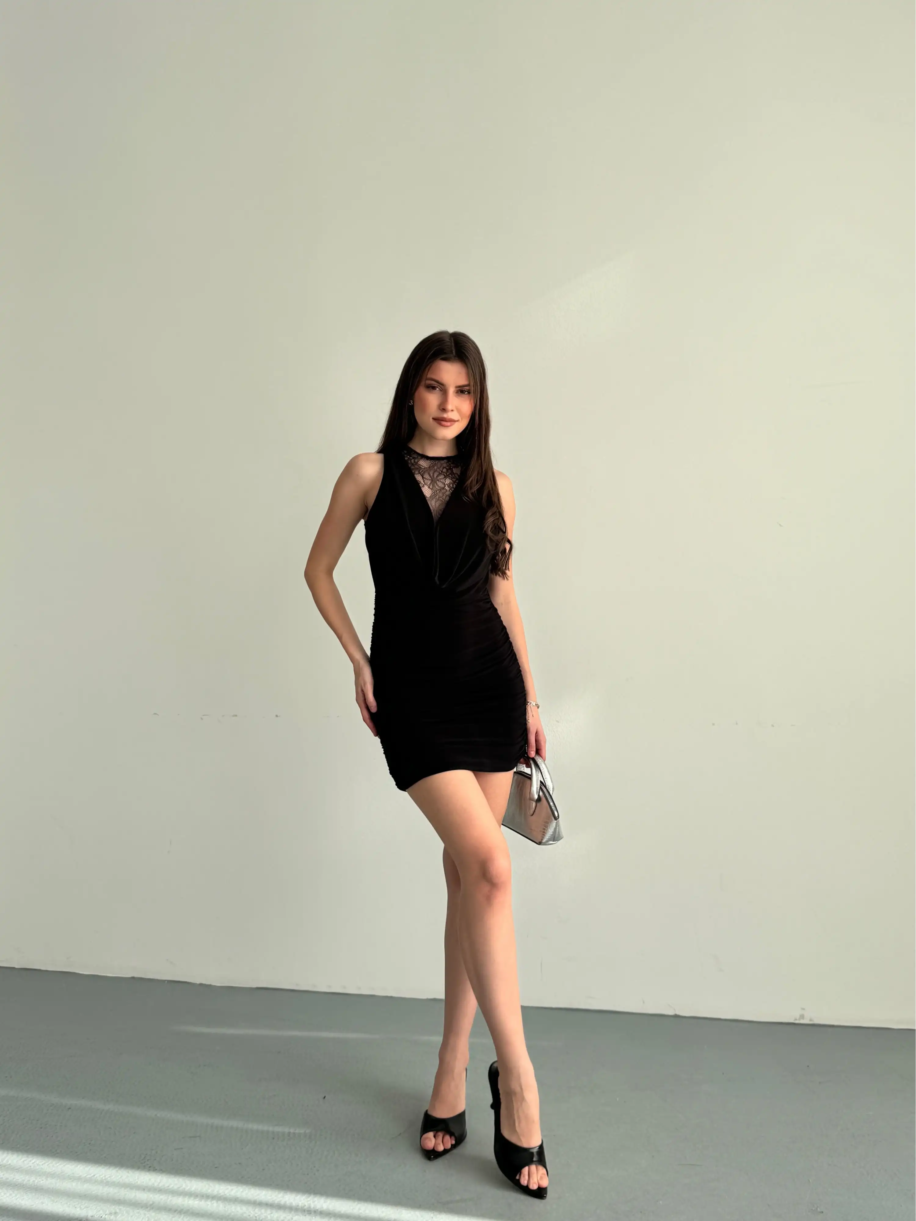 YAKA DÖKÜMLÜ ROMANTİK MİNİ ELBİSE