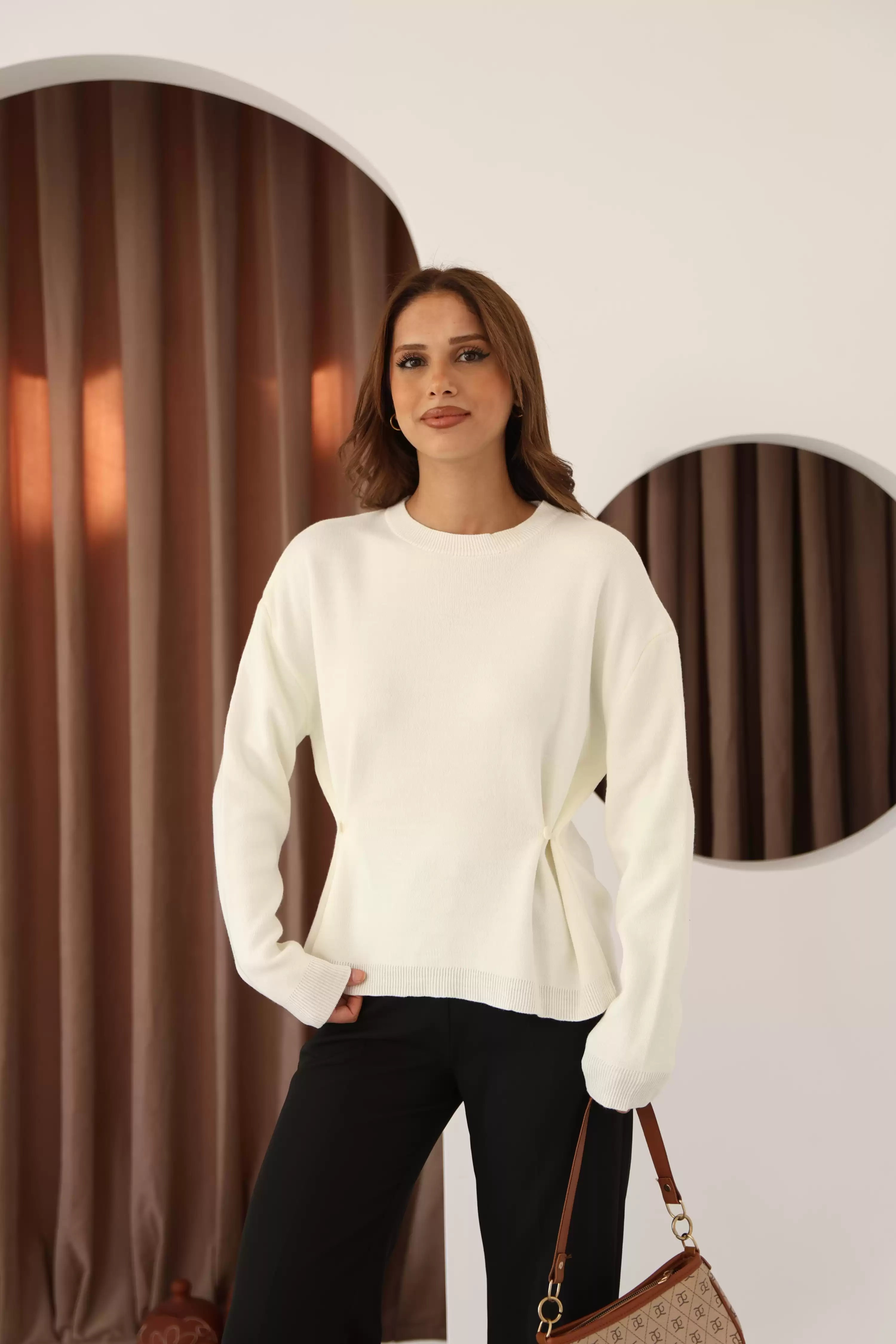 YAN DÜĞMELİ TRİKO KAZAK-BEYAZ