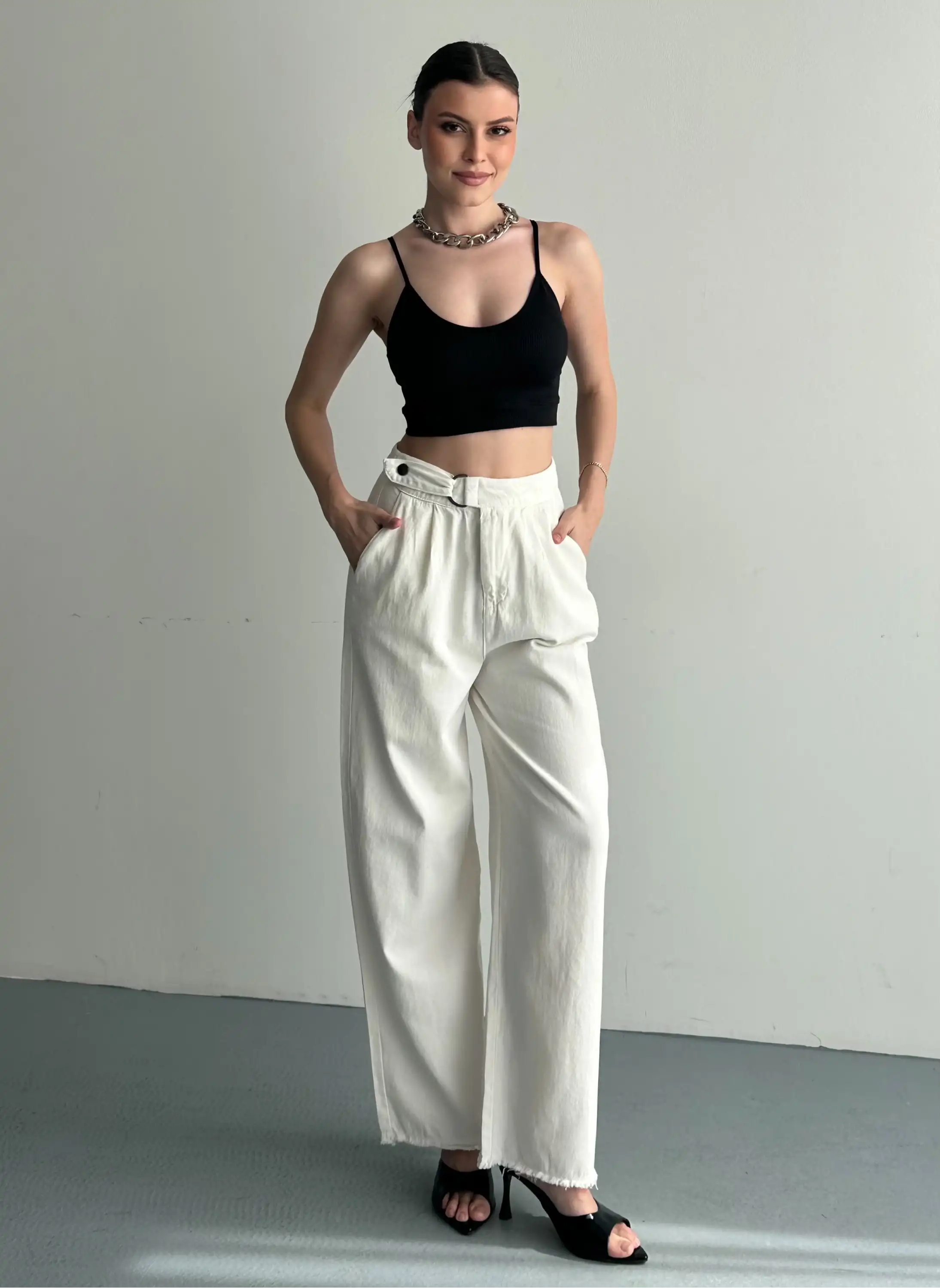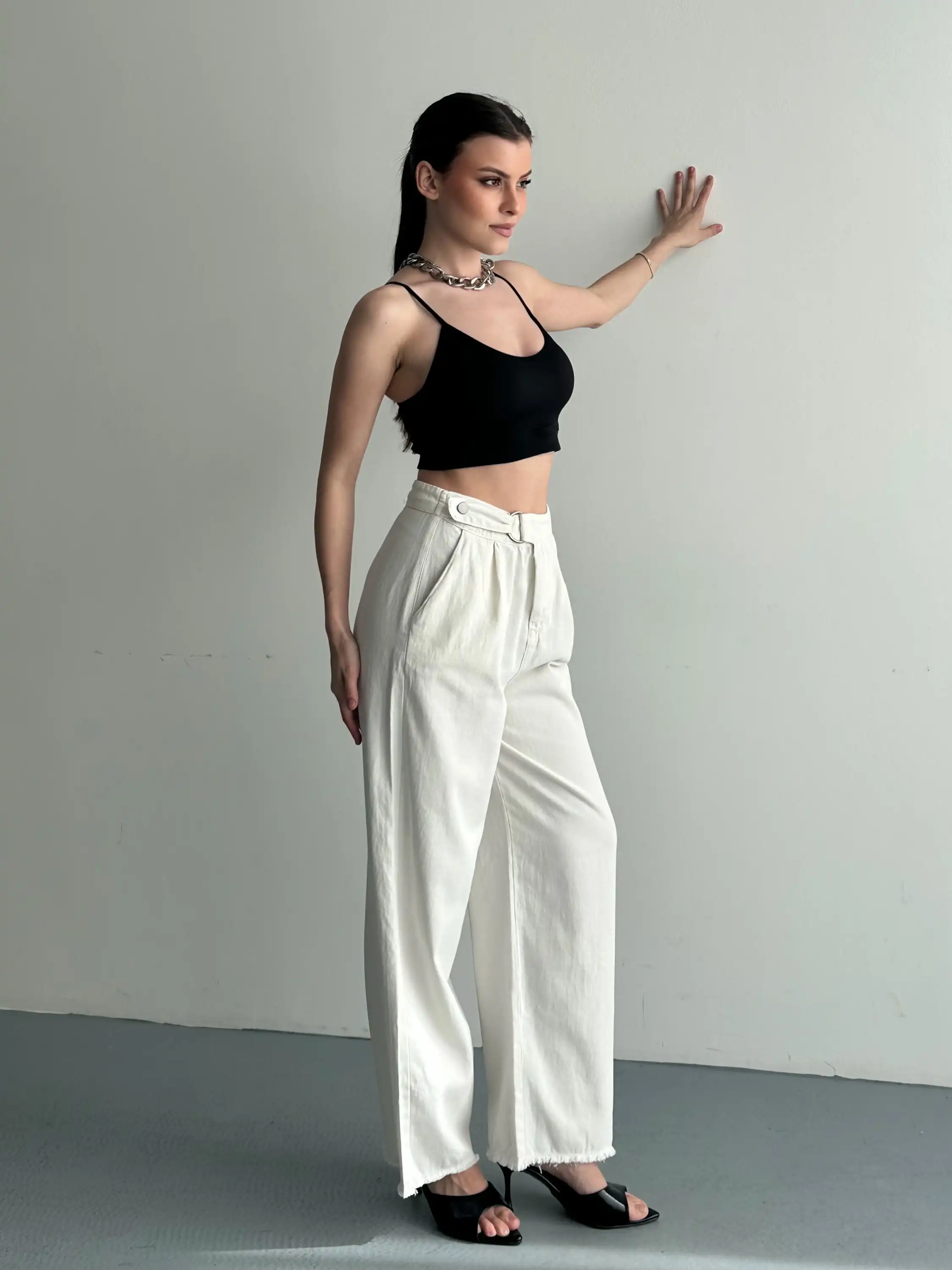 YANDAN ÇITÇITLI GABARDİN PANTOLON-BEYAZ