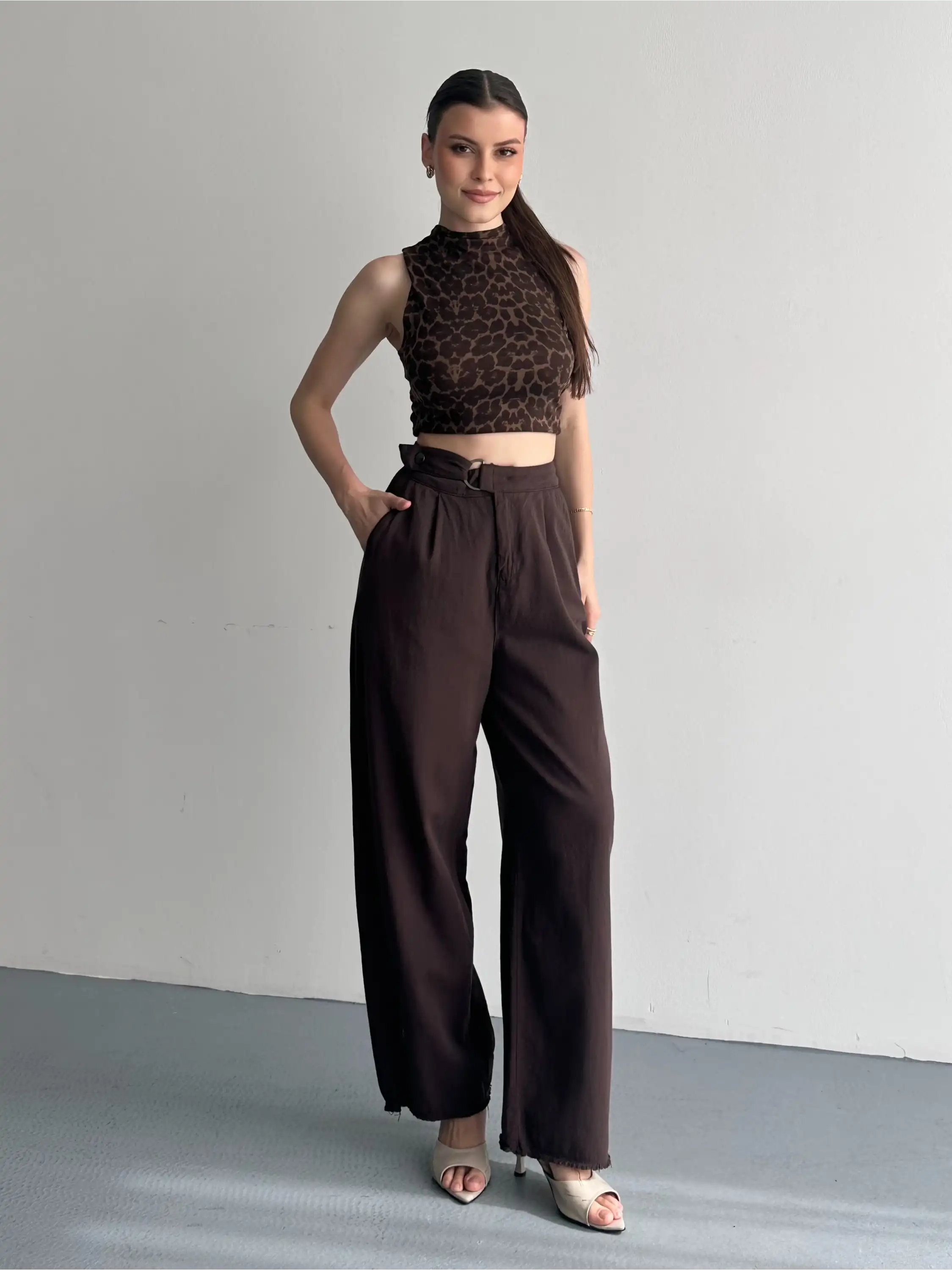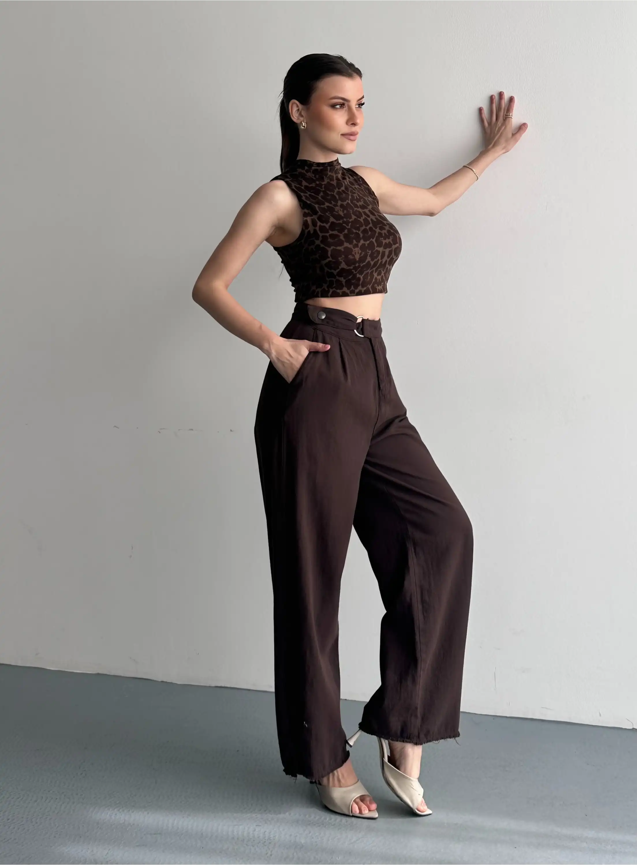YANDAN ÇITÇITLI GABARDİN PANTOLON-KAHVE