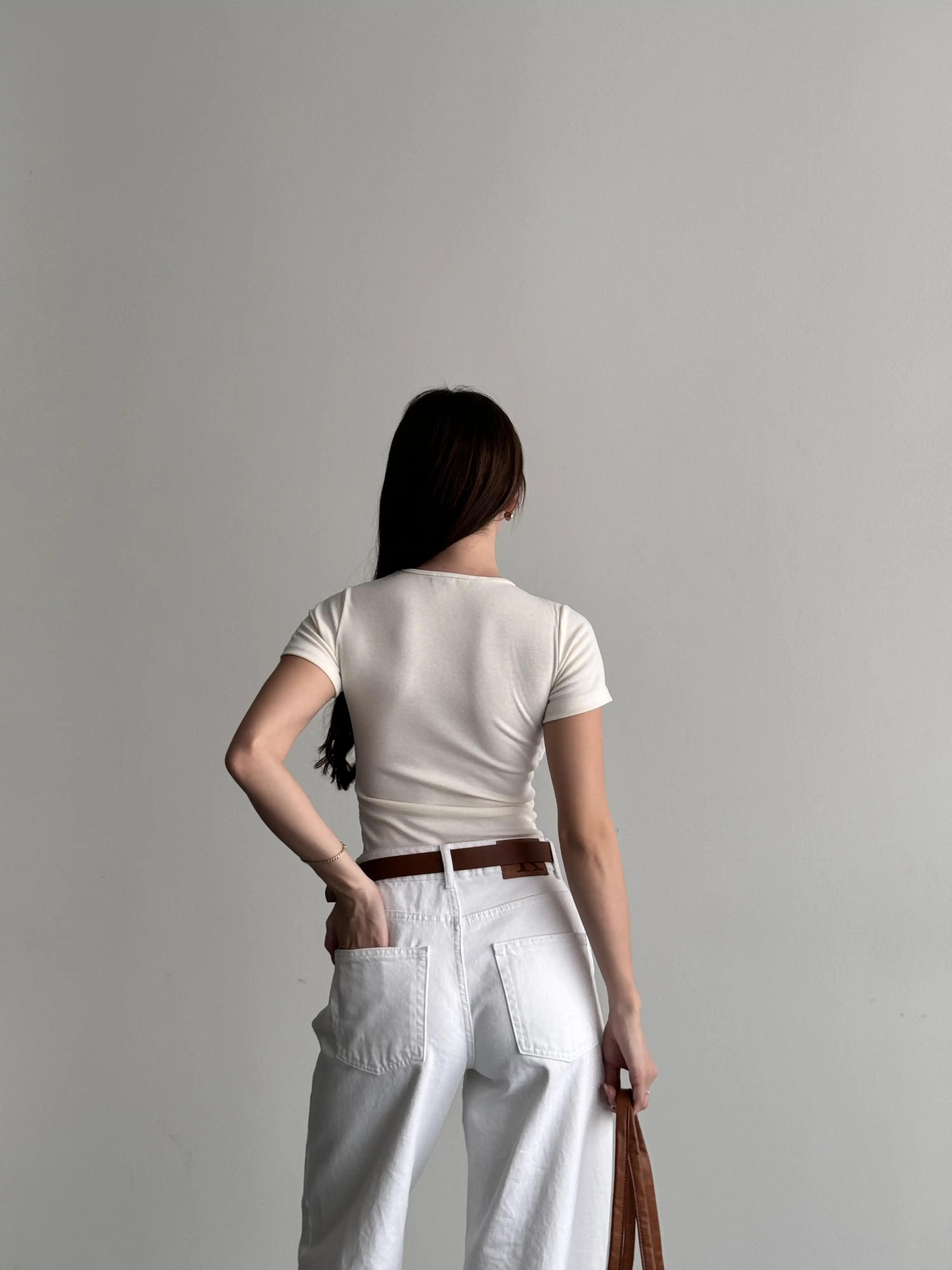 YANDAN ÇITÇITLI GABARDİN PANTOLON-BEYAZ