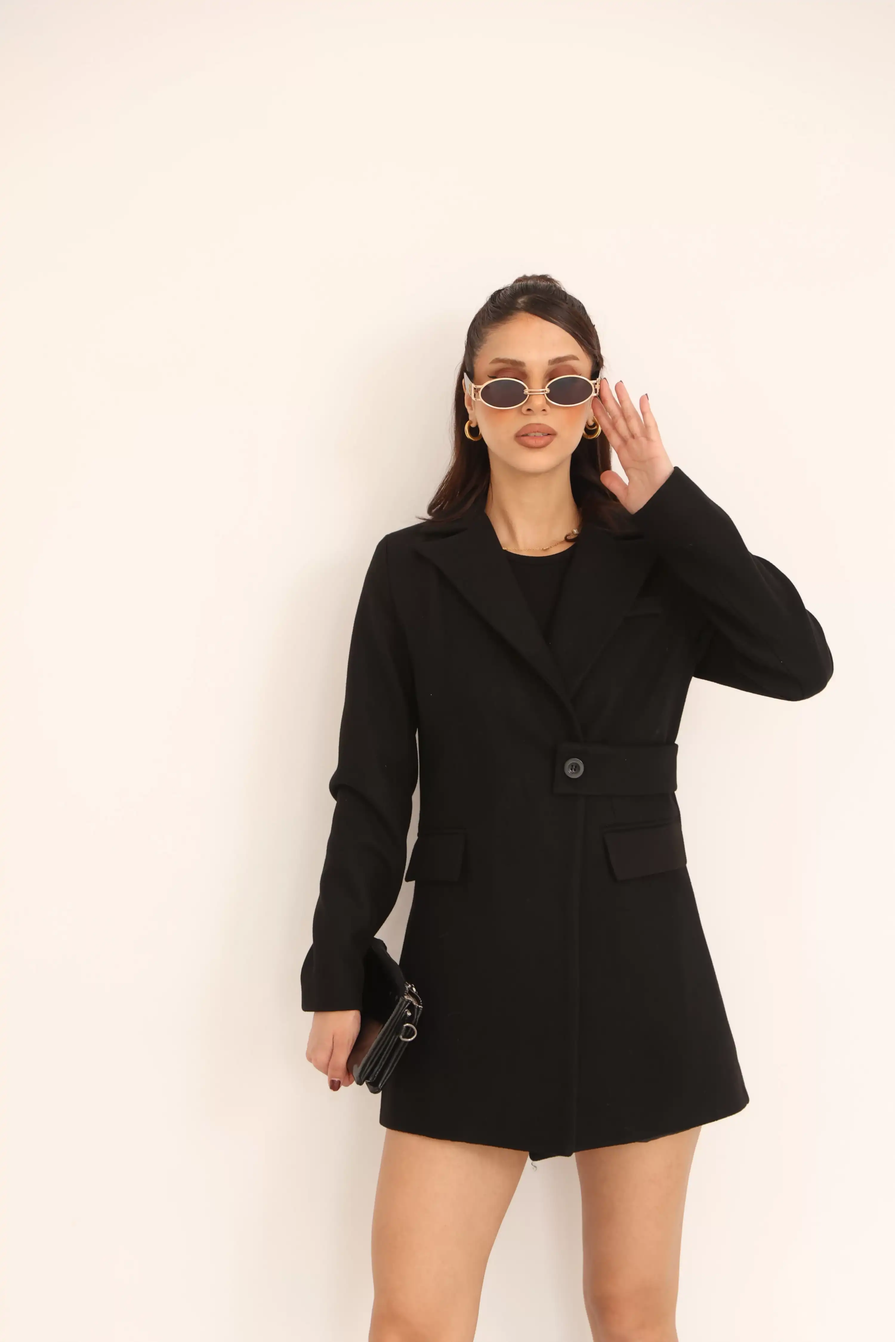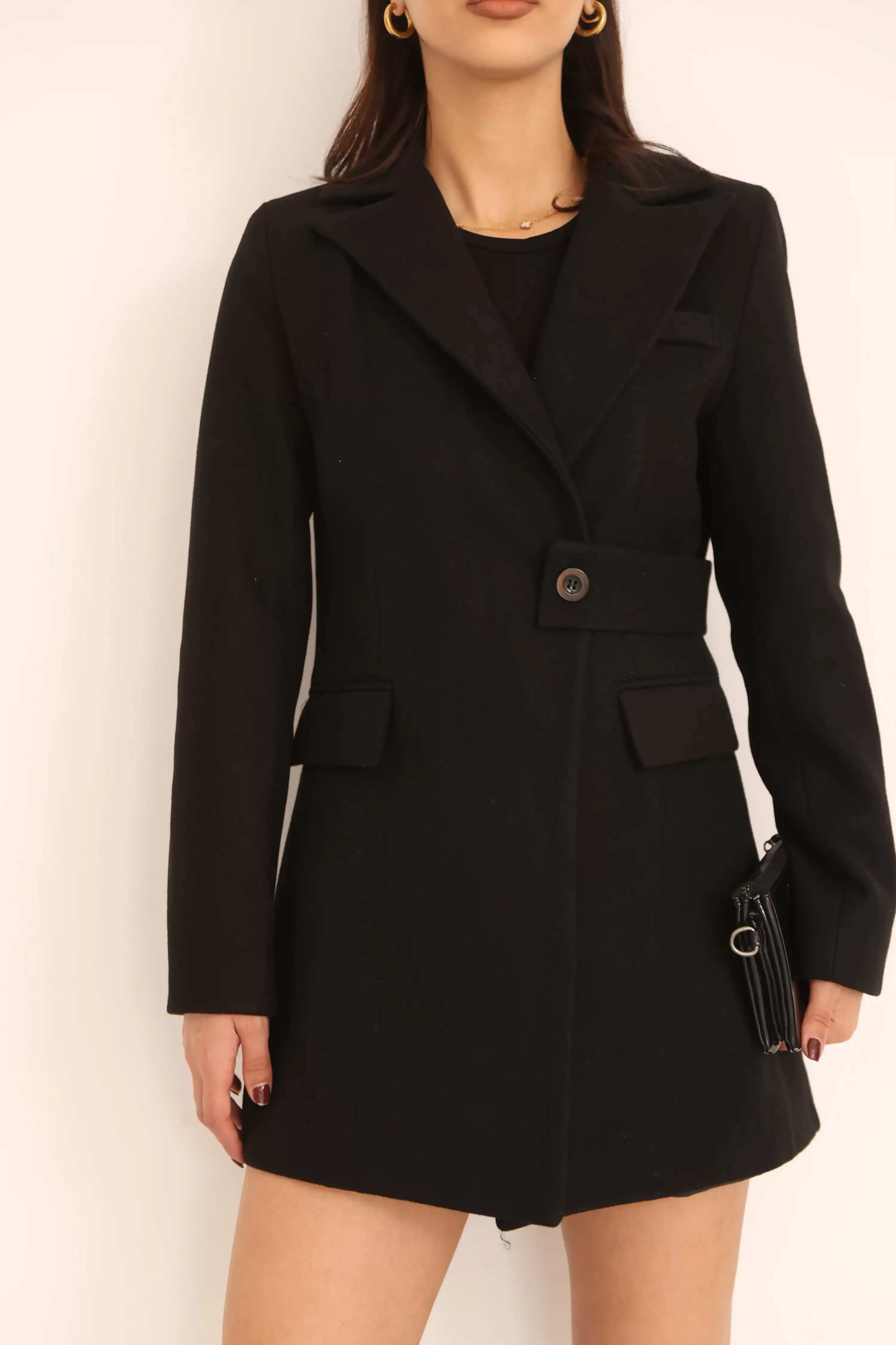 YANDAN DÜĞME DETAYLI KAŞE BLAZER CEKET-SİYAH