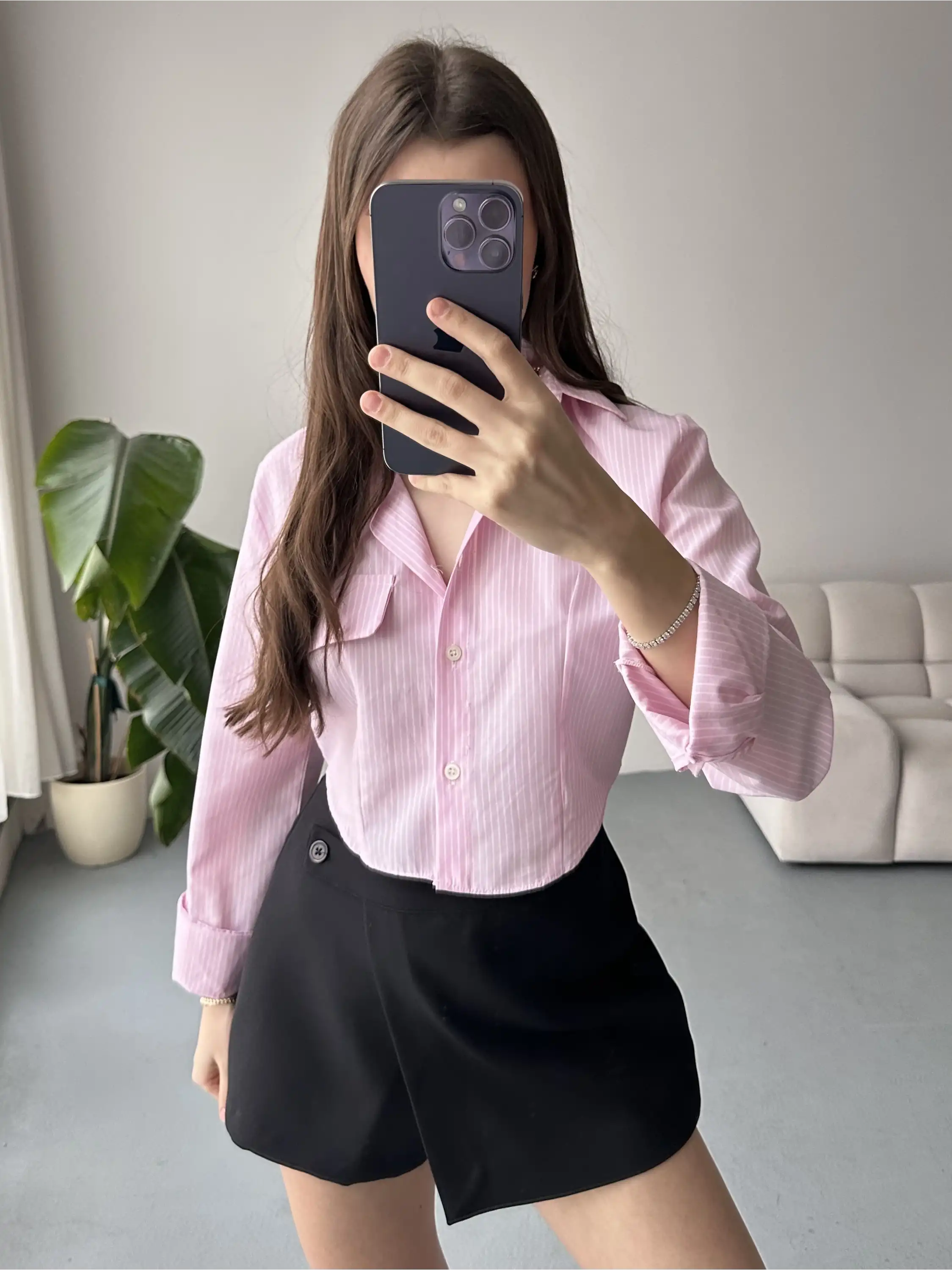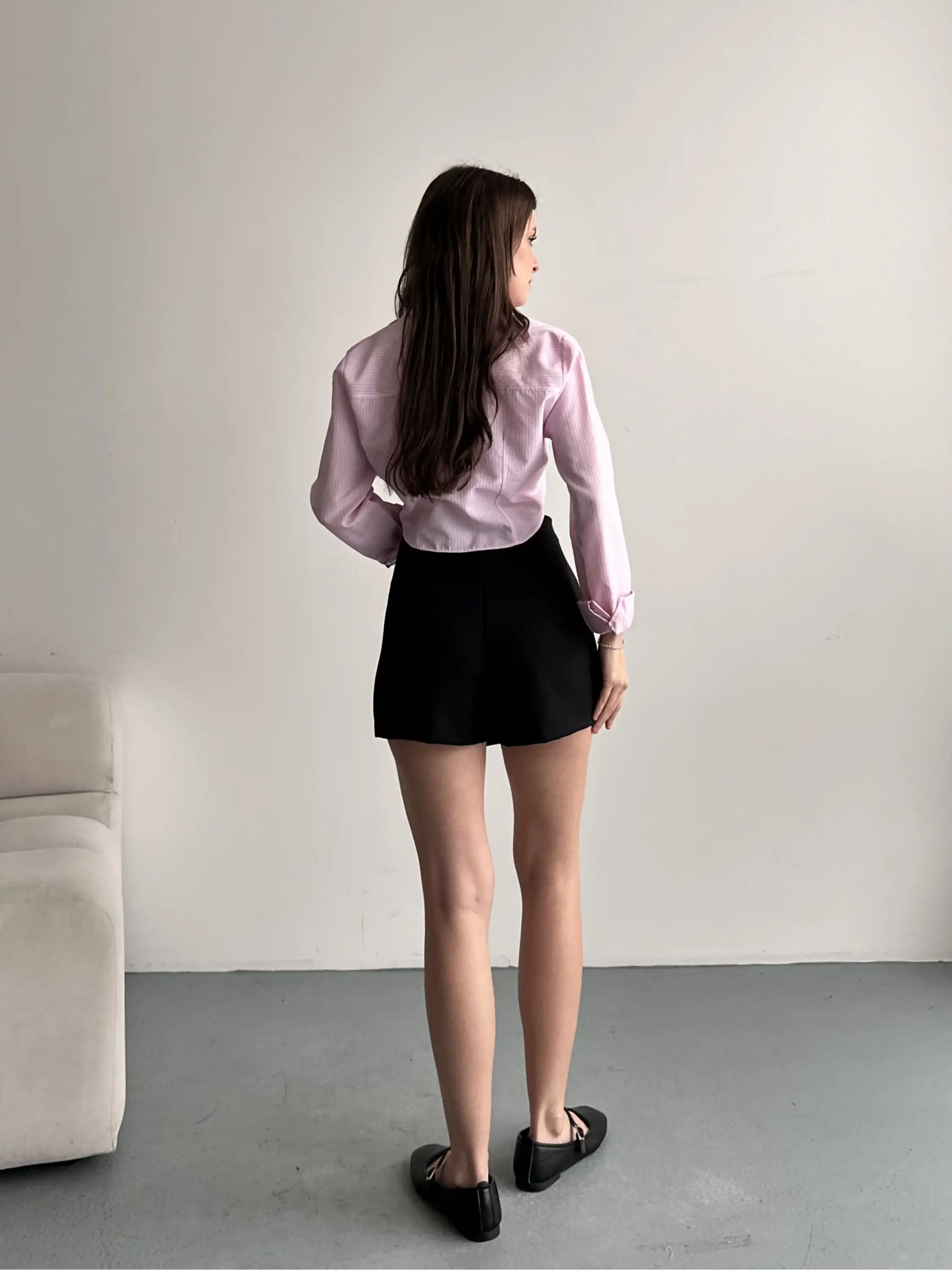ŞERİT DESENLİ OVERSIZE GÖMLEK-SİYAH