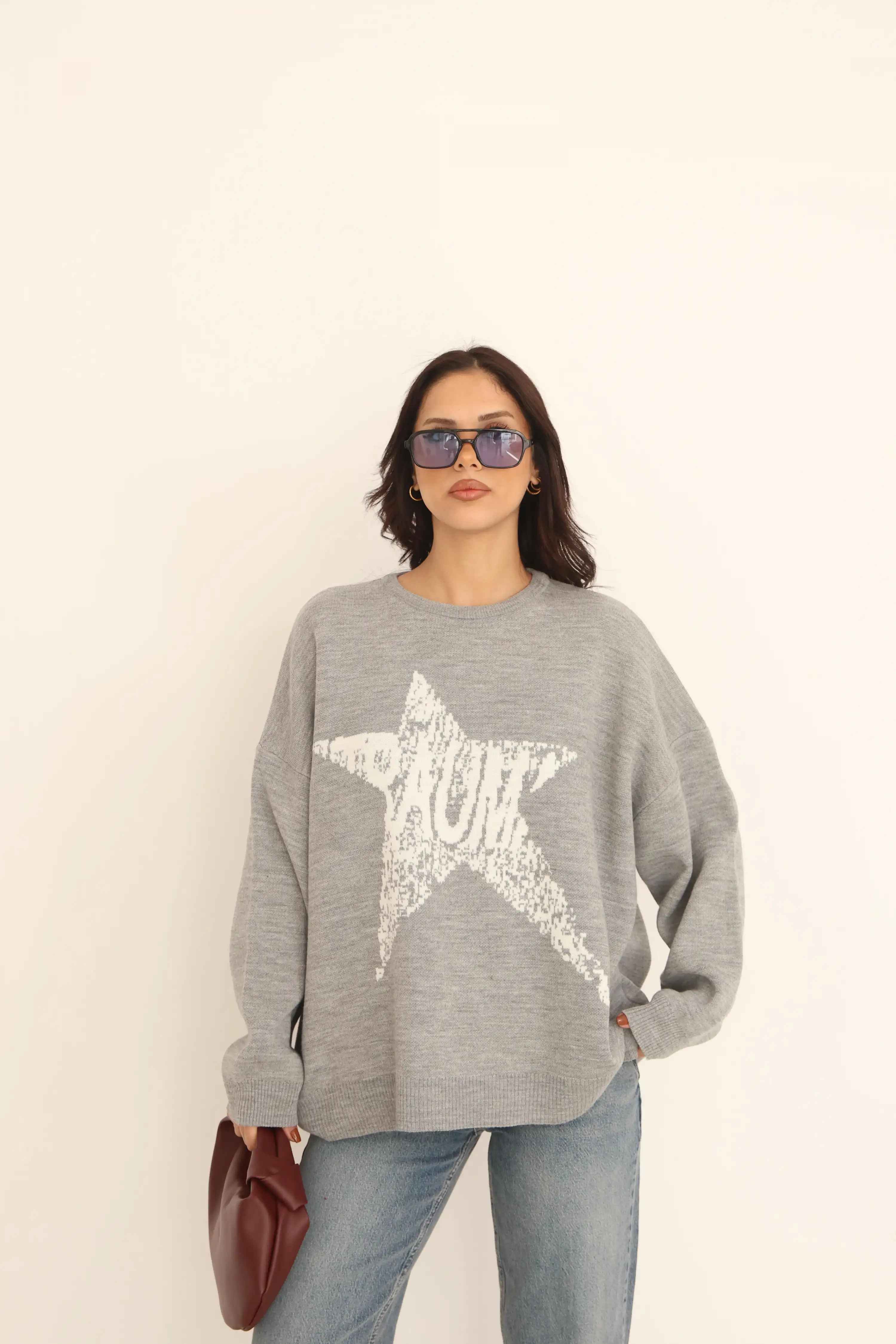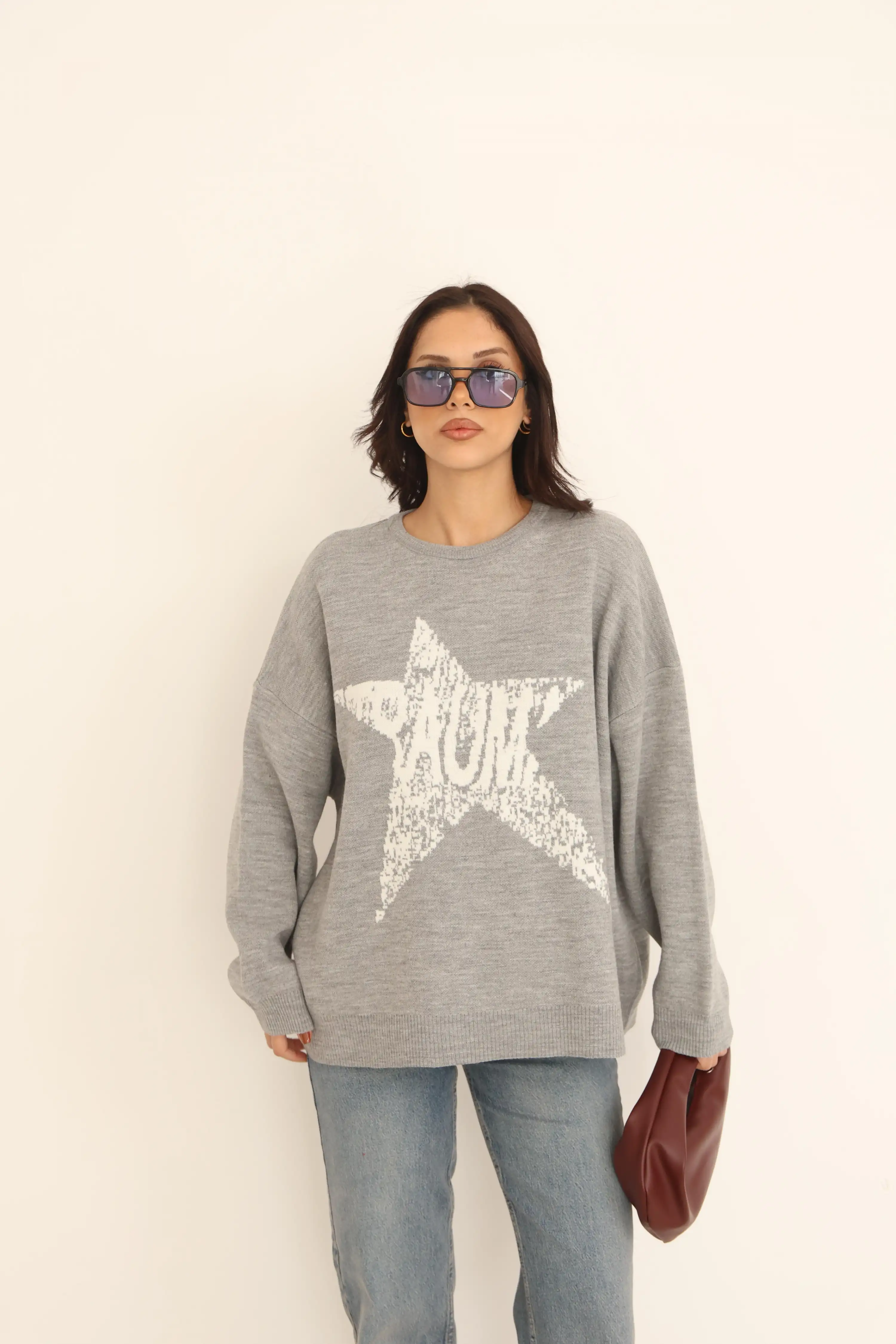 YILDIZ OVERSİZE TRİKO KAZAK-GRİ
