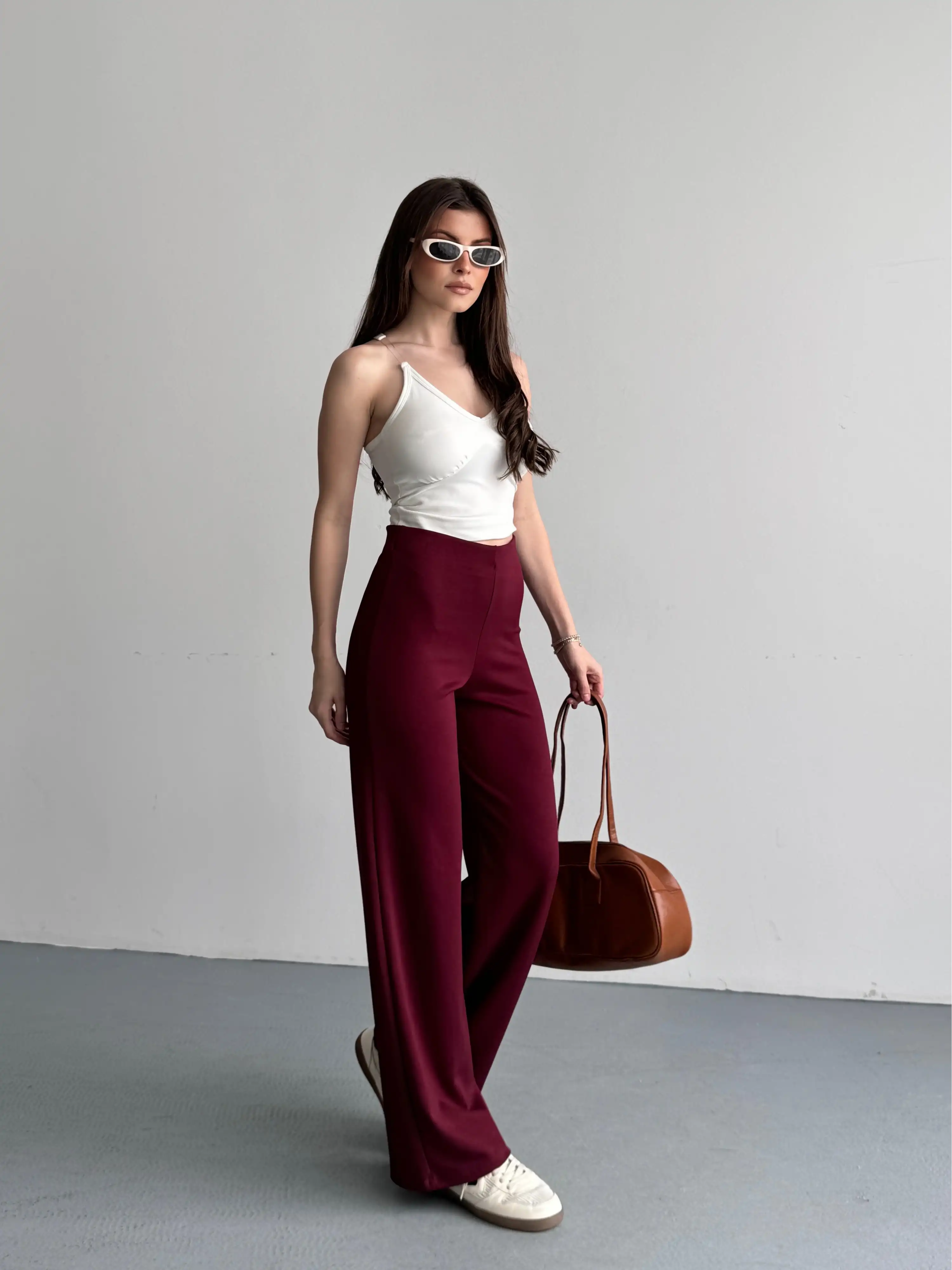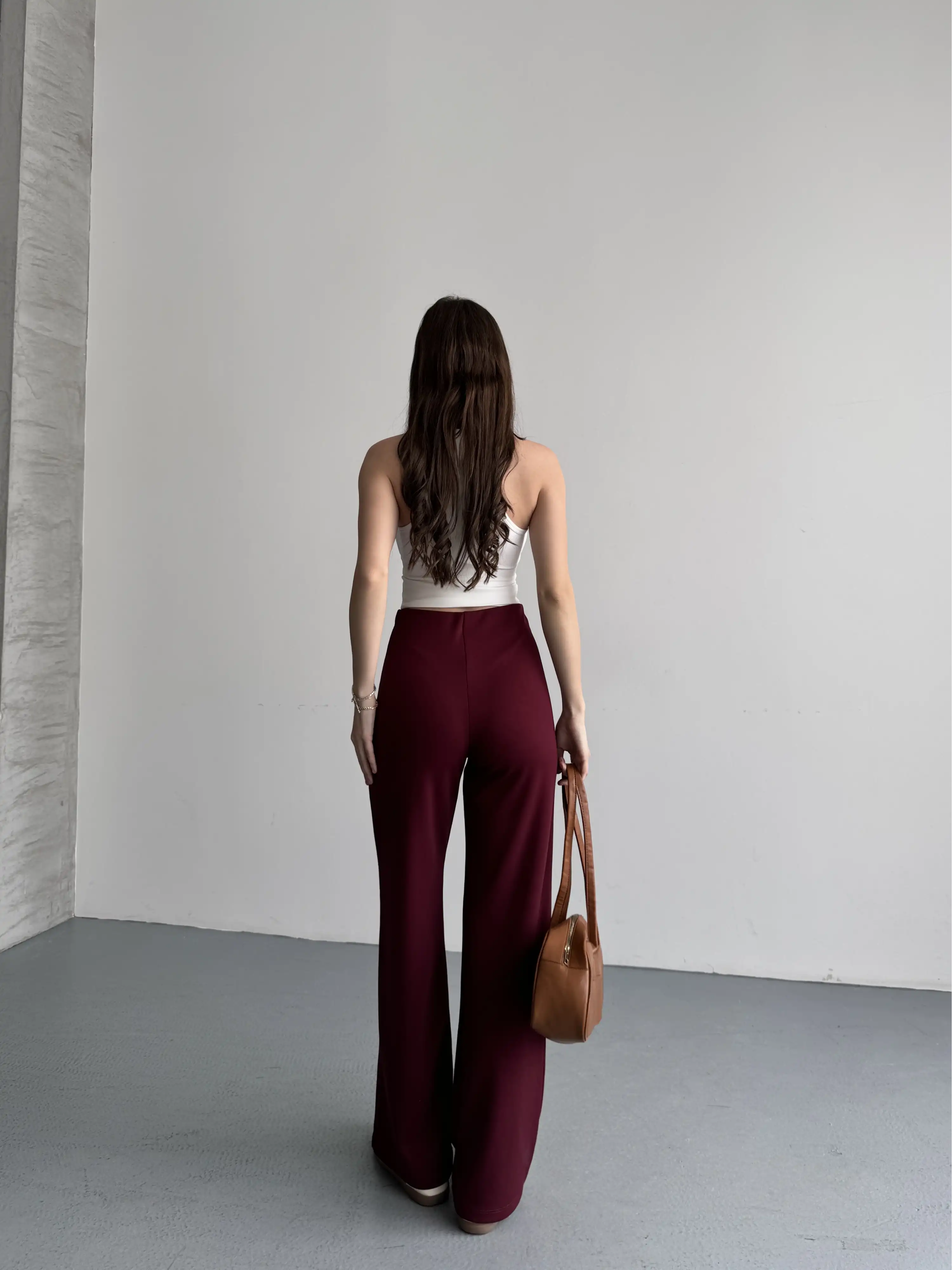 YÜKSEK BEL MODAL PANTOLON-BORDO