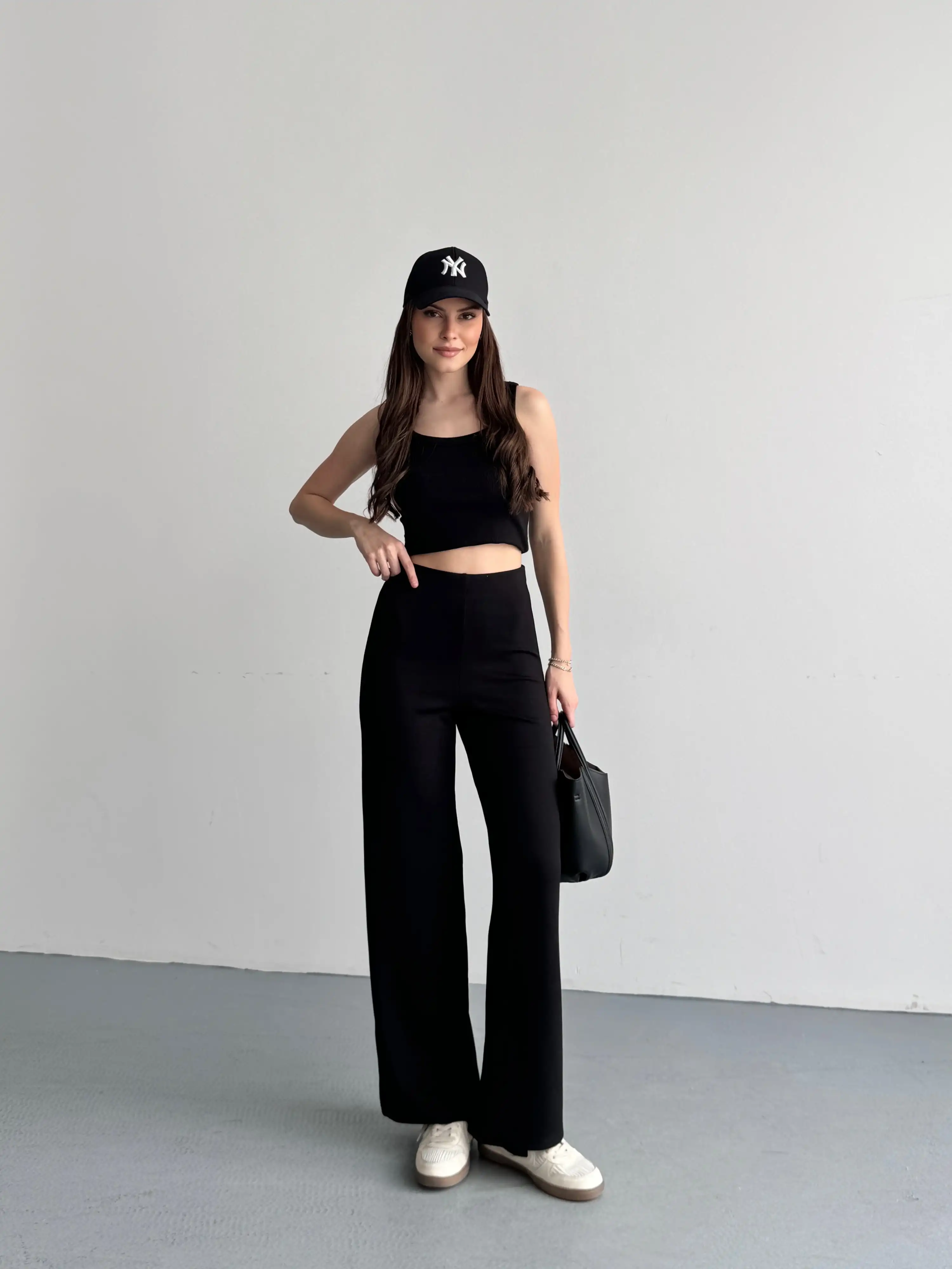 YÜKSEK BEL MODAL PANTOLON-SİYAH