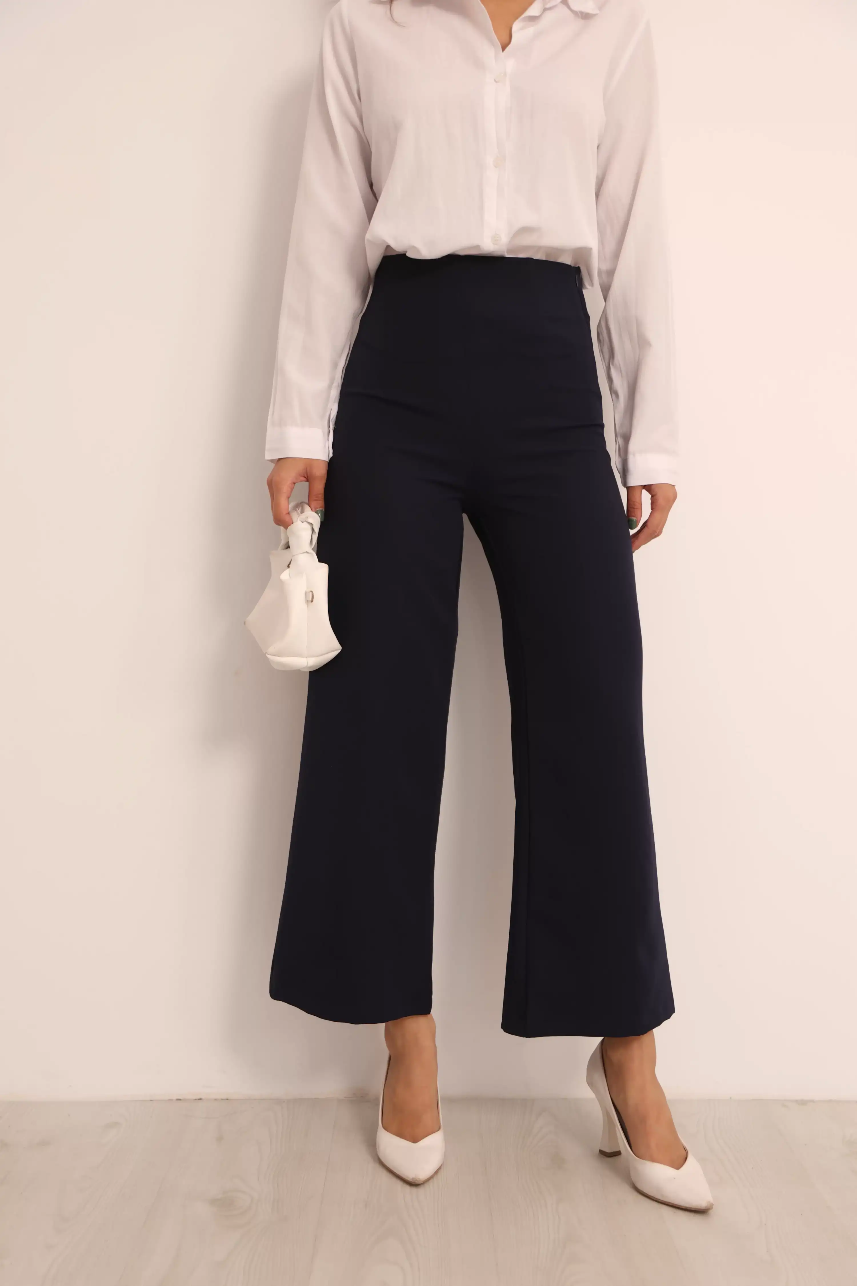 YÜKSEK BEL PALAZZO PANTOLON-LACİVERT