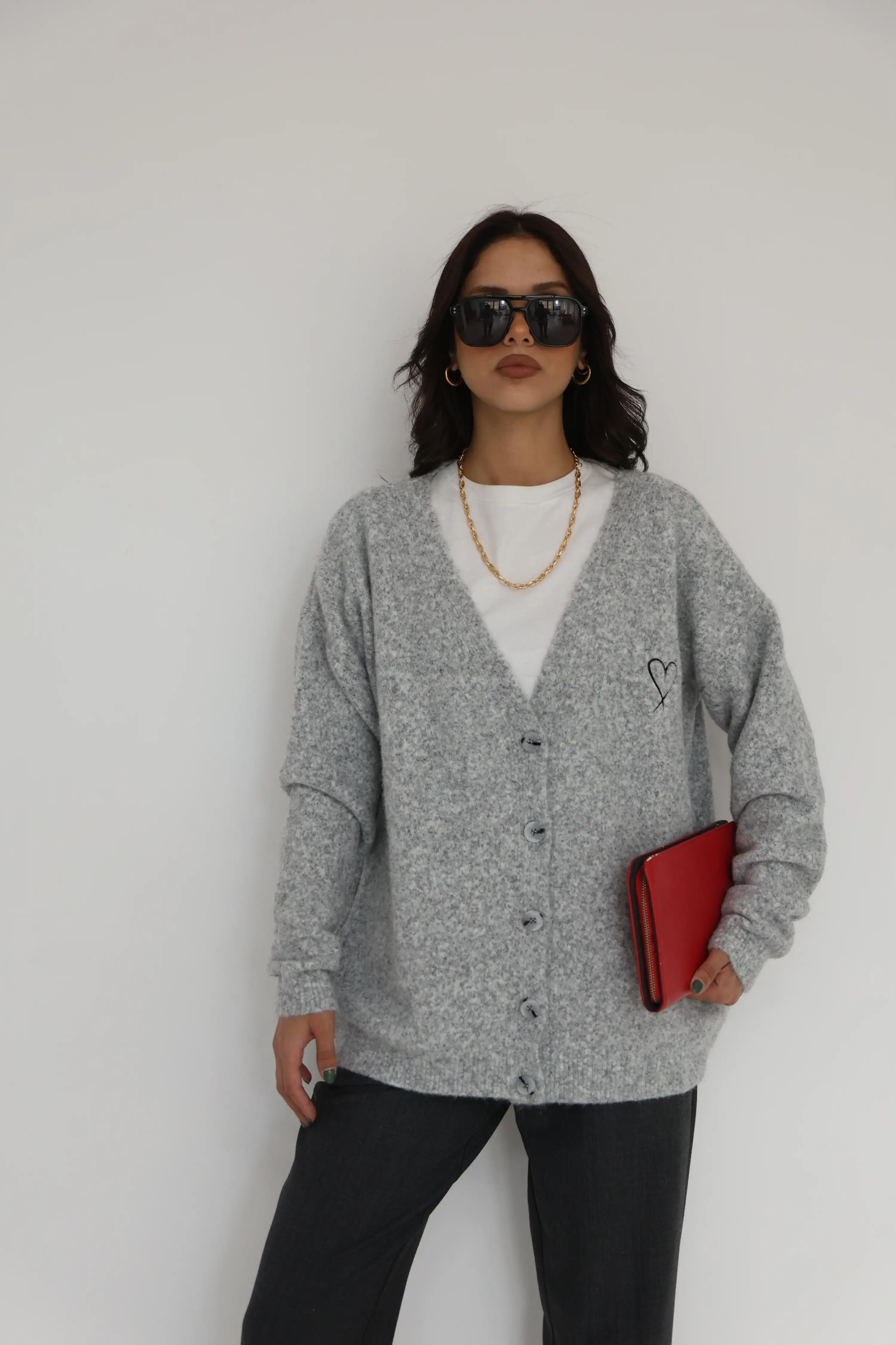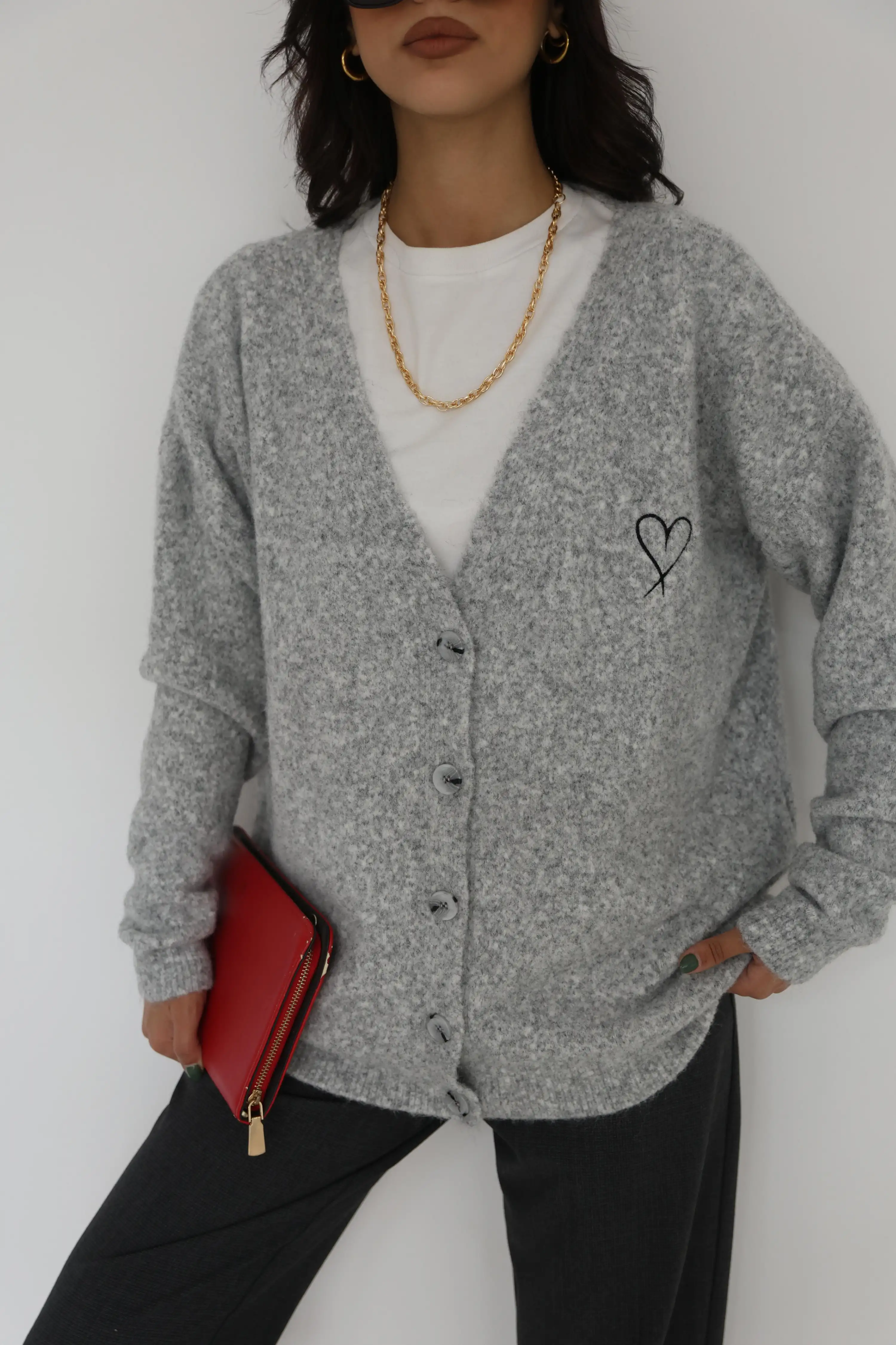 YUMOŞ KALP NAKIŞLI HIRKA-GRİ