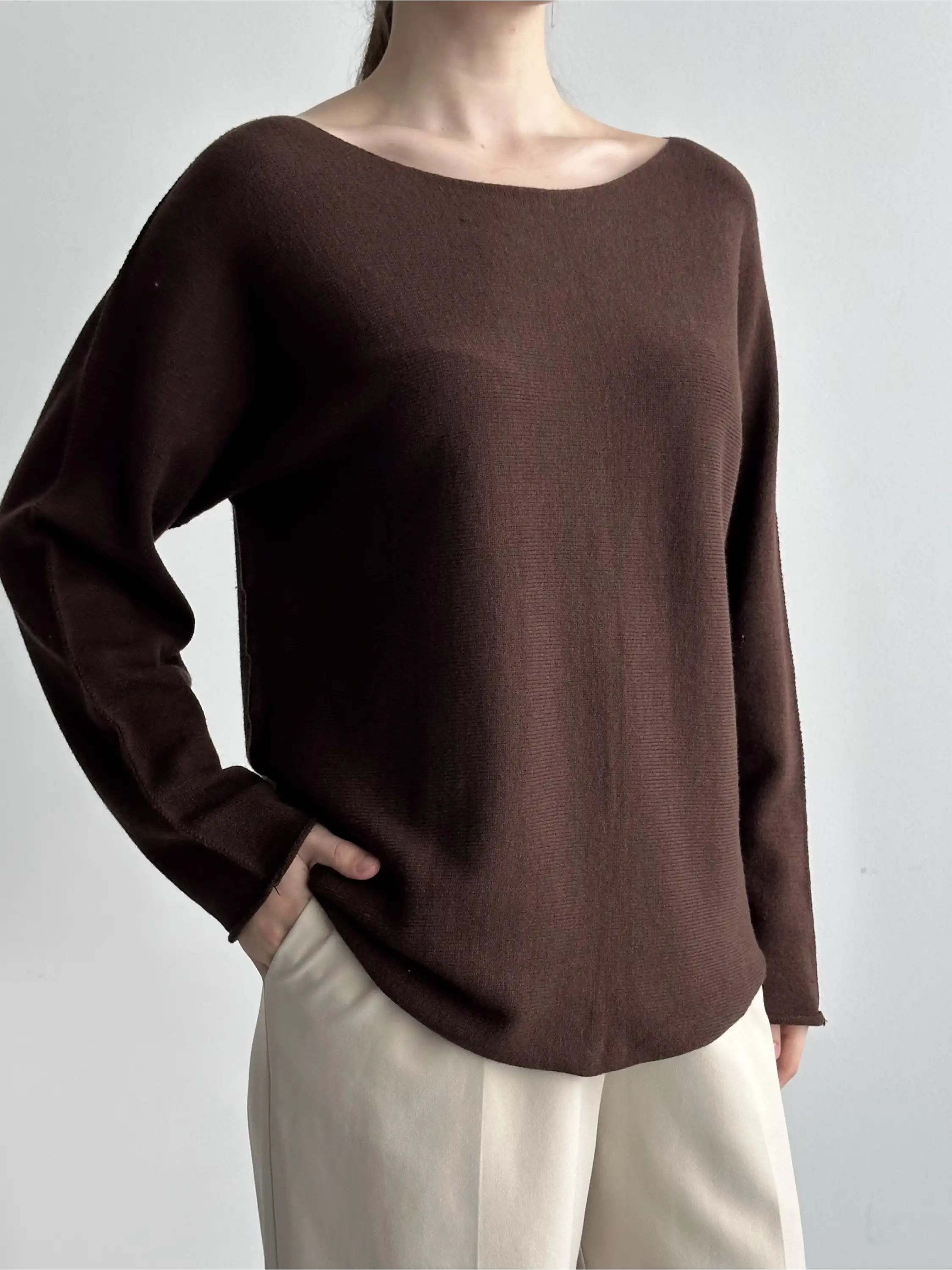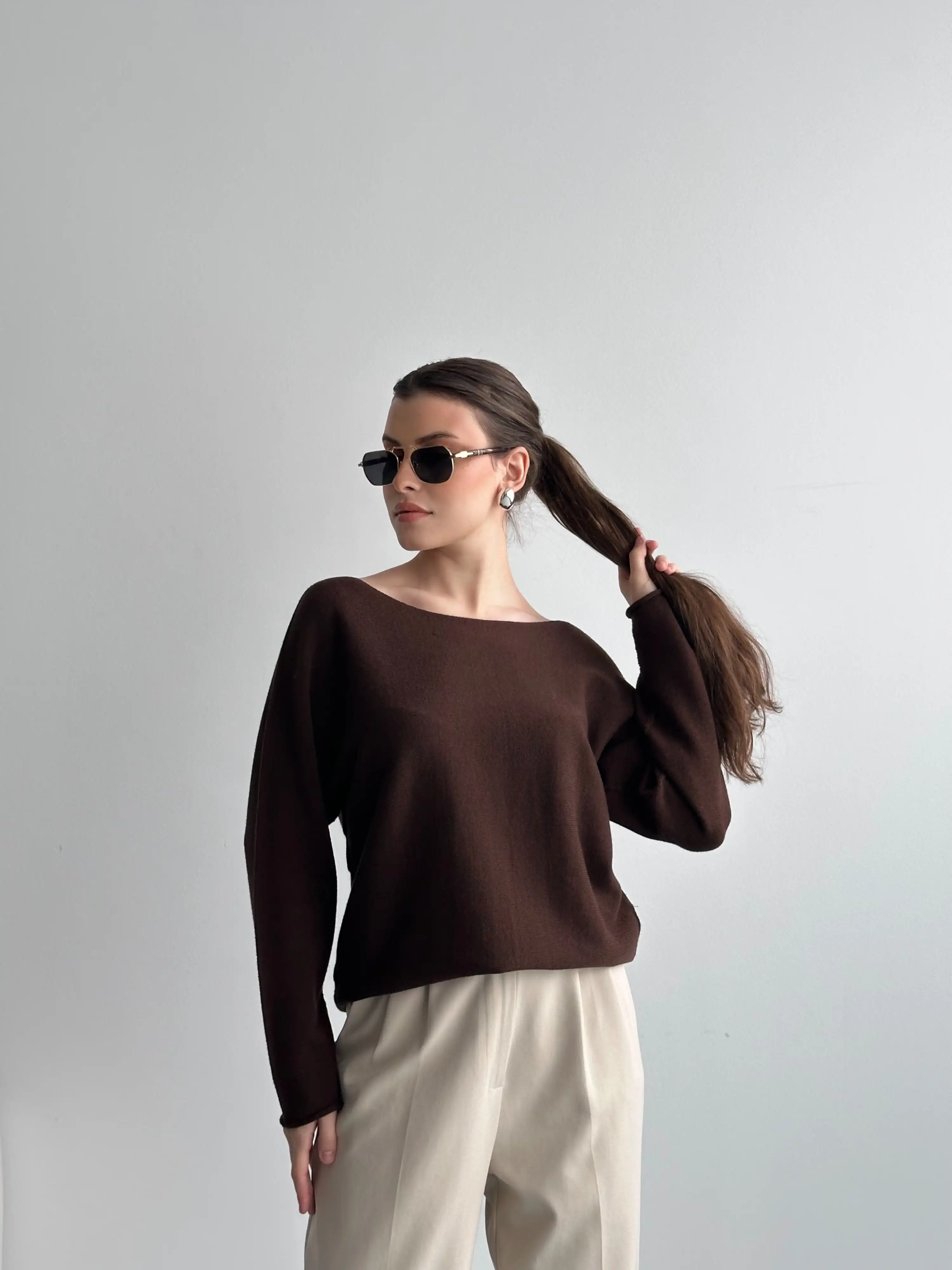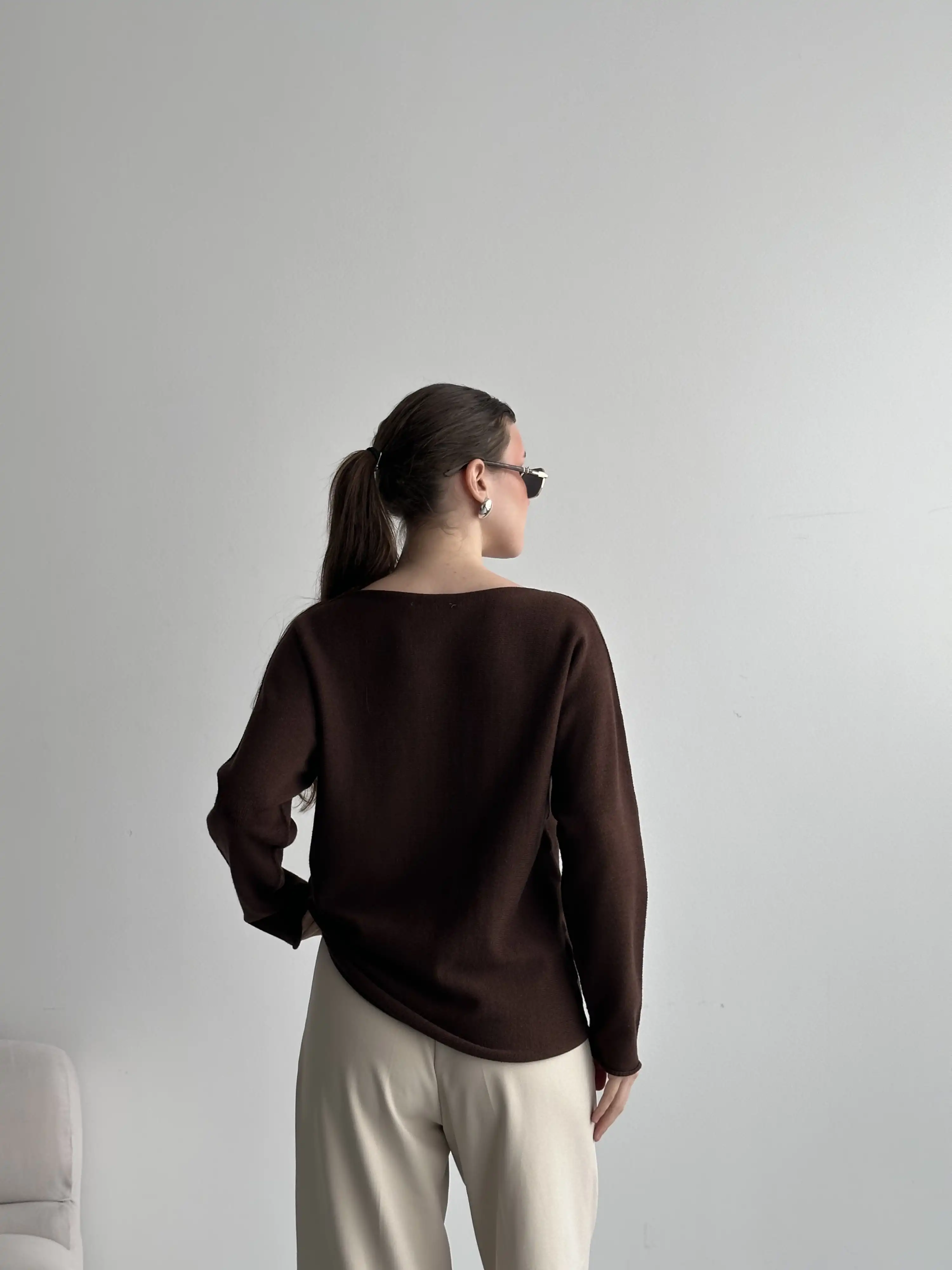 YUMUŞAK DOKULU KAYIK YAKA KAZAK-KAHVE