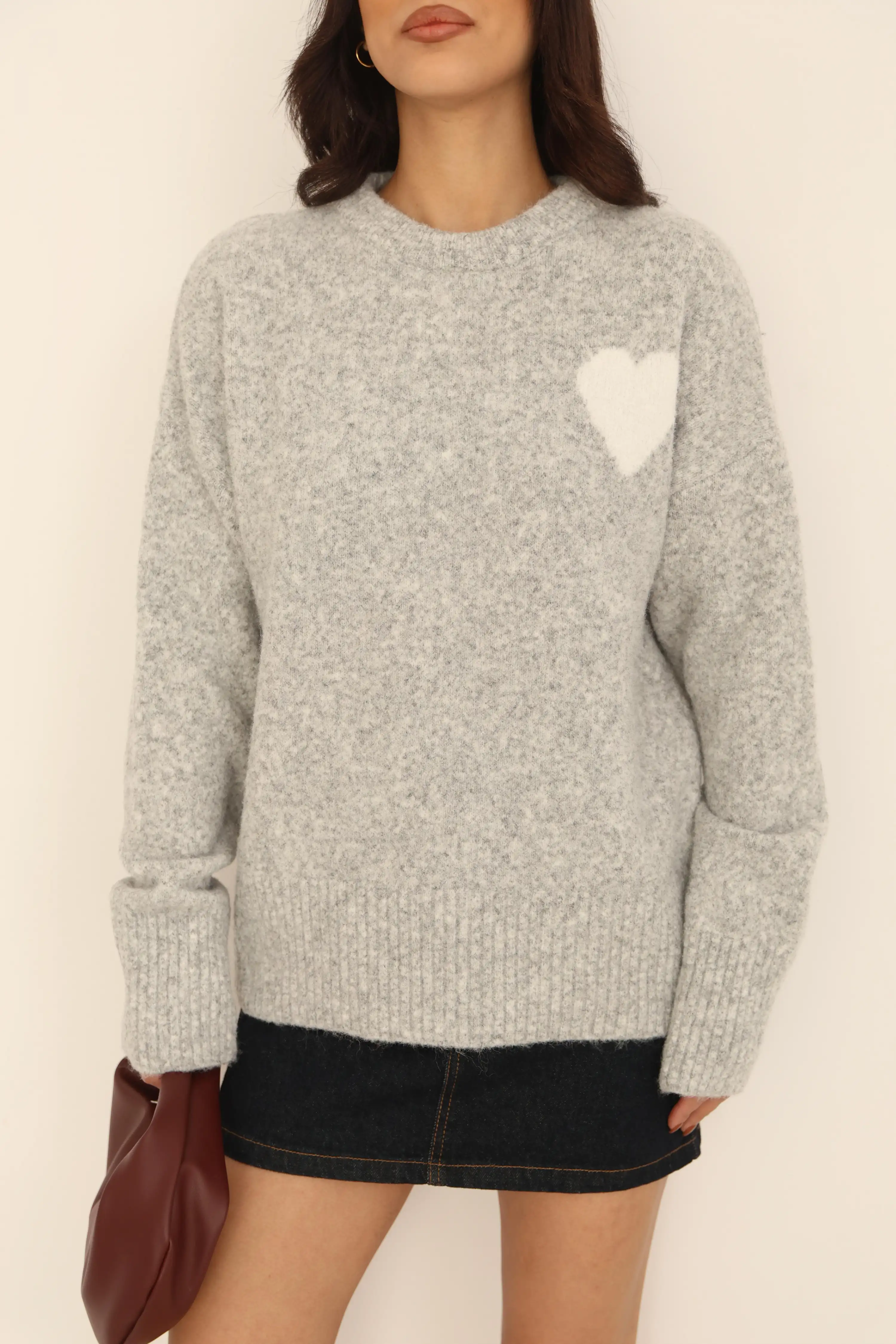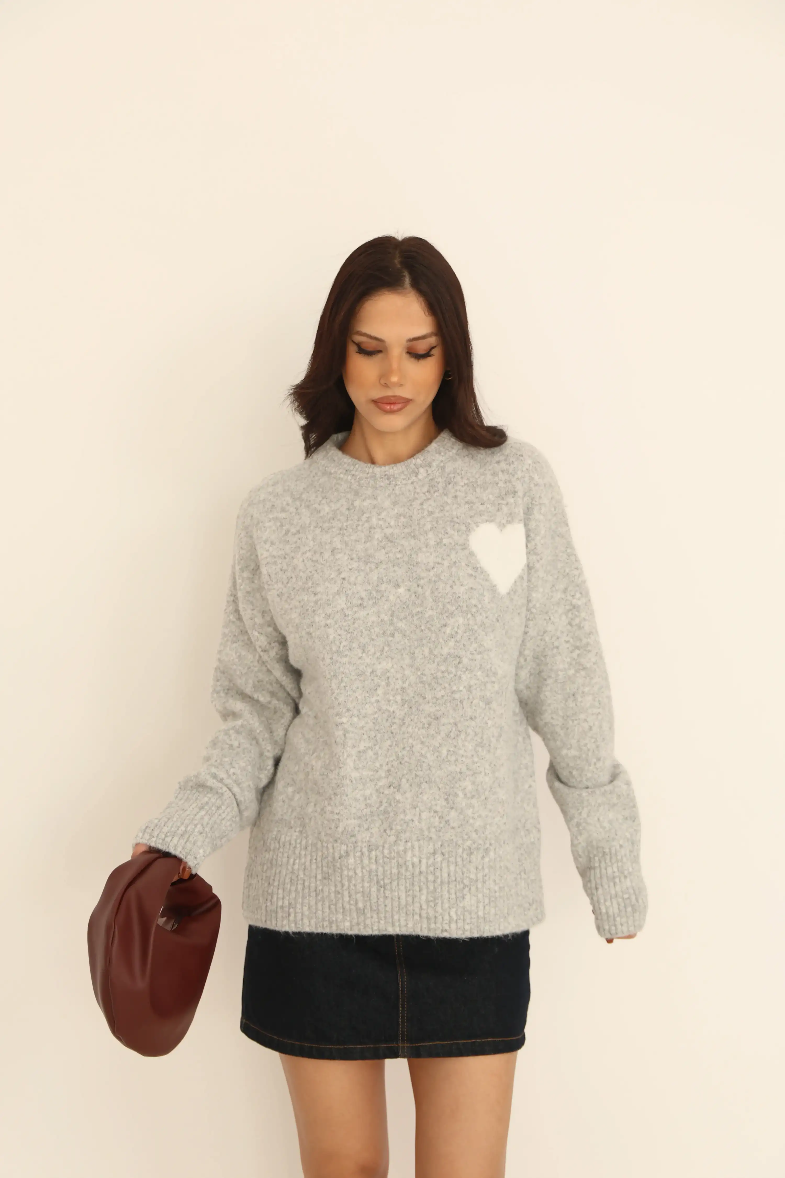YÜN KARIŞIMLI KALPLİ KAZAK-GRİ